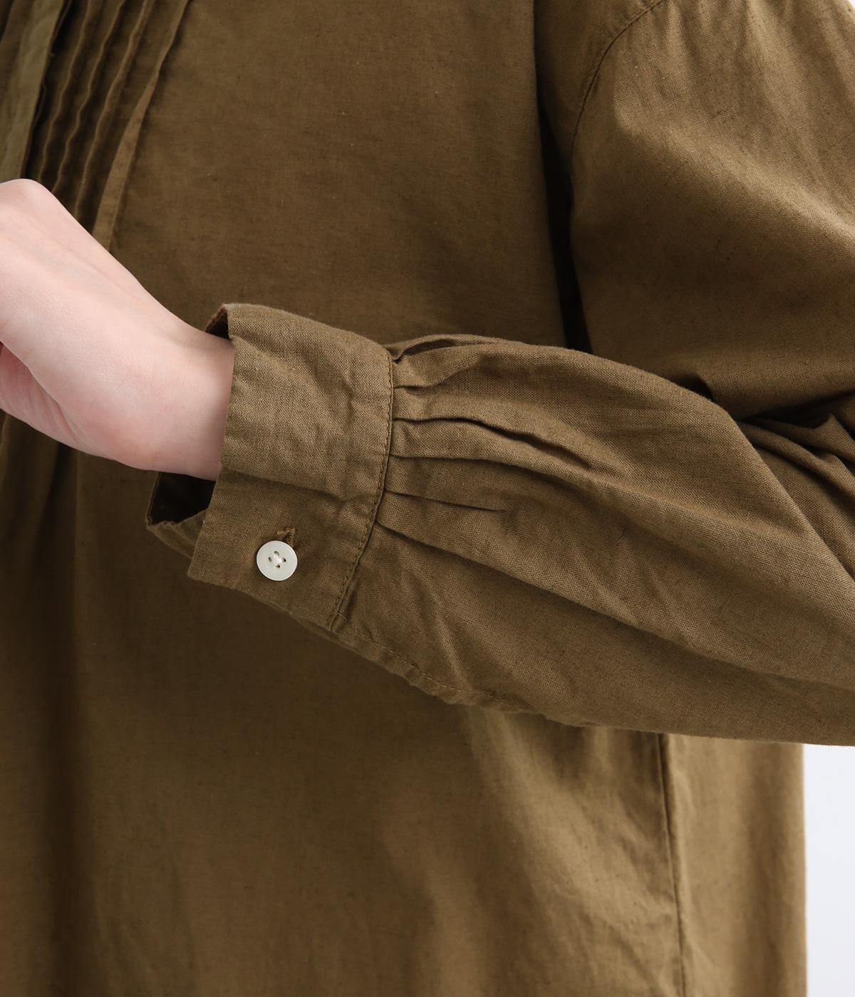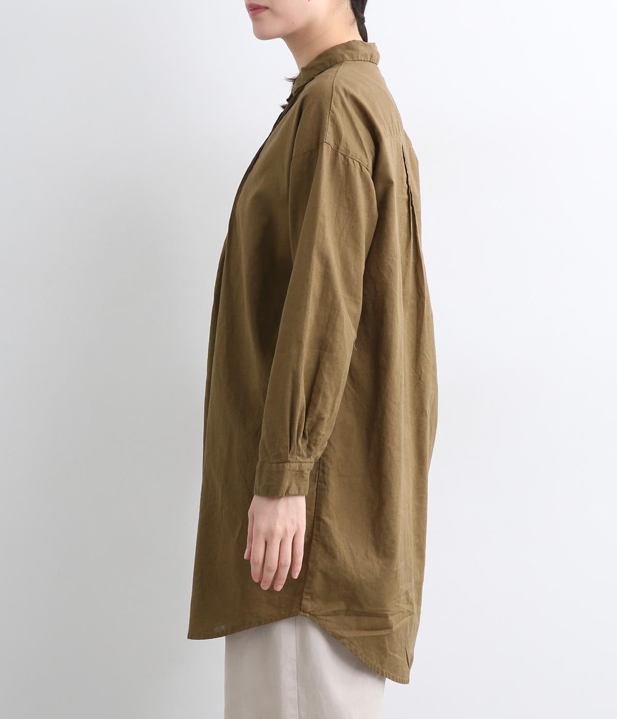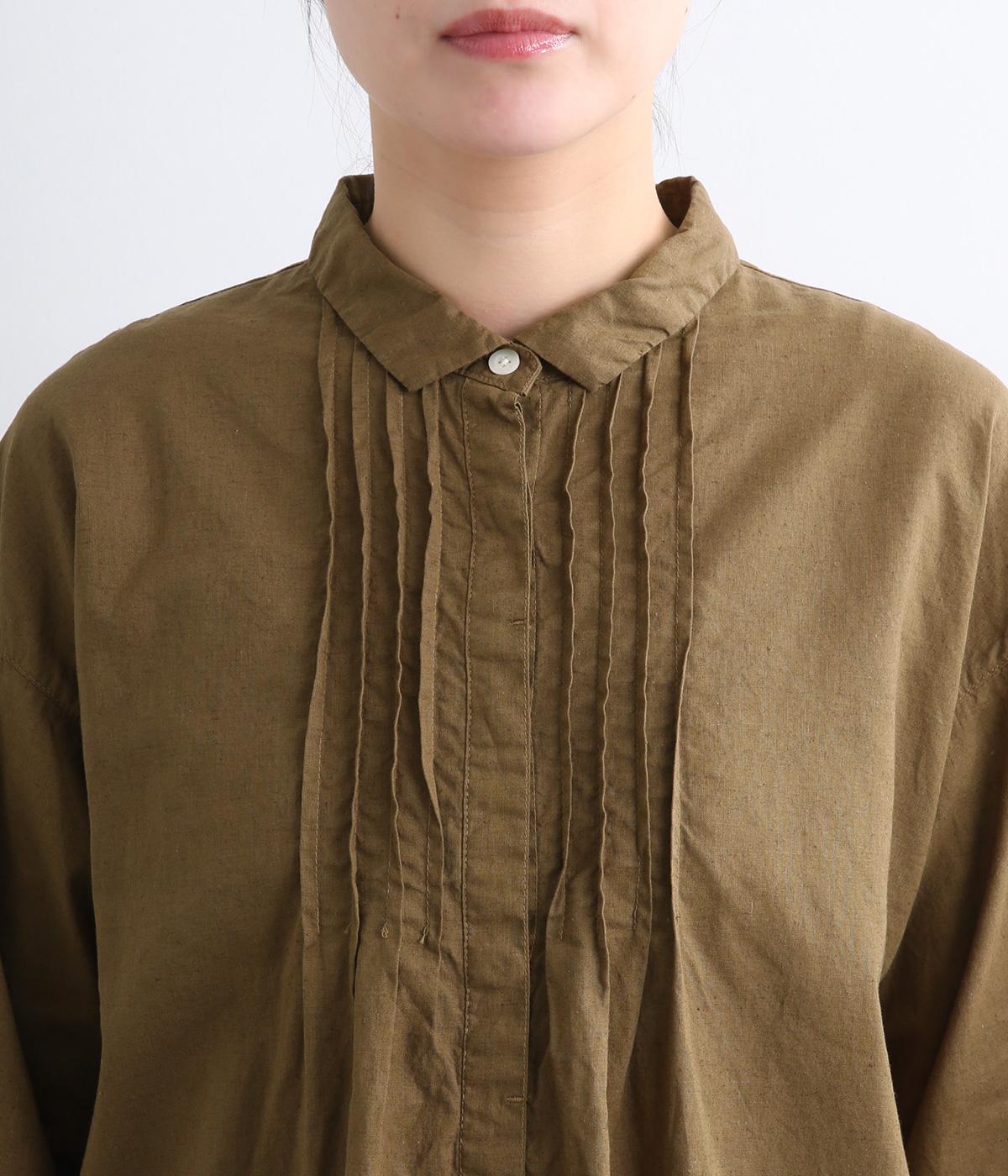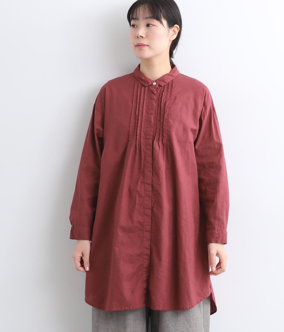 前後に入ったピンタックが目を惹くシャツチュニック。長め丈でほどよく広がるラインなので、腰まわりやヒップまわりをカバーしながらラフすぎない着こなしが叶います。小さめの襟で品よく見えるのもうれしい。