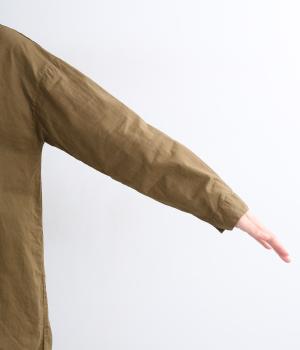 適度なハリとコシのあるコットンリネン生地を使用。軽い着心地で、自然な風合いを楽しめます。日本製品染めならではのソフトな表情も魅力。