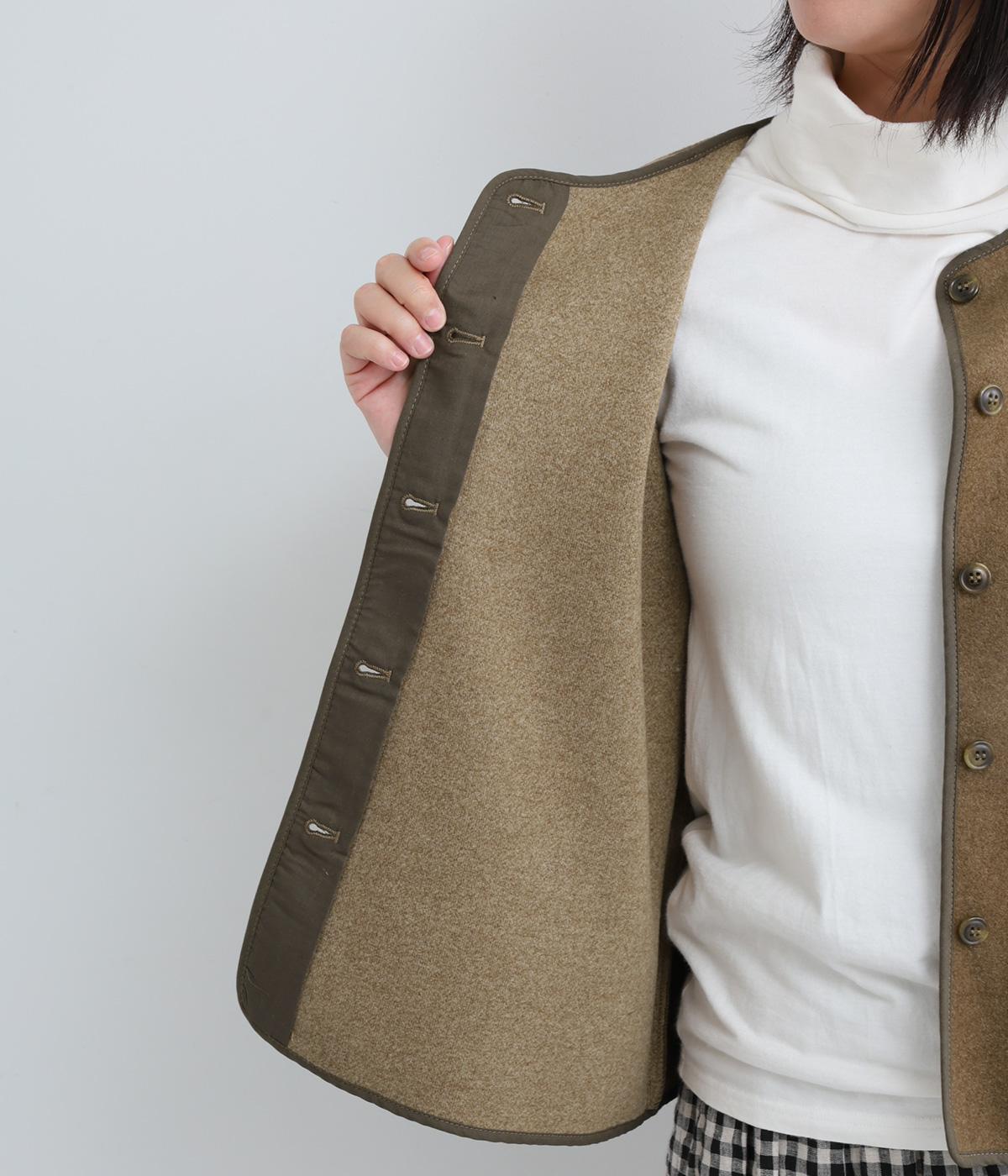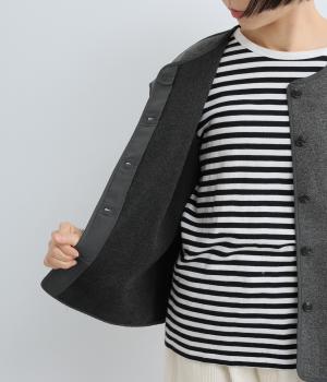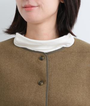 保温性に優れたもっちりとした質感が特徴のダブルフェイス生地を使用。ウールやレーヨンをMIXさせているので、あたたかみとなめらかな肌触りが着心地の良さを高めます。
