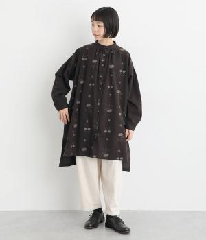 ベースは軽やかなコットン平織素材。ほどよく起毛させることで、ふんわりとやわらかな風合いに仕上げました。厚すぎずしなやかで、肌に触れたときのやさしいタッチも魅力です。