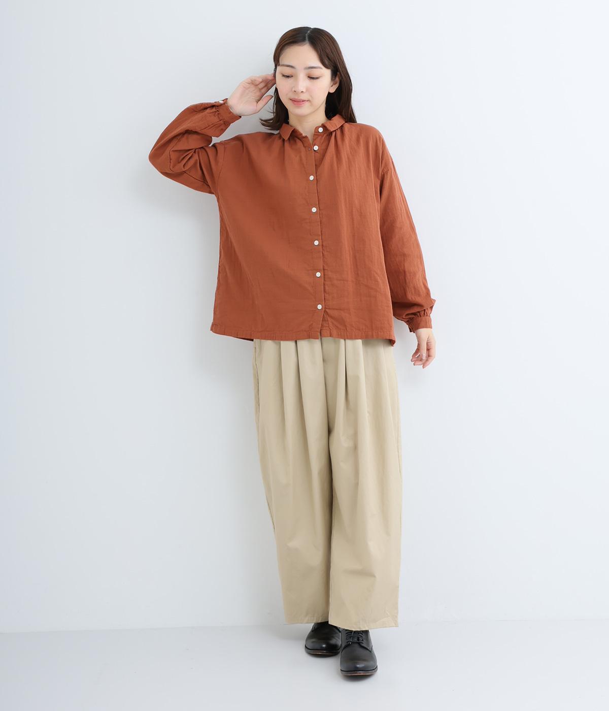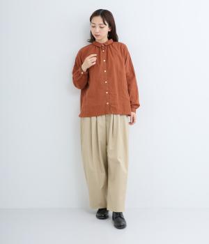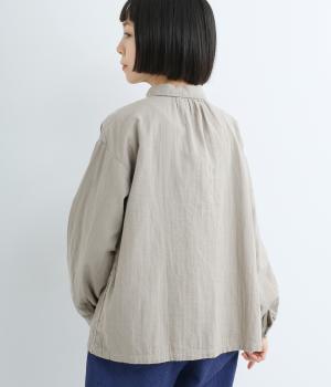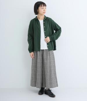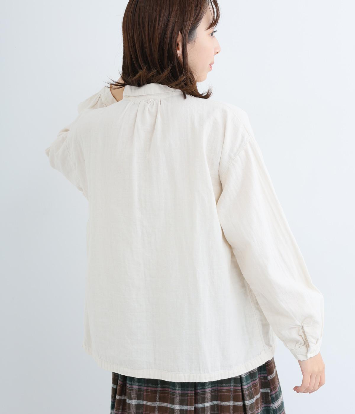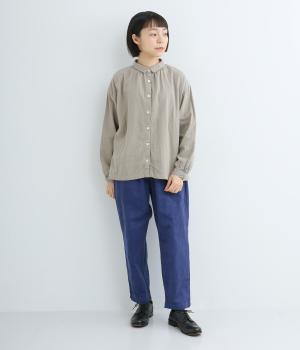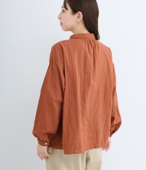 肌にやさしく、ずっと触れていたくなるようなソフトな手ざわりが魅力的なコットンダブルガーゼを使用しています。軽量で快適な着心地。ほどよいシワ感が、ナチュラルな着こなしの要。