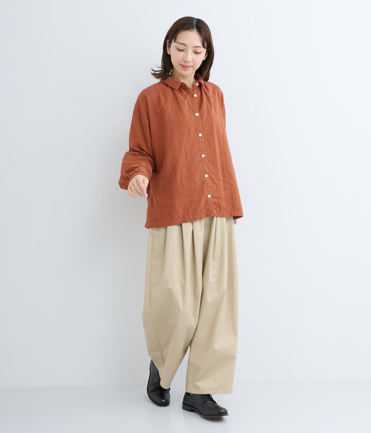 シンプルながらも、ナチュラルな風合いの生地感がこなれた印象を与えてくれるブラウス。薄手の生地なので、レイヤリングも自由自在。丸みを帯びたシルエットが、レディライクな着こなしへとナビゲートしてくれます。