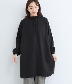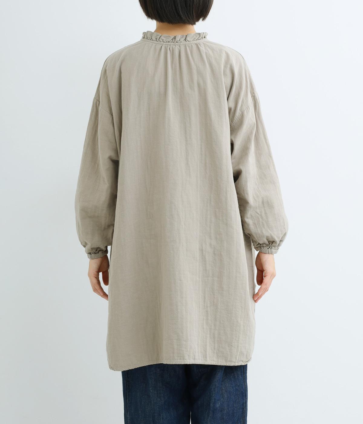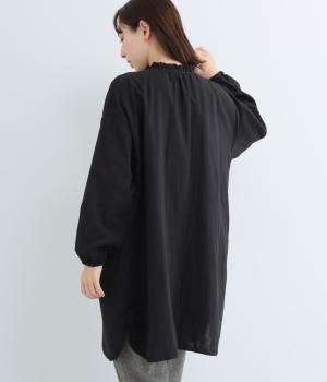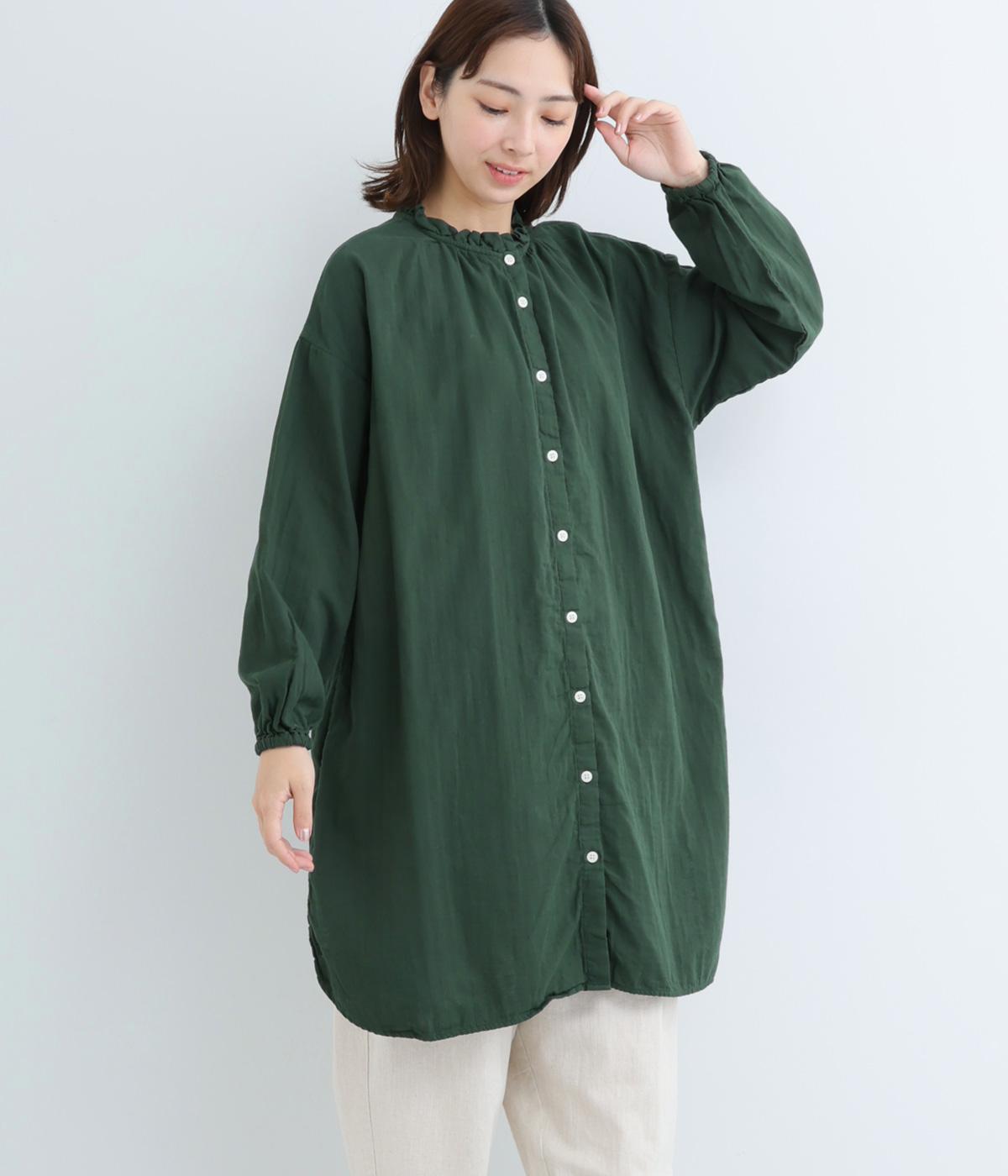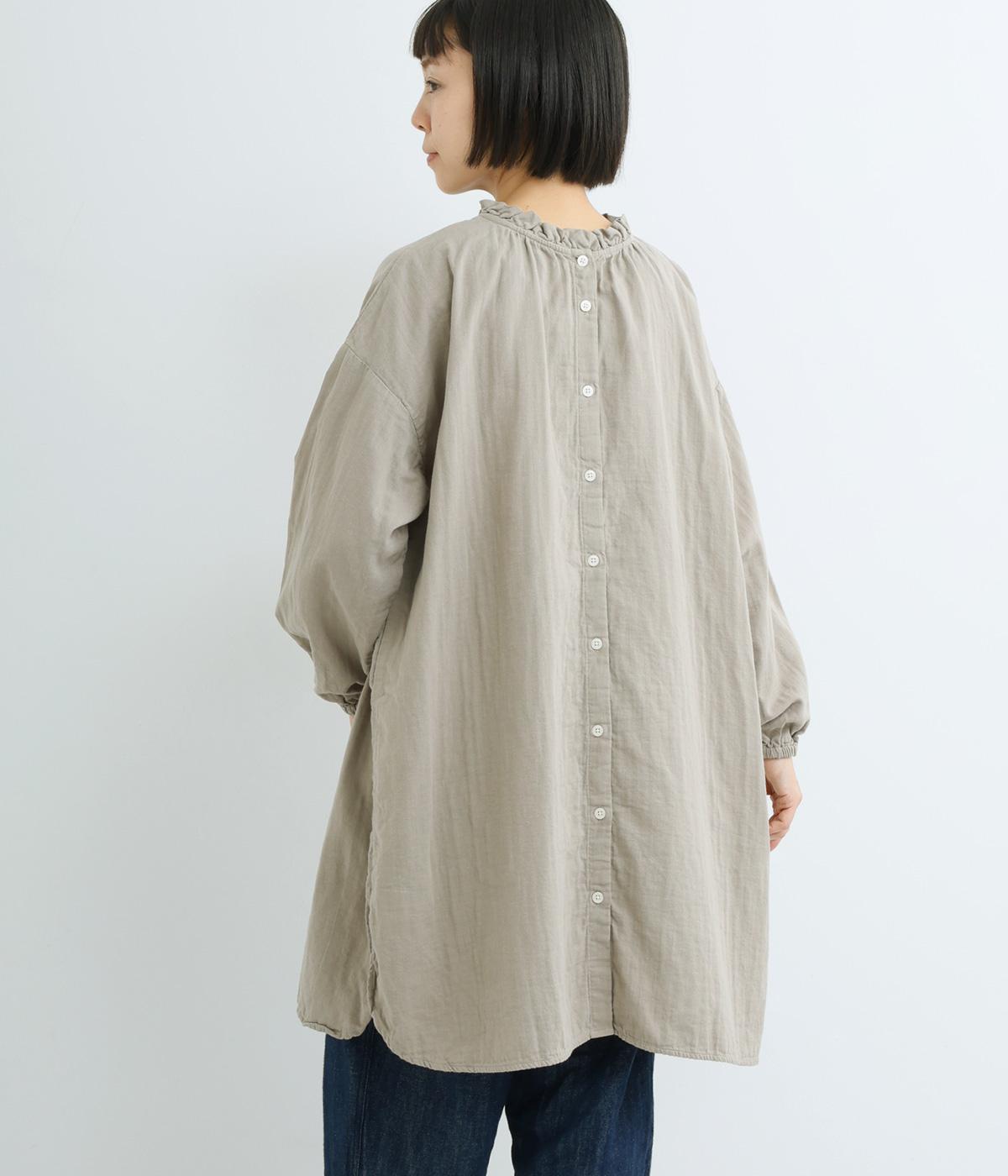 前後どちらを前にしても着用できる2way仕様のチュニックシャツ。エレガントで上品な印象のフリルネックがポイントです。サイドスリットで抜け感を出しました。気になるヒップや太ももまわりを覆ってくれる丈感なので、きれいなシルエットが実現します。