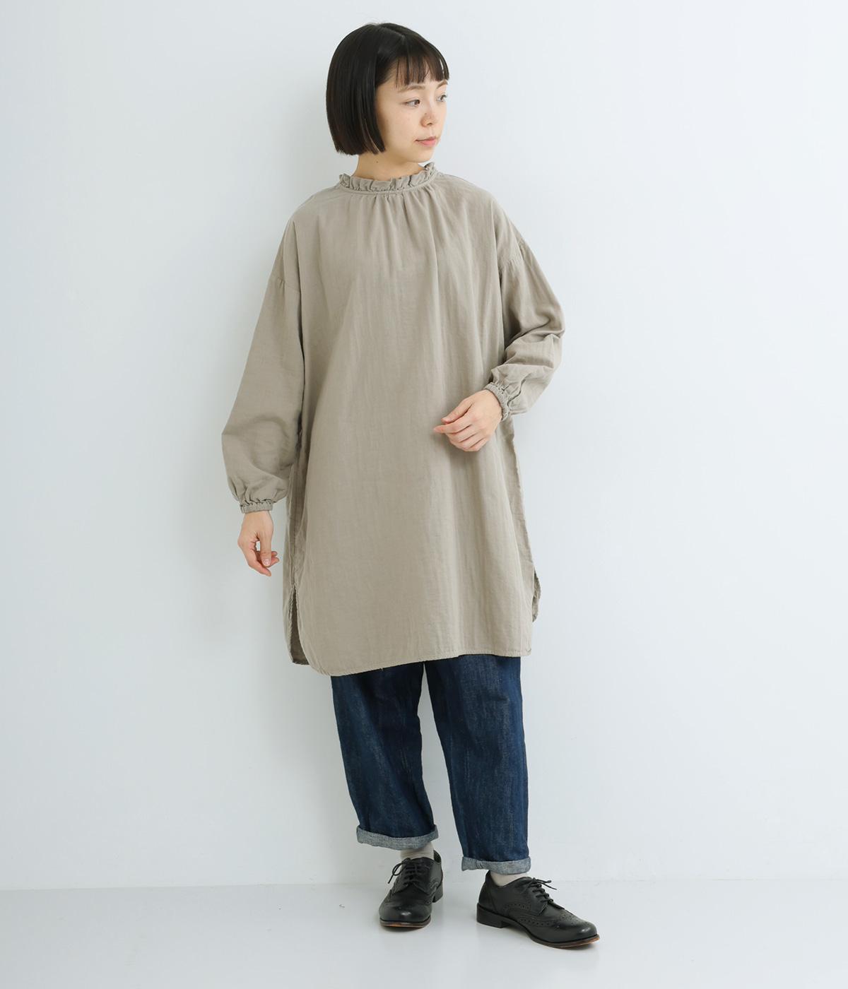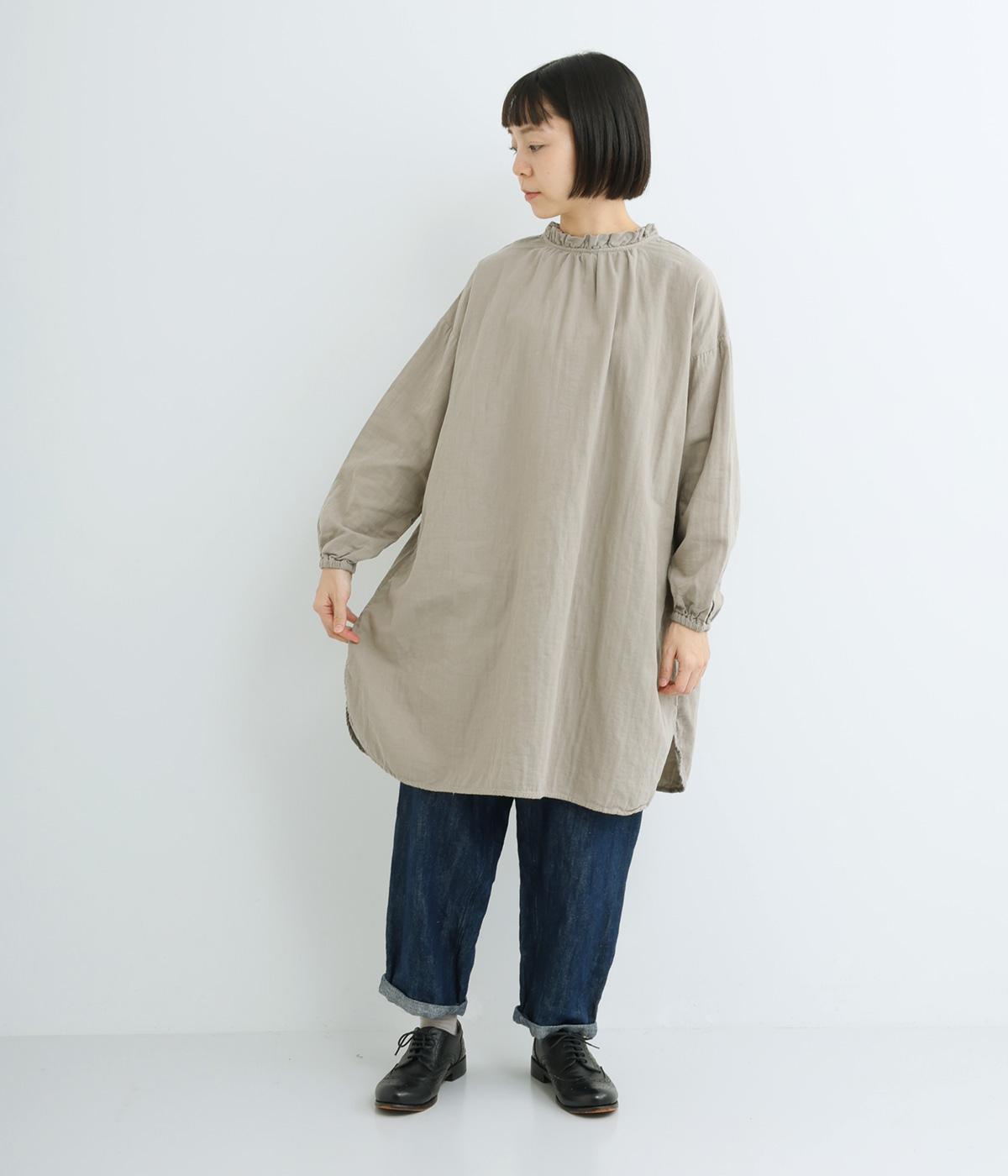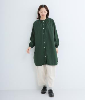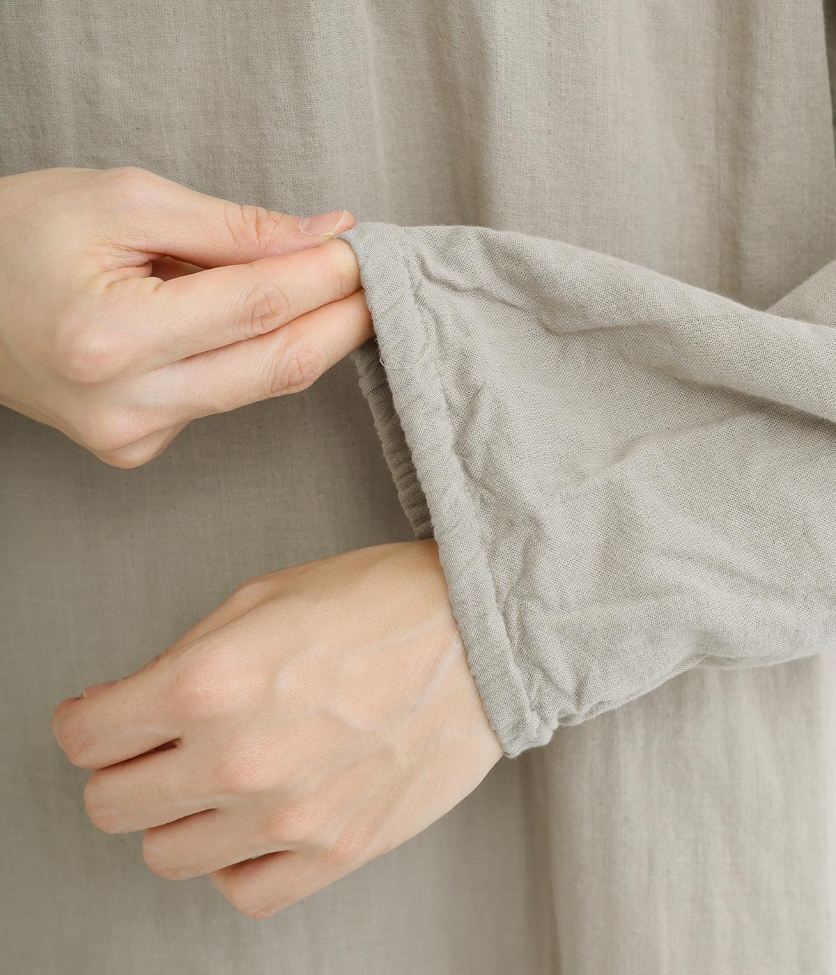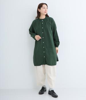 やわらかくて肌ざわりがよく、吸水性と通気性に優れた天然素材のコットンで仕上げました。やさしい風合いが魅力的で、適度なシワ感がこなれた印象。軽くて着用しやすいのも◎。