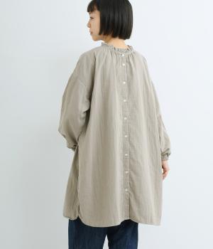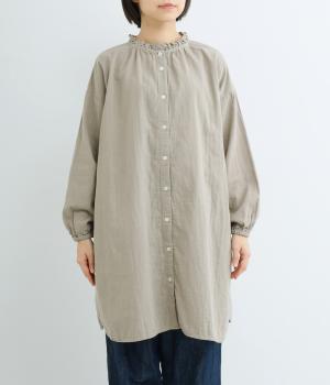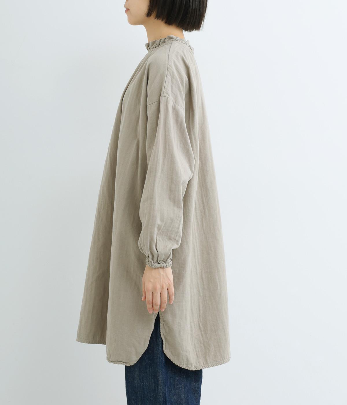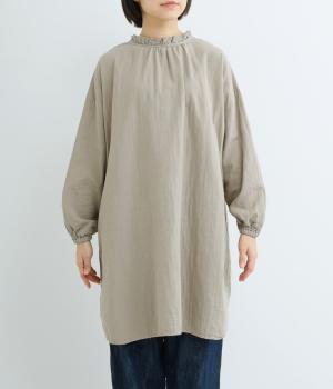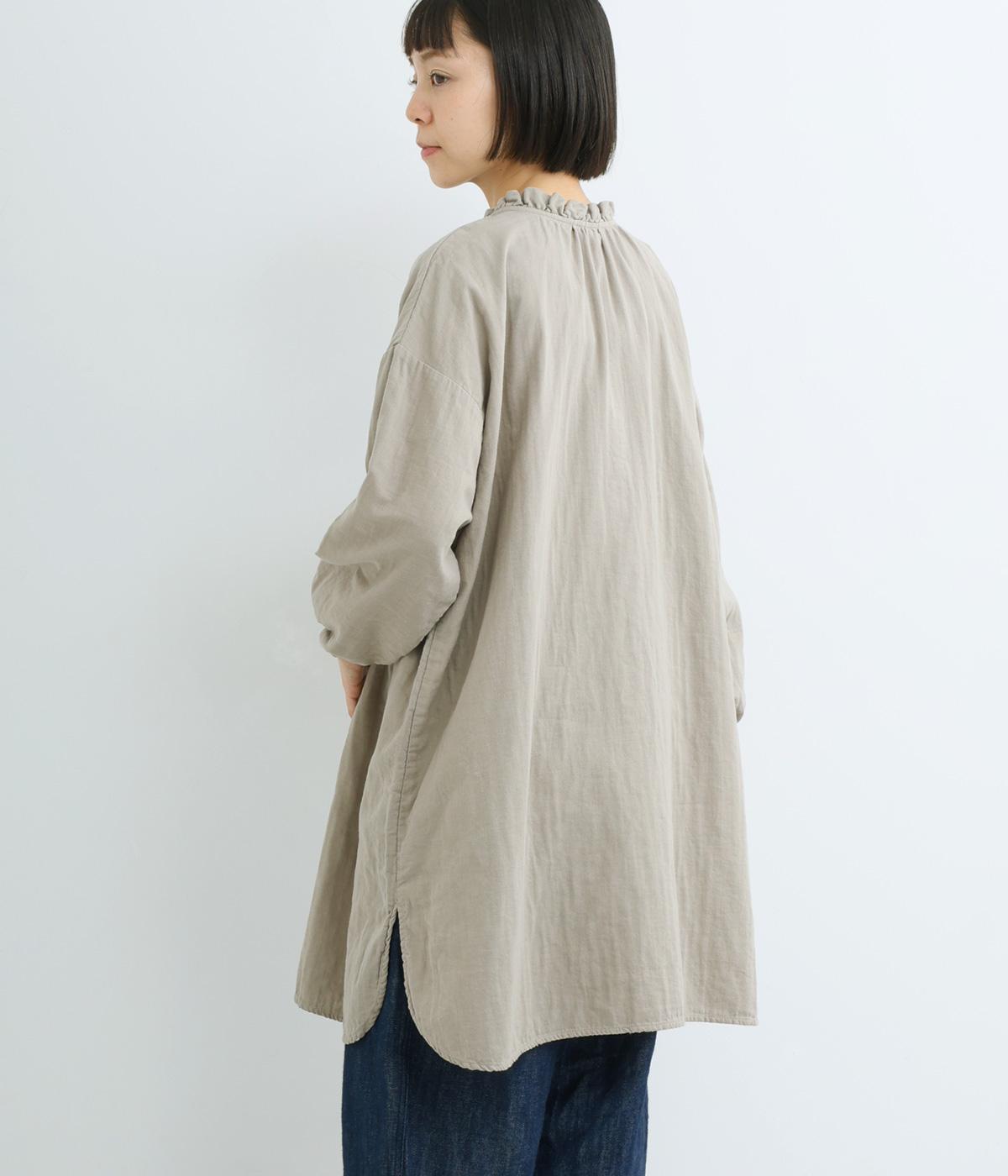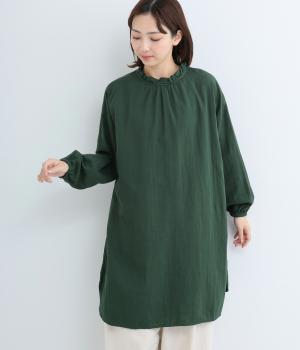 やわらかくて肌ざわりがよく、吸水性と通気性に優れた天然素材のコットンで仕上げました。やさしい風合いが魅力的で、適度なシワ感がこなれた印象。軽くて着用しやすいのも◎。