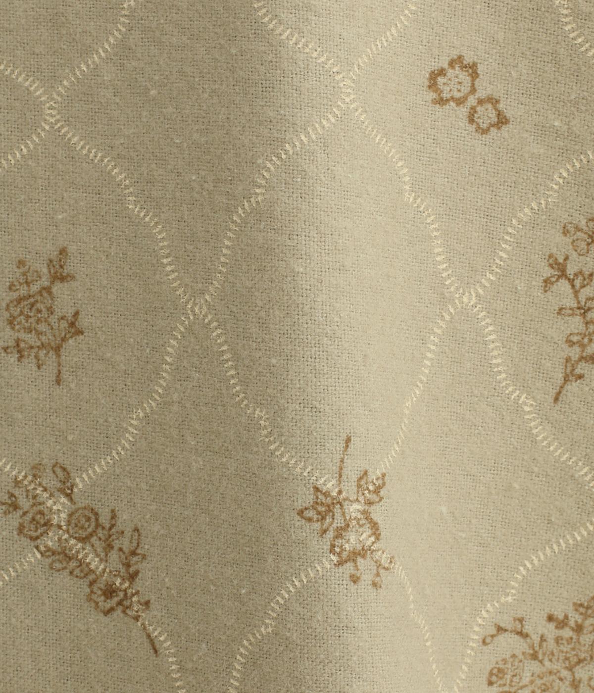 しっかりとした生地感ながら肌になじむコットン素材です。素朴で優しい風合いにシックな総柄プリントをほどこしました。ハリのある生地感がきちんと見えします。