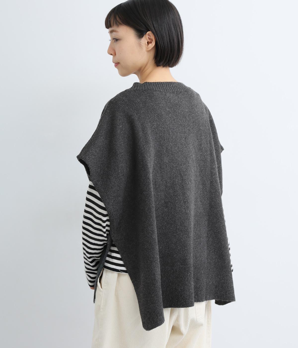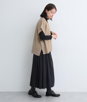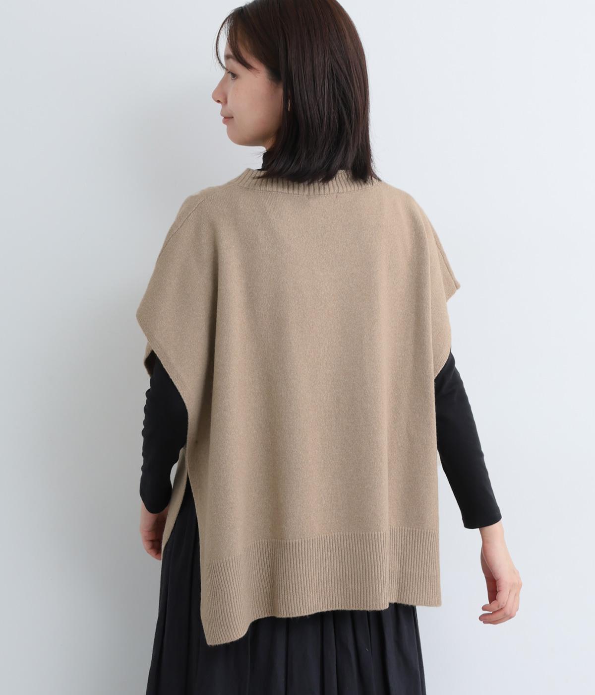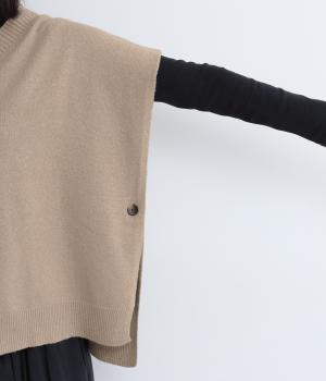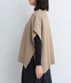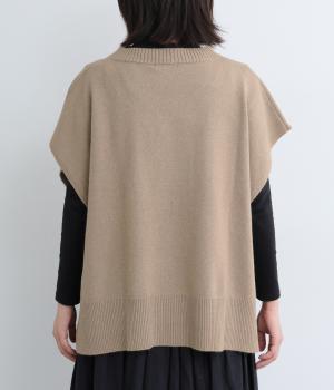 ゆったりとしたポンチョタイプのニットベスト。あきが広いのでボリュームトップスやワンピースとも合わせやすく、手持ちのアイテムもいつもとちがったスタイリングに魅せてくれます。裾の自然なドレープで動きも◎。