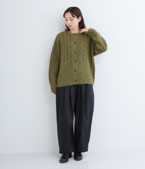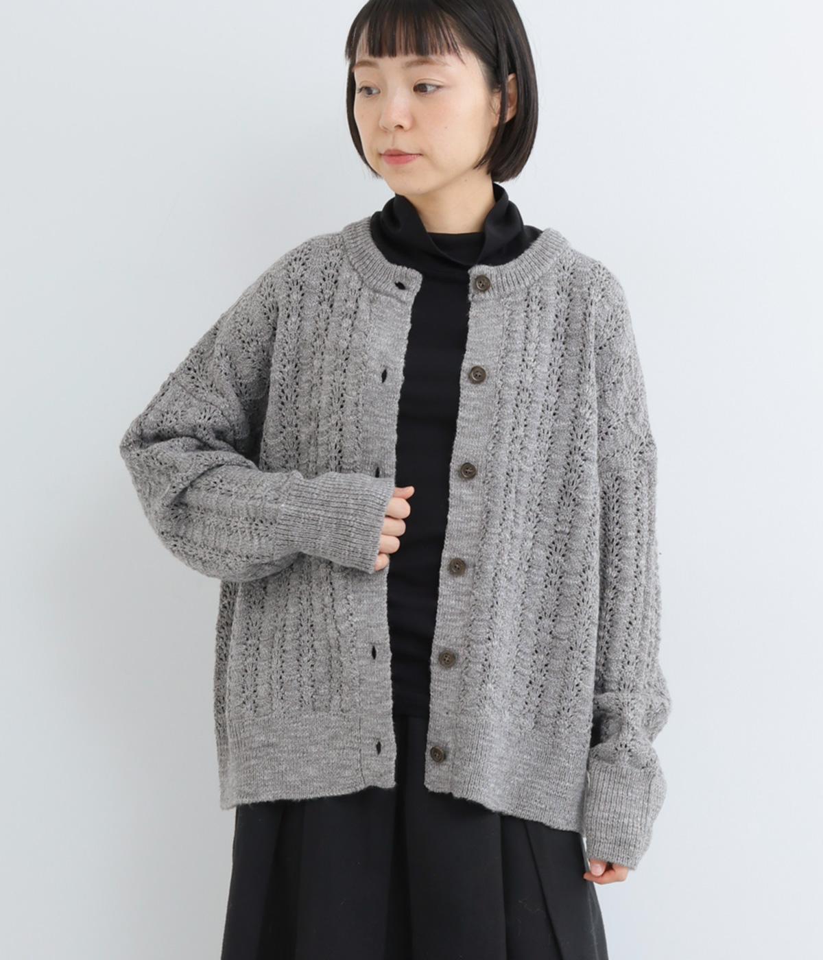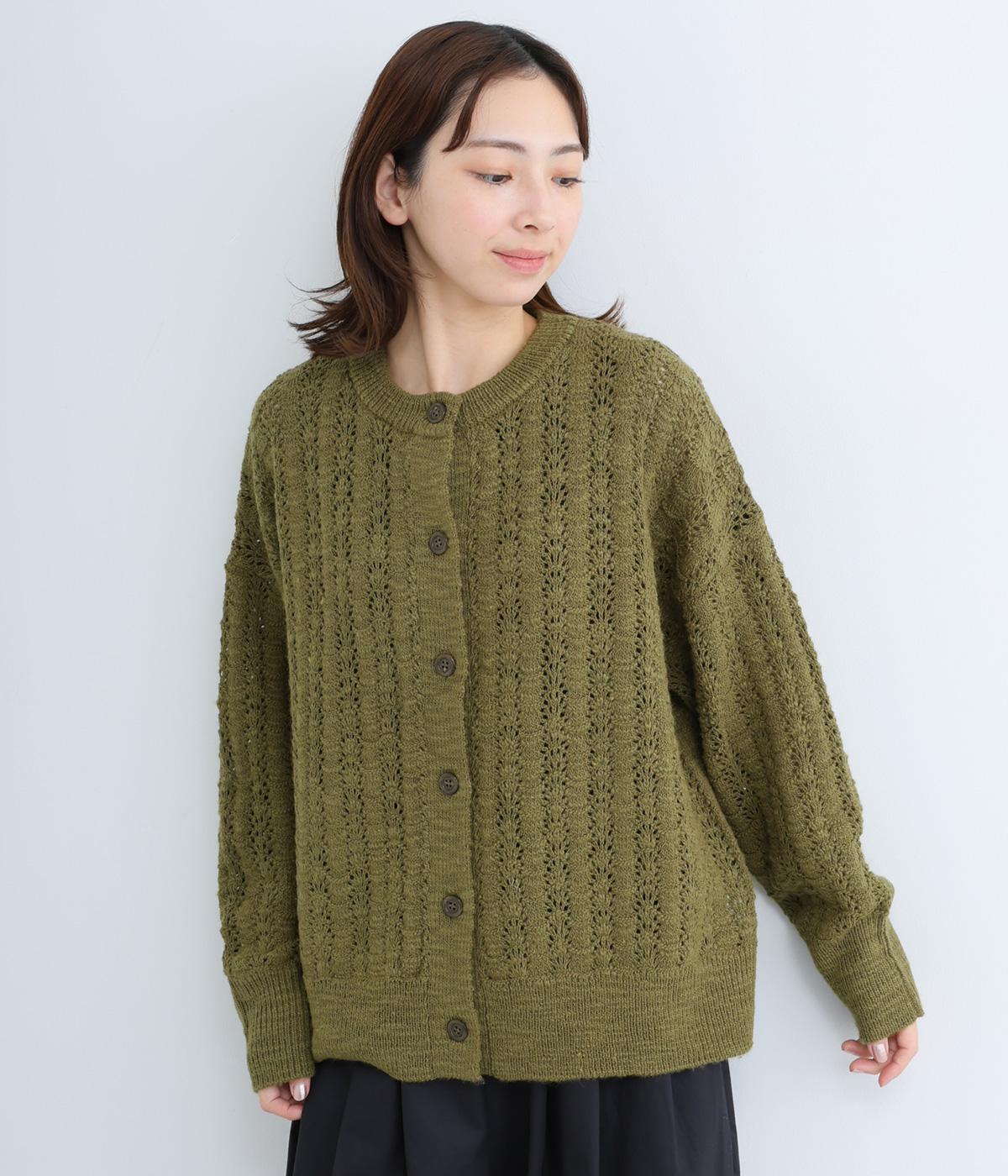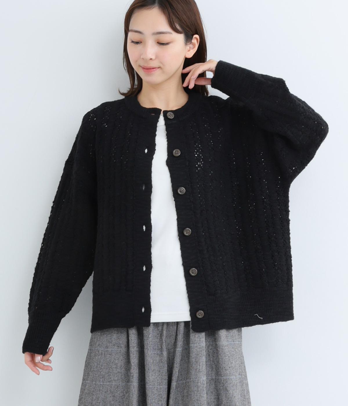 生地表面の凹凸感のある編み模様が、ハイセンスな印象のニットカーディガン。見た目にもあたたかみがあり、ナチュラルな着こなしにぴったりのアイテムです。パンツやスカートと合わせて幅広いコーディネートが叶うので、もっておきたい一枚。