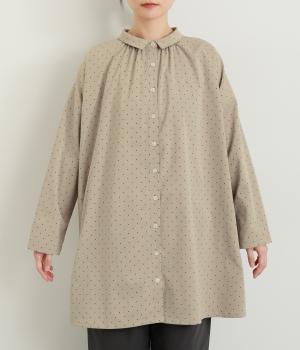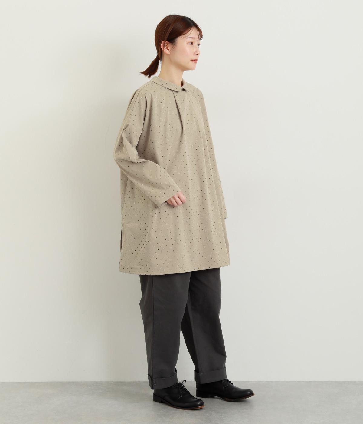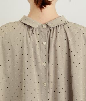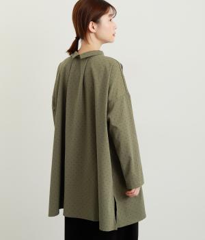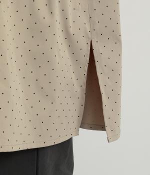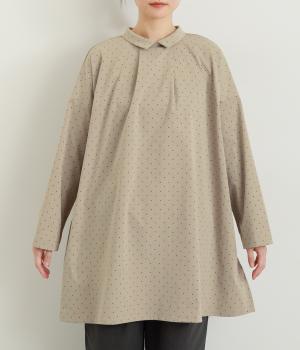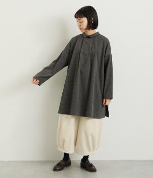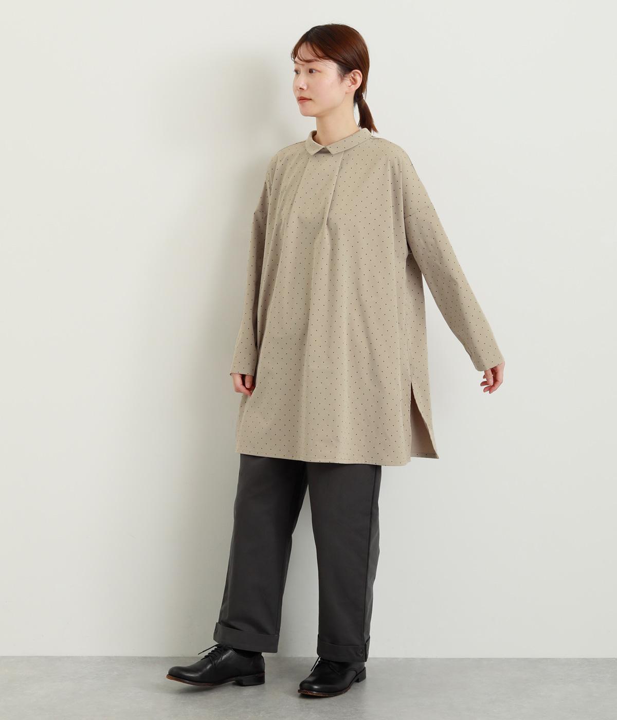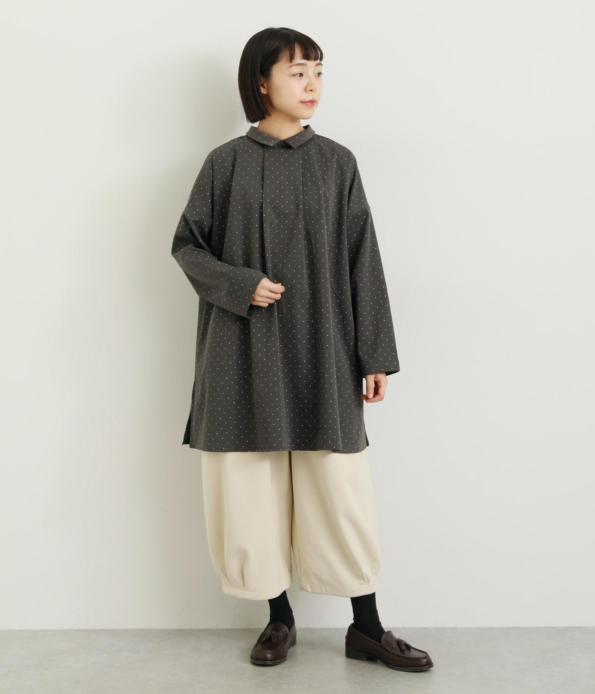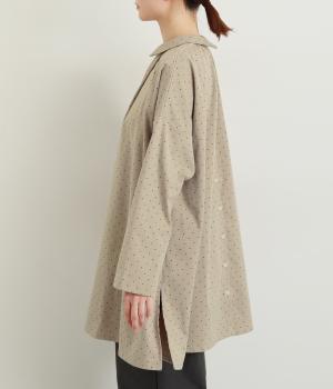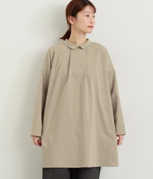 小さなドット柄がかわいらしいチュニックブラウスです。前後2way仕様で、ボタン面は可憐な雰囲気に、タック面はすっきりと洗練された印象に。ふんわりとしたラインと小さめの襟、落ち感のあるシルエットが上品さを引き立てます。サイドスリットが抜け感を生み、コーディネートのバランスが取りやすい仕上がりです。