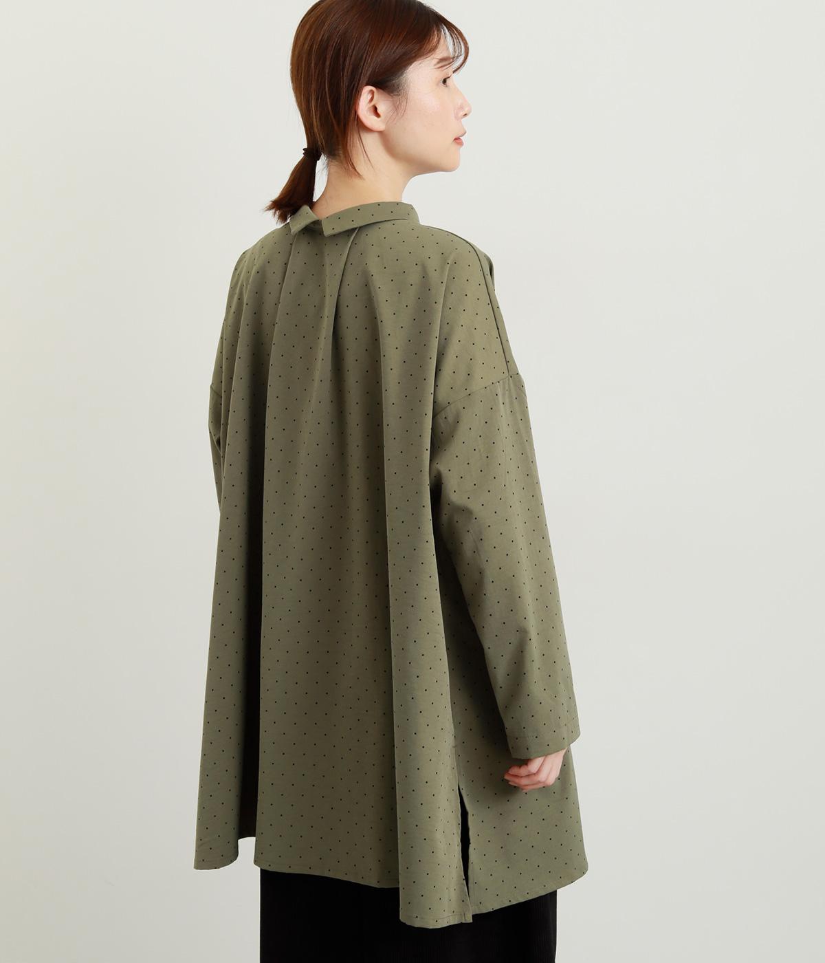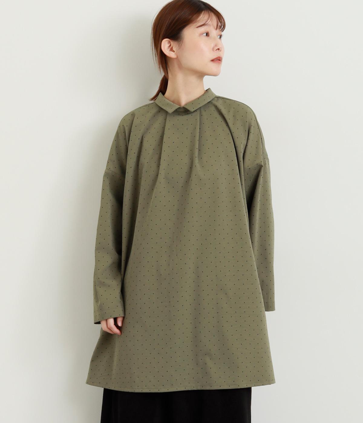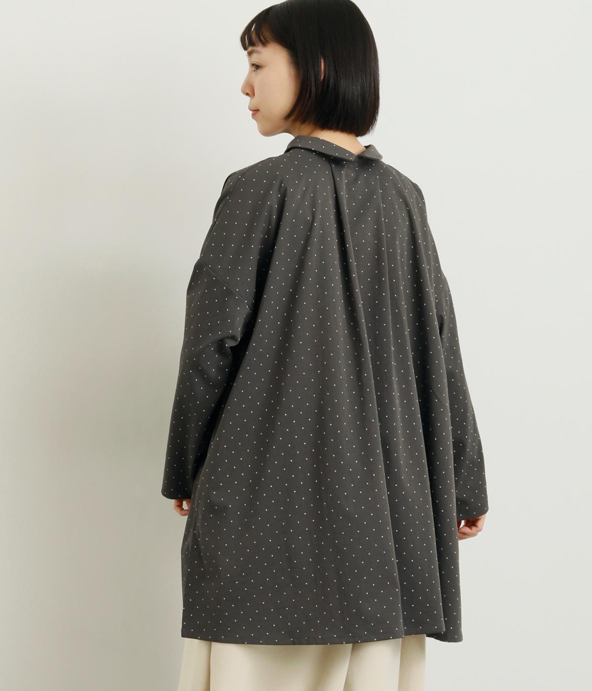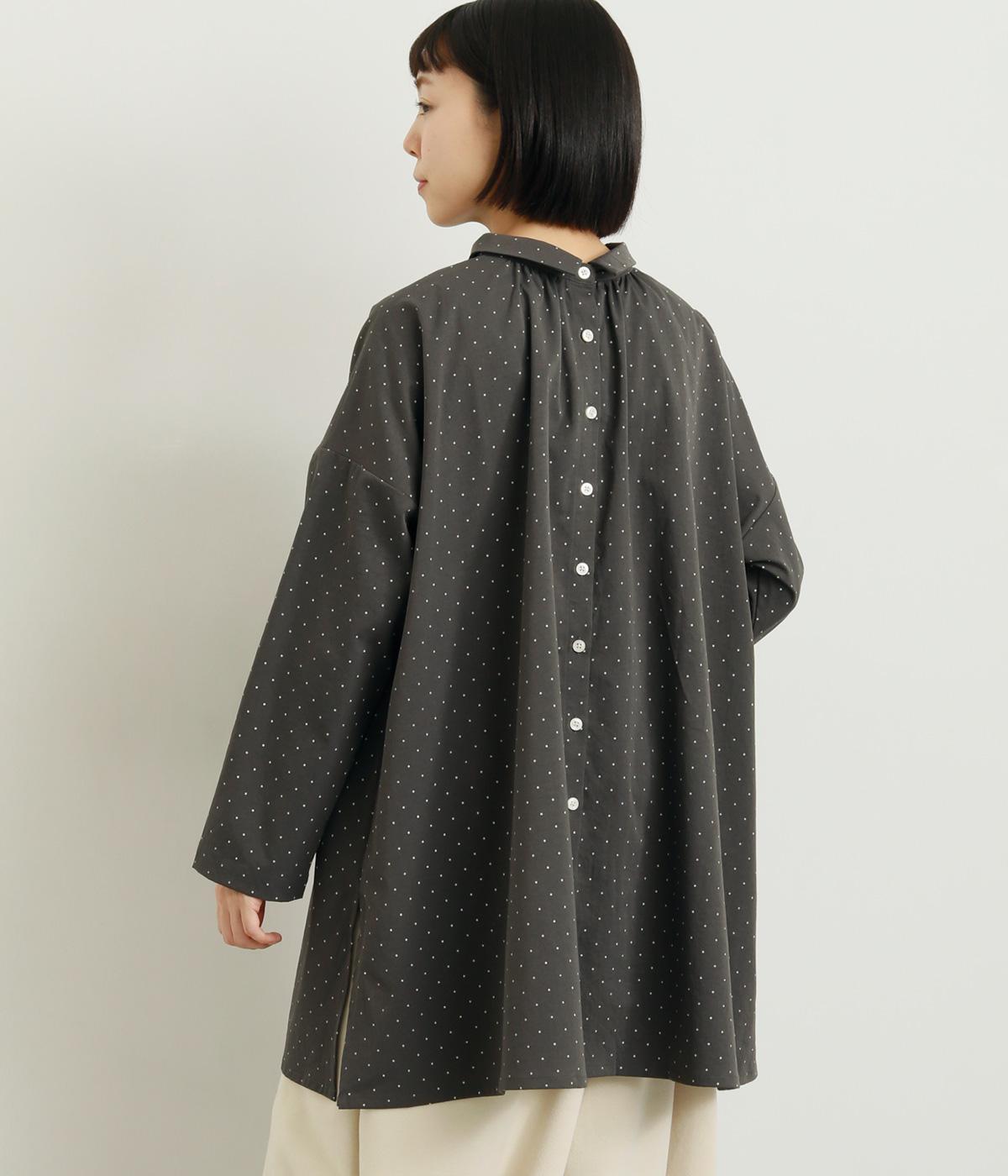 小さなドット柄がかわいらしいチュニックブラウスです。前後2way仕様で、ボタン面は可憐な雰囲気に、タック面はすっきりと洗練された印象に。ふんわりとしたラインと小さめの襟、落ち感のあるシルエットが上品さを引き立てます。サイドスリットが抜け感を生み、コーディネートのバランスが取りやすい仕上がりです。