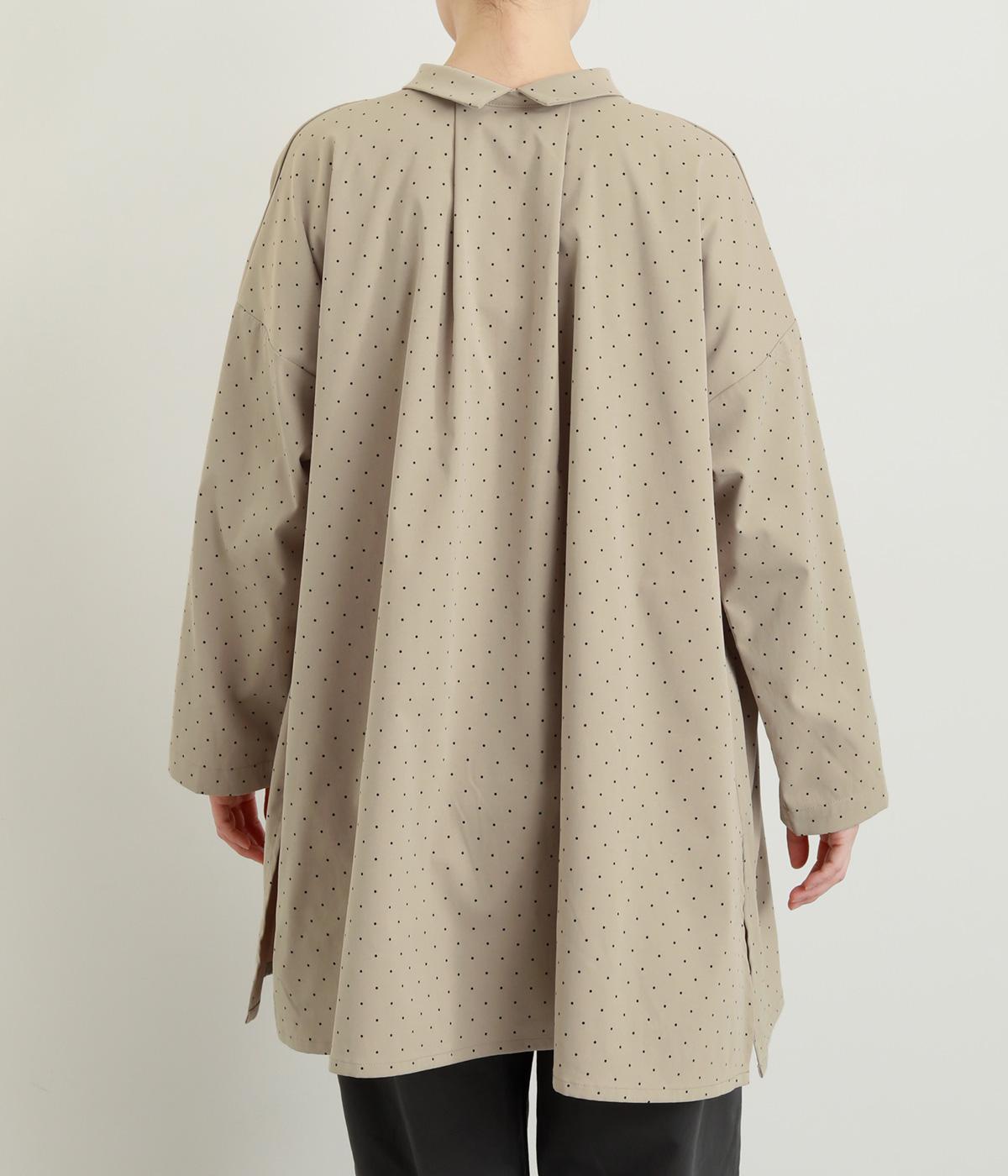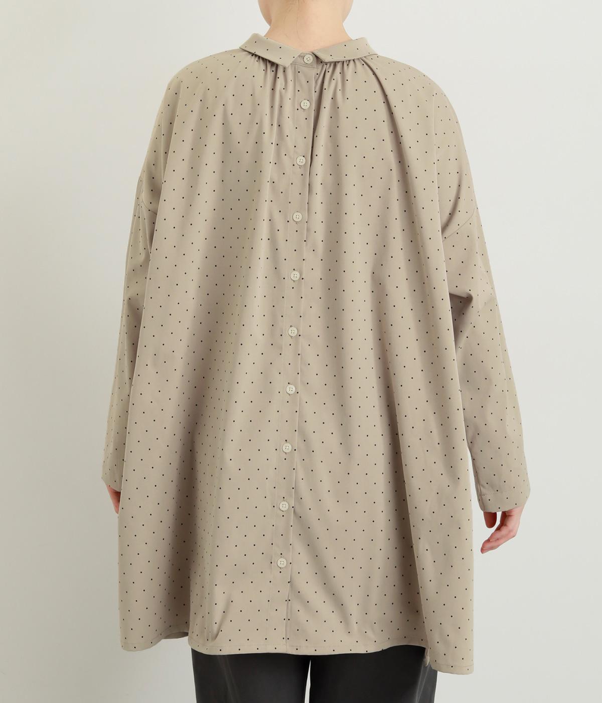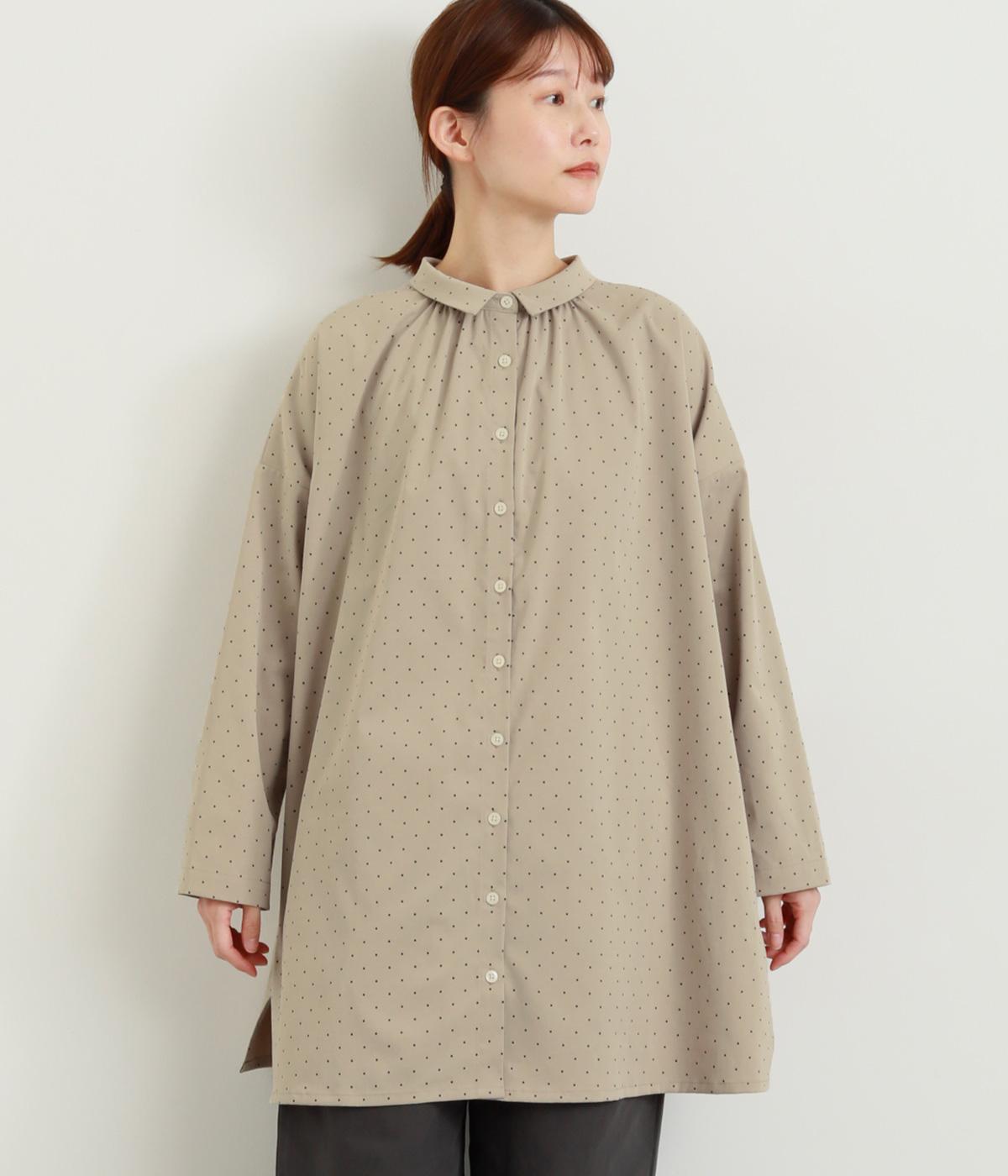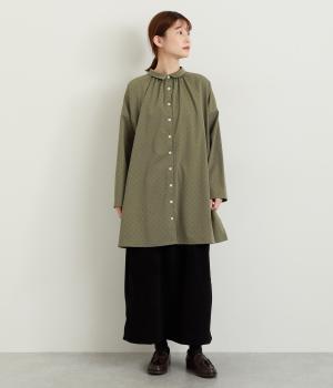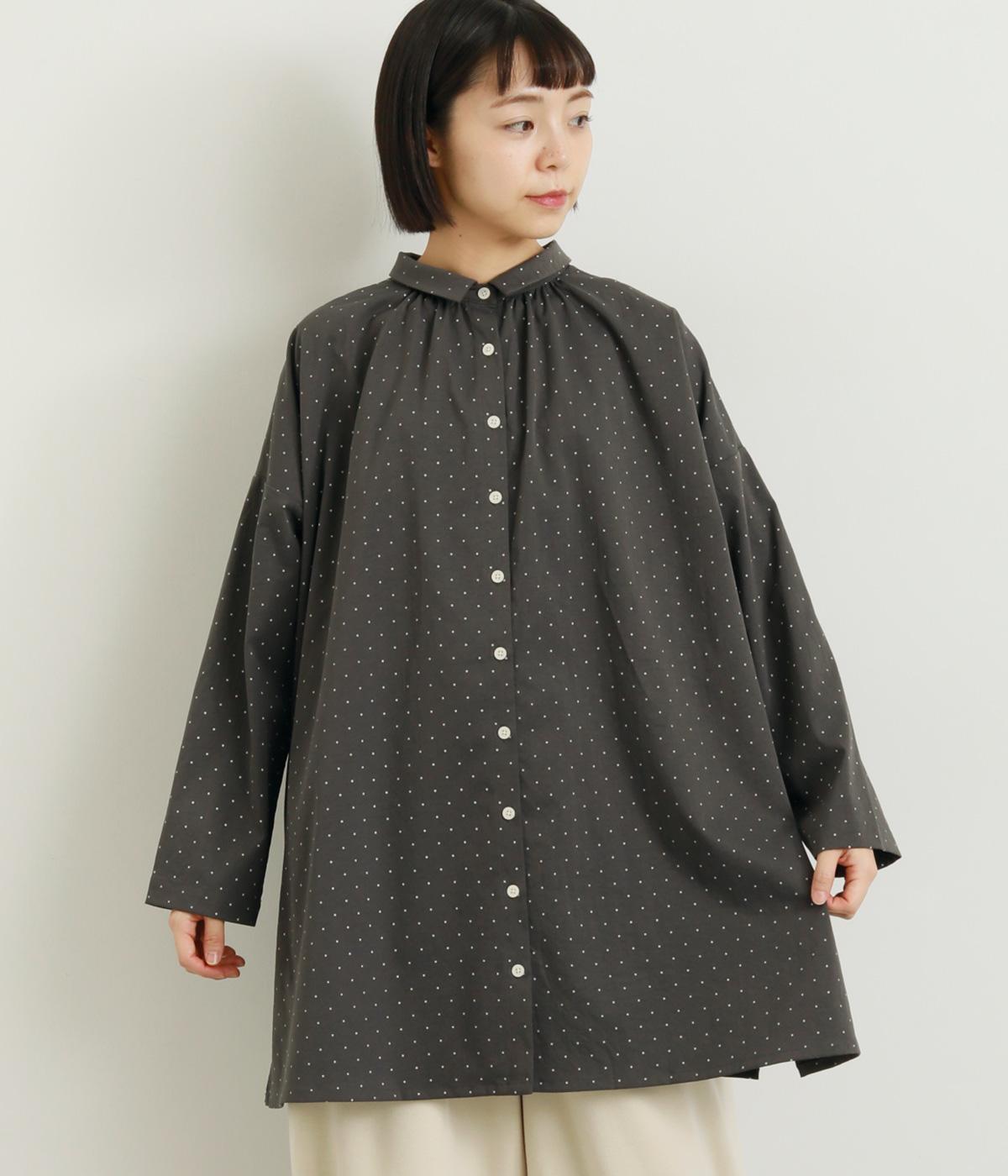 小さなドット柄がかわいらしいチュニックブラウスです。前後2way仕様で、ボタン面は可憐な雰囲気に、タック面はすっきりと洗練された印象に。ふんわりとしたラインと小さめの襟、落ち感のあるシルエットが上品さを引き立てます。サイドスリットが抜け感を生み、コーディネートのバランスが取りやすい仕上がりです。