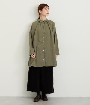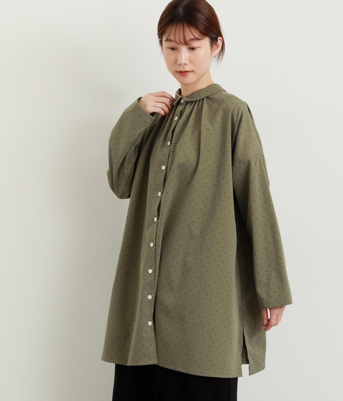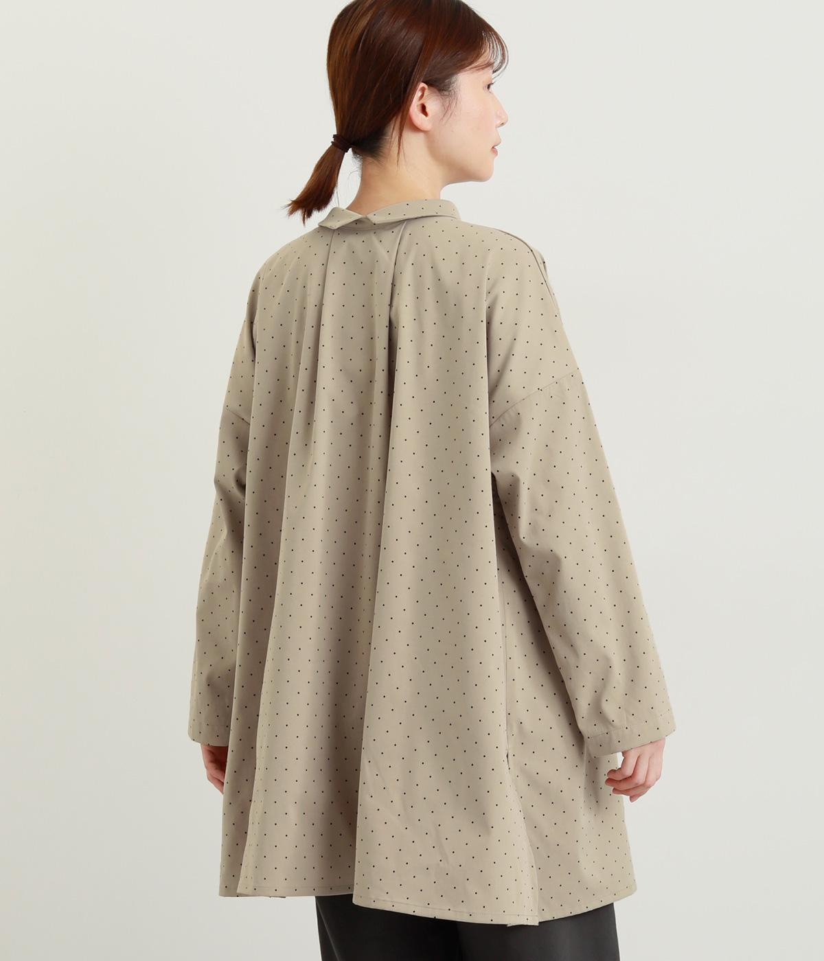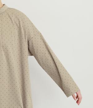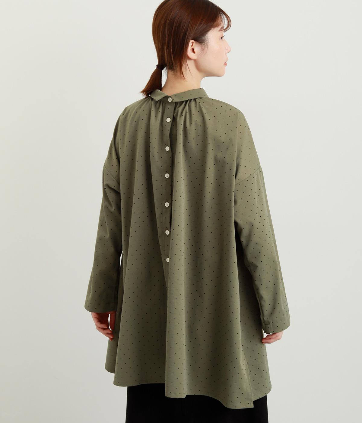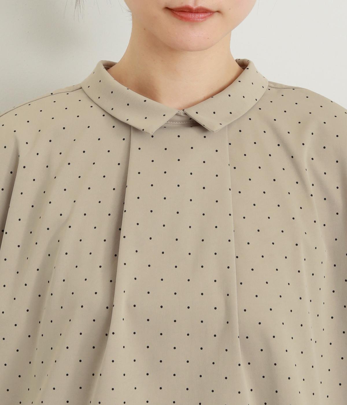小さなドット柄がかわいらしいチュニックブラウスです。前後2way仕様で、ボタン面は可憐な雰囲気に、タック面はすっきりと洗練された印象に。ふんわりとしたラインと小さめの襟、落ち感のあるシルエットが上品さを引き立てます。サイドスリットが抜け感を生み、コーディネートのバランスが取りやすい仕上がりです。