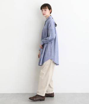ネップのある表面がナチュラルな風合いのコットンリネン生地。くったりと柔らかい肌なじみが魅力です。さらりと軽やかな着心地でロングシーズン着用できる素材感です。
