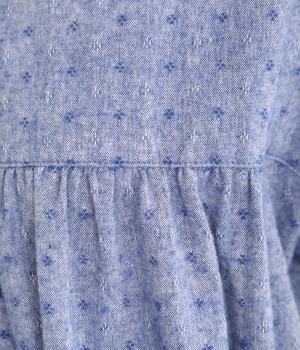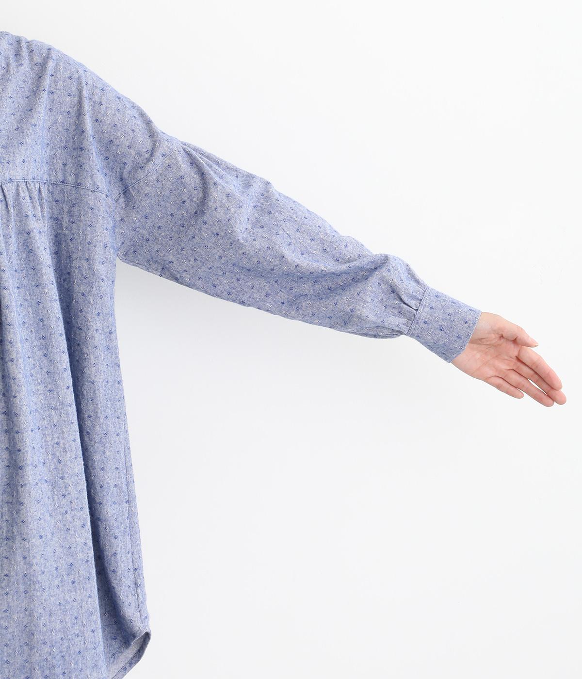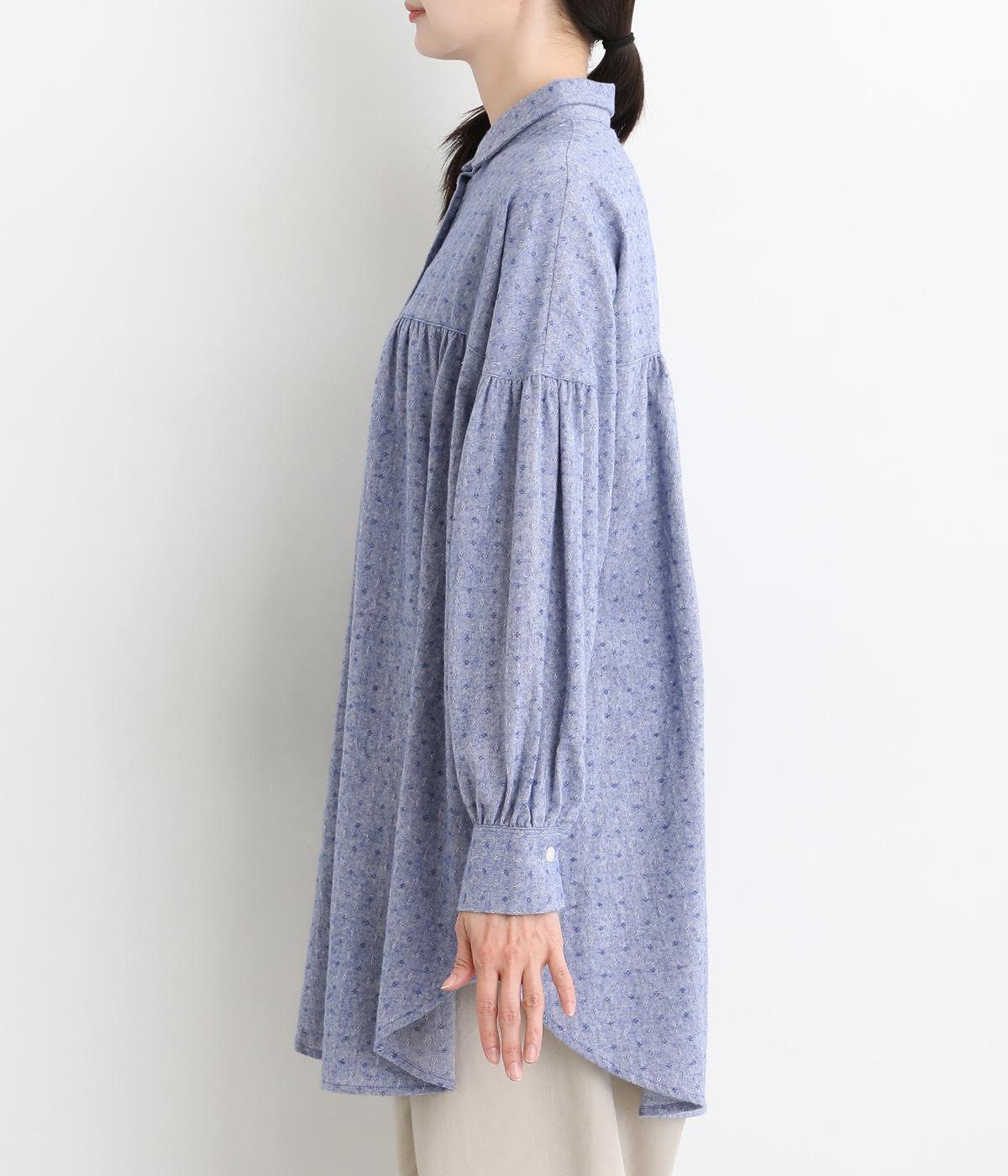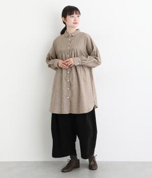さりげない総柄刺しゅうが表情に奥行きを与えるブラウス。切り替えからほどこしたギャザーがふんわりとしたシルエットを描きます。裾の曲線ラインも女性らしい雰囲気を添えて大人なカジュアルスタイルを演出します。