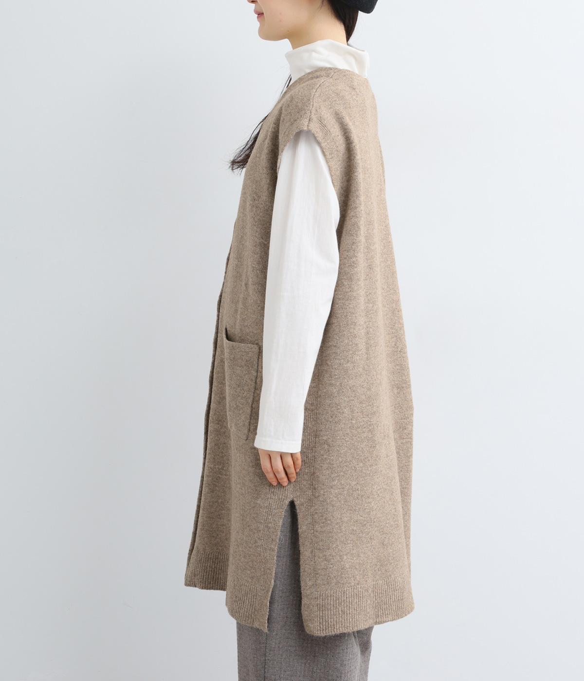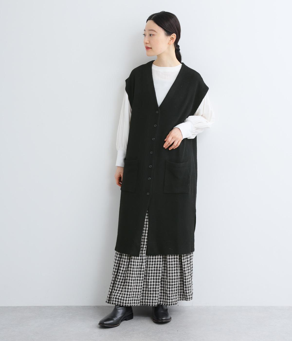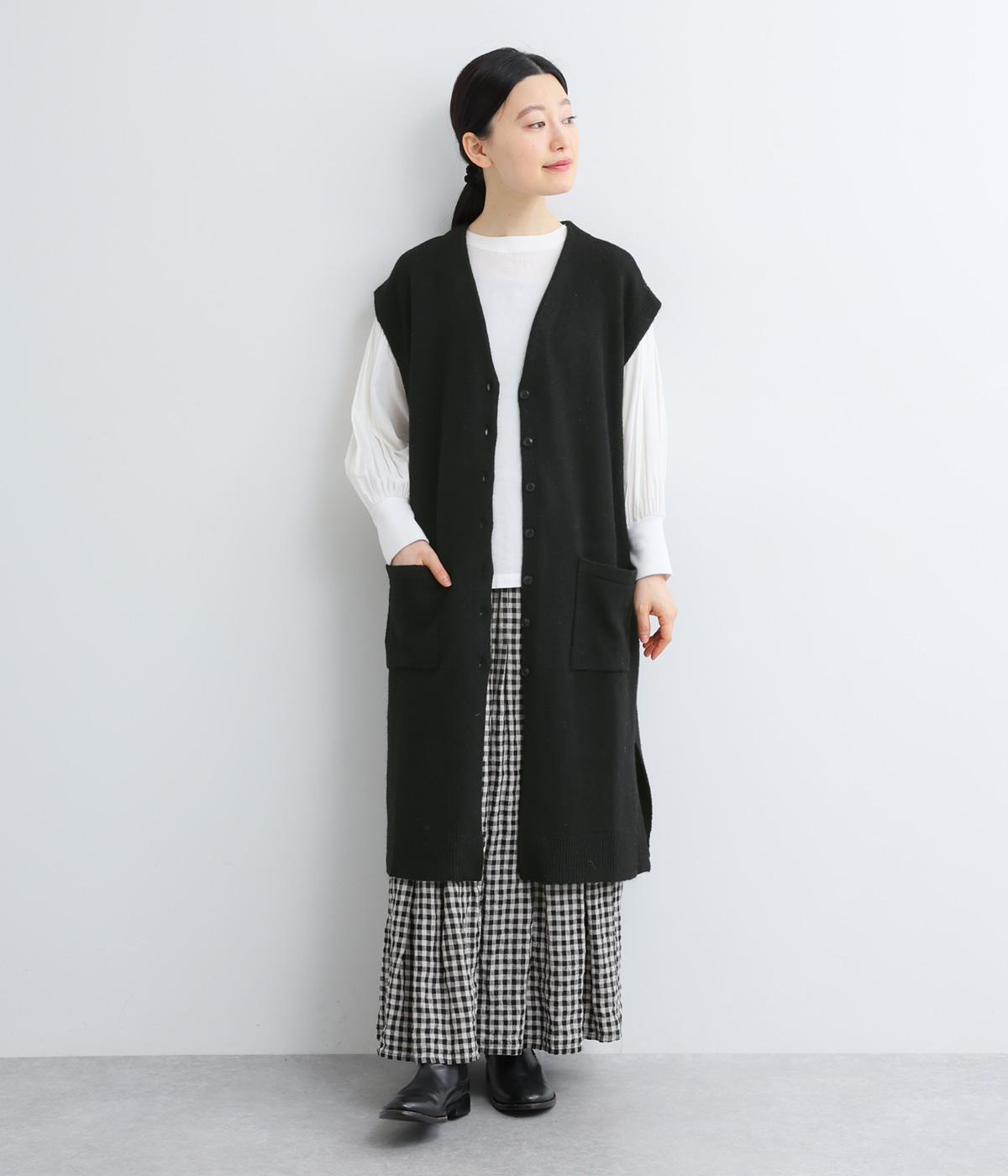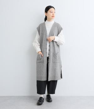 ボタンレスの裾とサイドスリットが動きやすさを確保しながら抜け感を添えています。前面に配したポケットもほどよいアクセントに。パンツにもスカートにも合わせやすく、こなれ感のあるスタイリングを叶えてくれるアイテムです。
