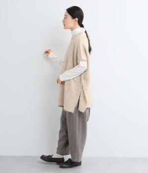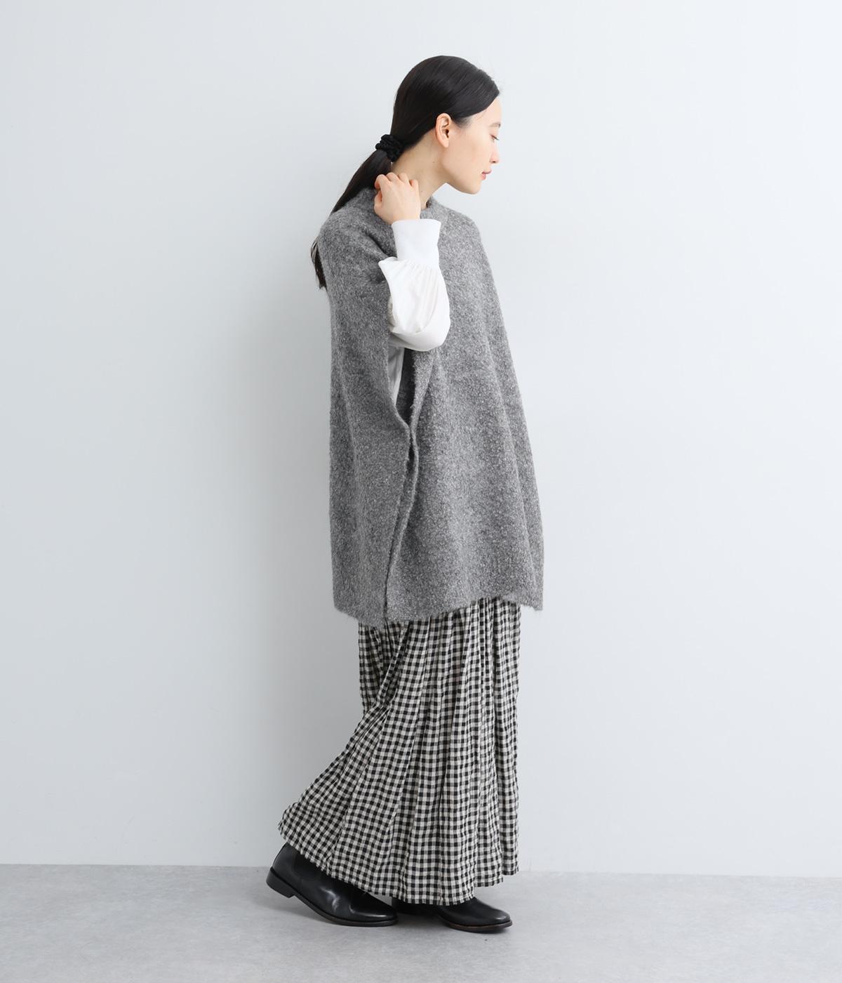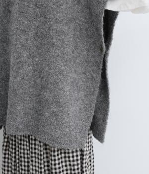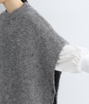 サイドボタンひとつで留めることで自由で優雅なラインを描きます。ゆったりした身幅や緩やかな首まわりがリラクシーな着心地を後押し。重ねるインナーを選ばず日々のスタイリングに表情を添えてくれるアイテムです。