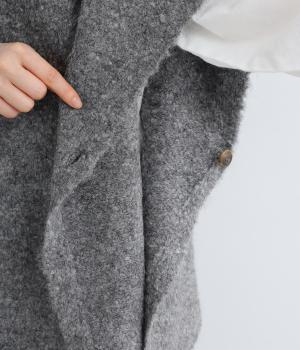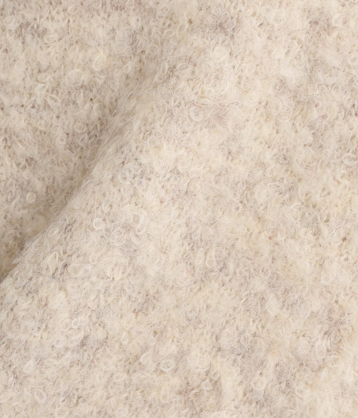 くるくるとカーリーな表面があたたかみのある生地。ふんわりと優しく体を包み込む伸縮性が魅力です。さりげない濃淡が織りなす色味が味わい深い雰囲気の素材です。