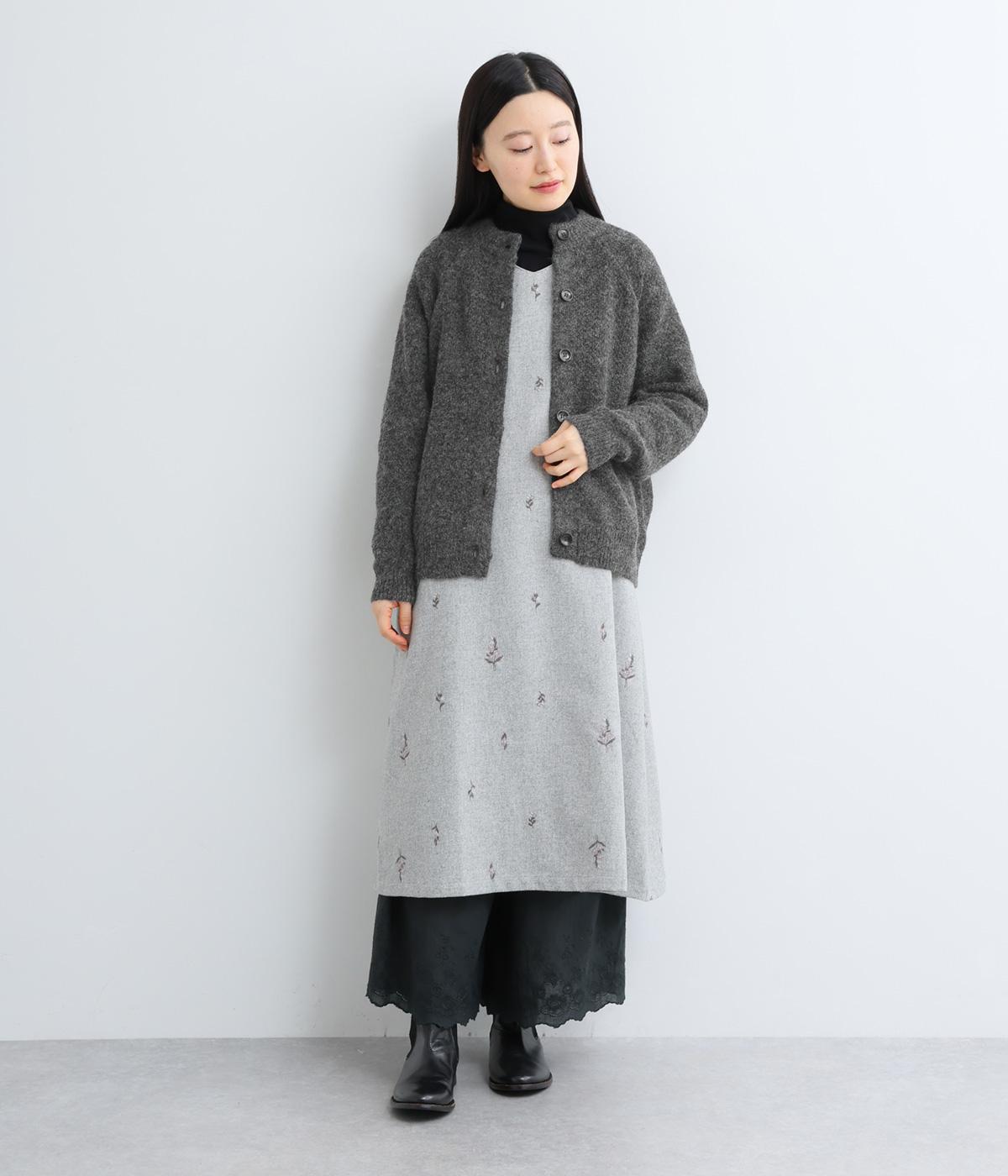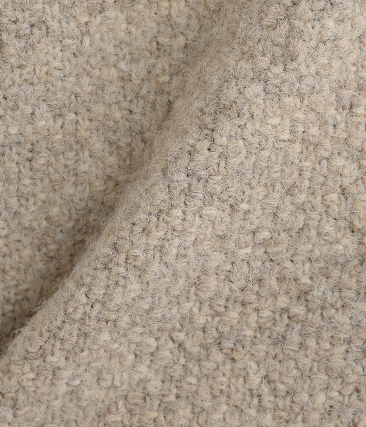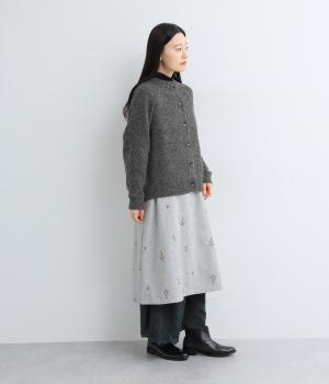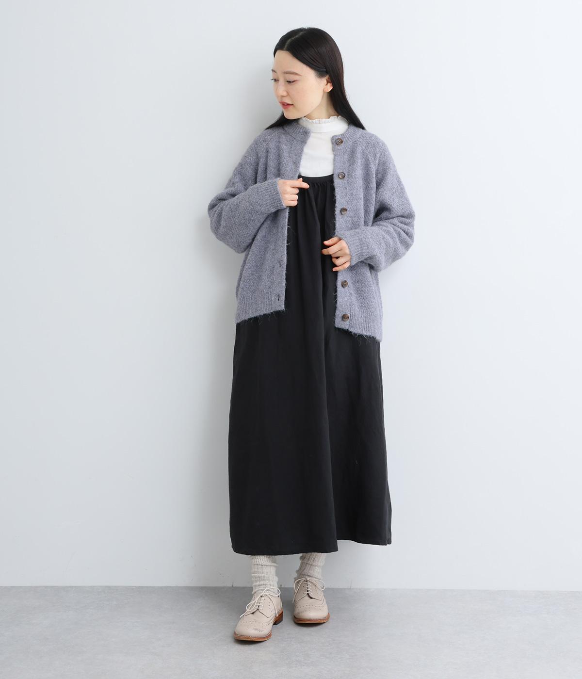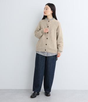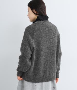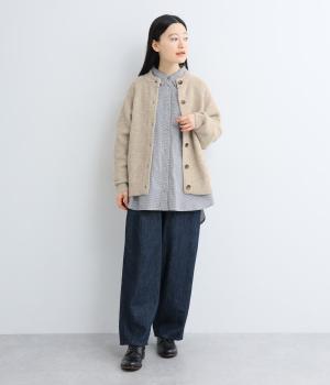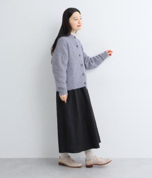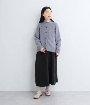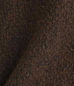 立体的な表面感と杢調のニュアンスのある色味が味わい深い表情の混紡生地です。存在感がありながらも重すぎず、伸縮性があって優しく体を包み込んでくれる素材感です。