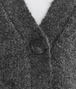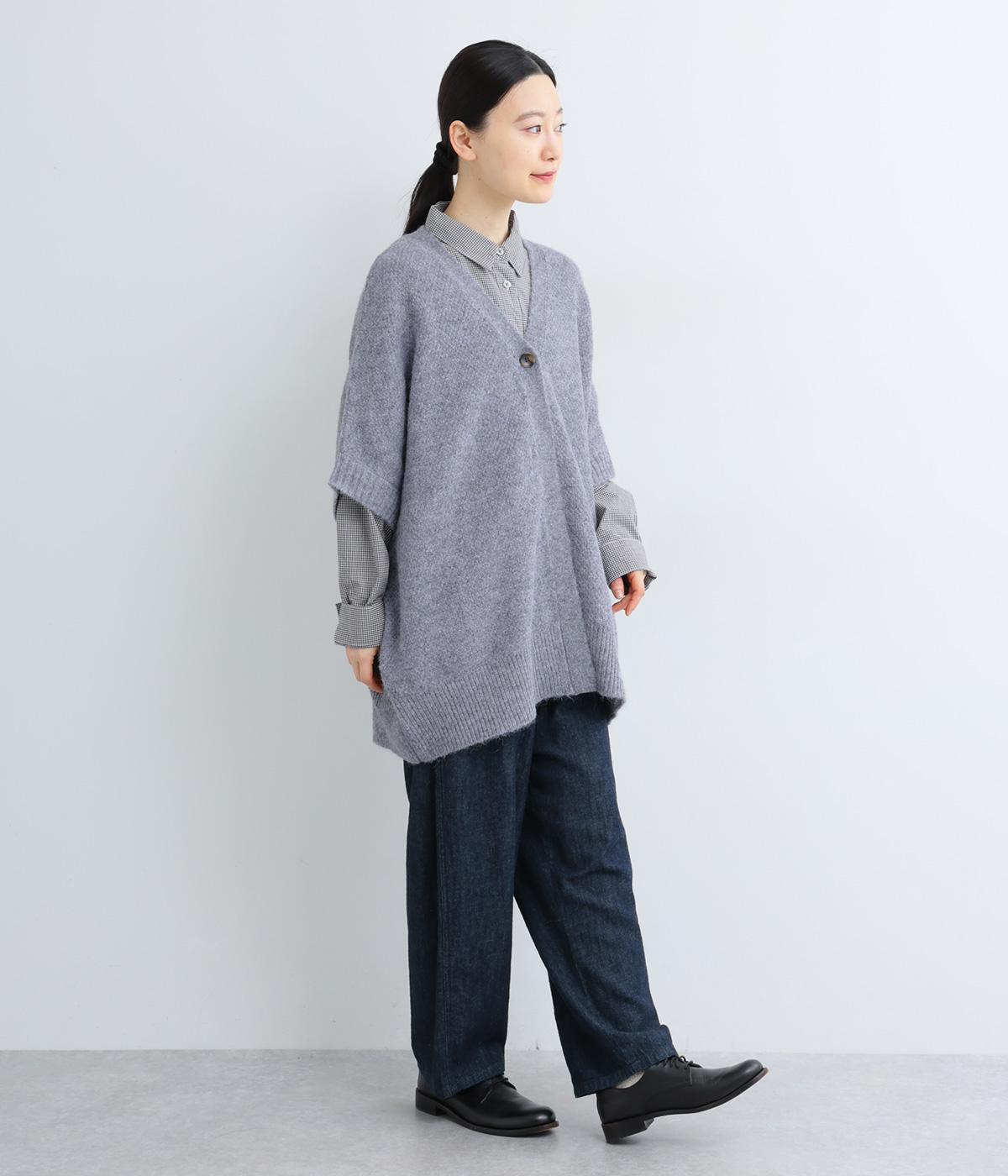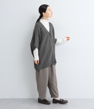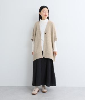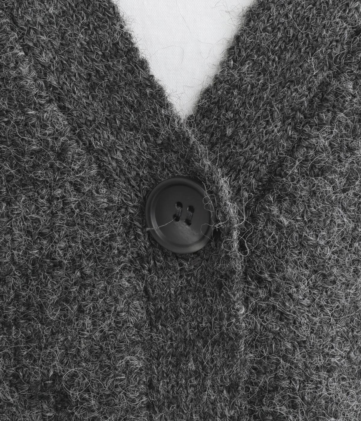 フロントをひとつボタンで留めることで自由で優雅なラインを描きます。ゆったりした身幅がリラクシーな着心地を叶え、長めの丈が腰まわりをカバーします。重ねるインナーを選ばず日々のスタイリングに表情を添えてくれるアイテムです。