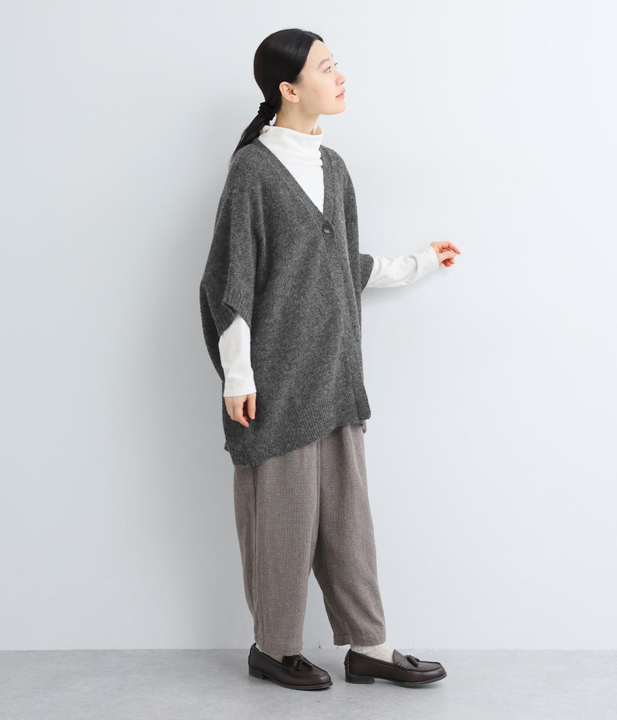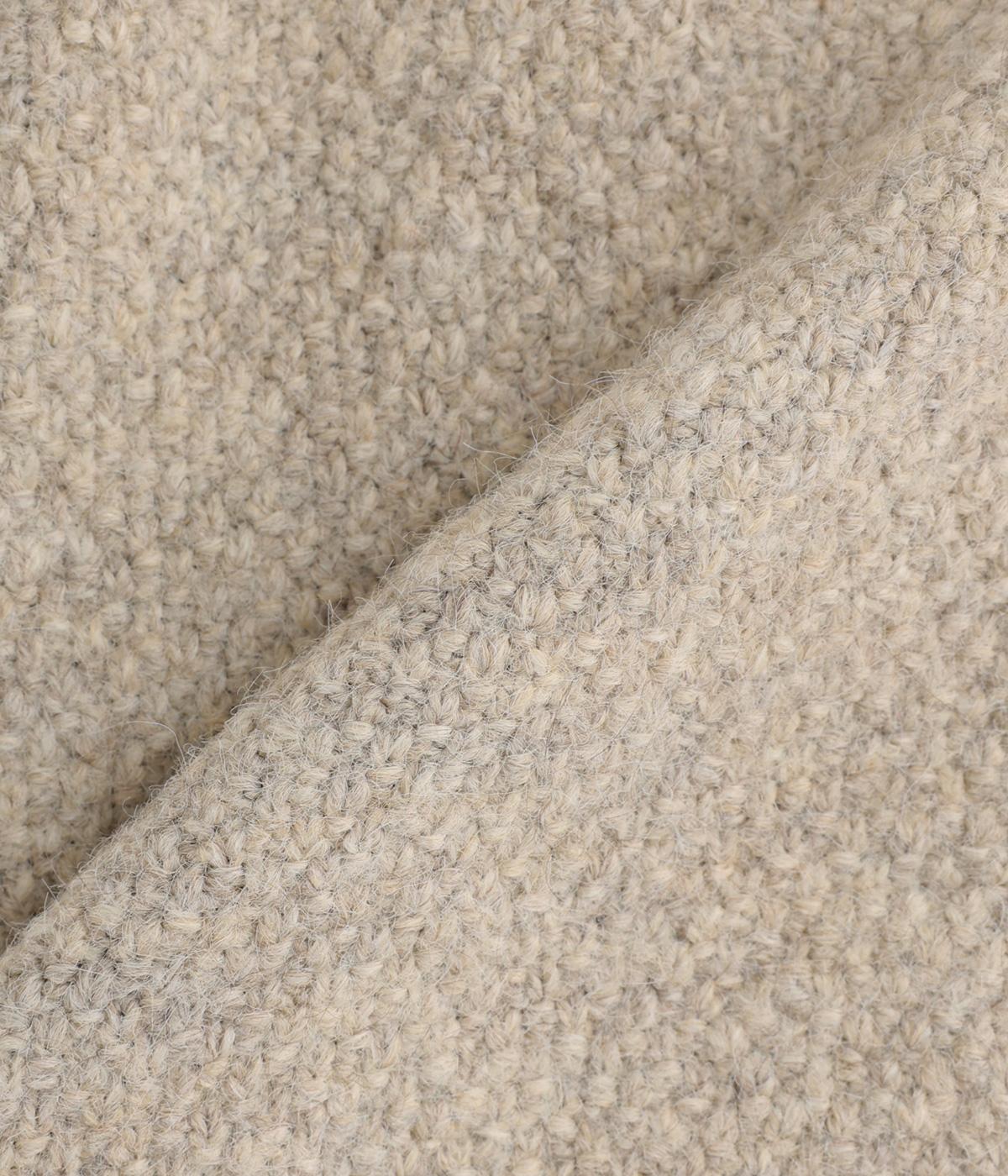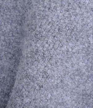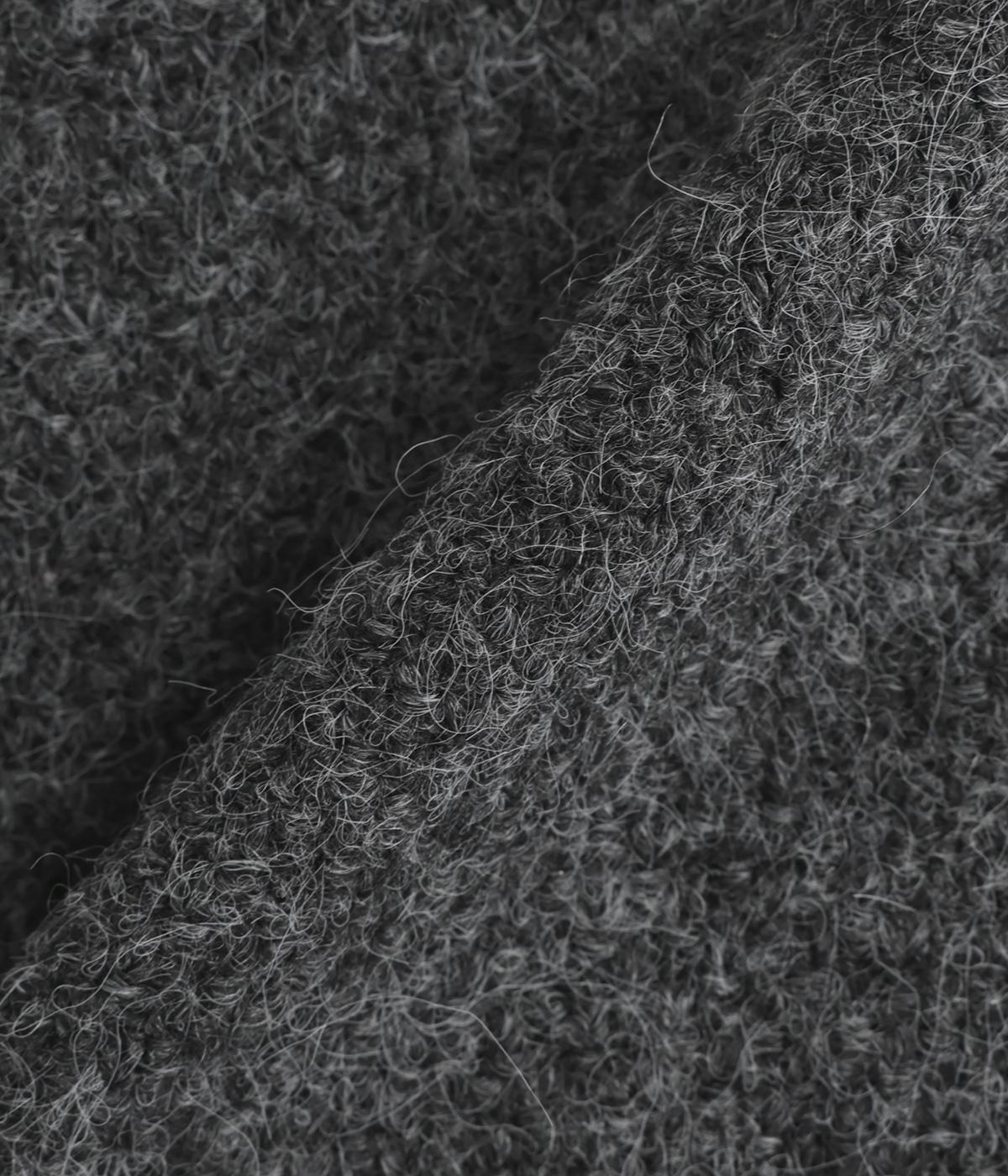 立体的な表面感と杢調のニュアンスのある色味が味わい深い表情の混紡生地です。存在感がありながらも重すぎず、伸縮性があって優しく体を包み込んでくれる素材感です。