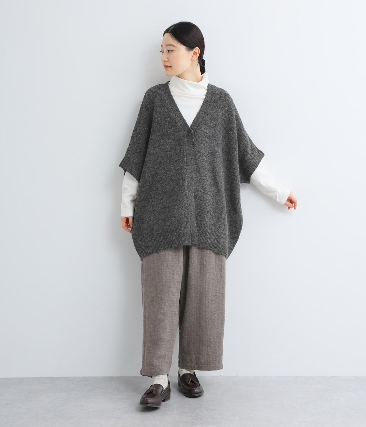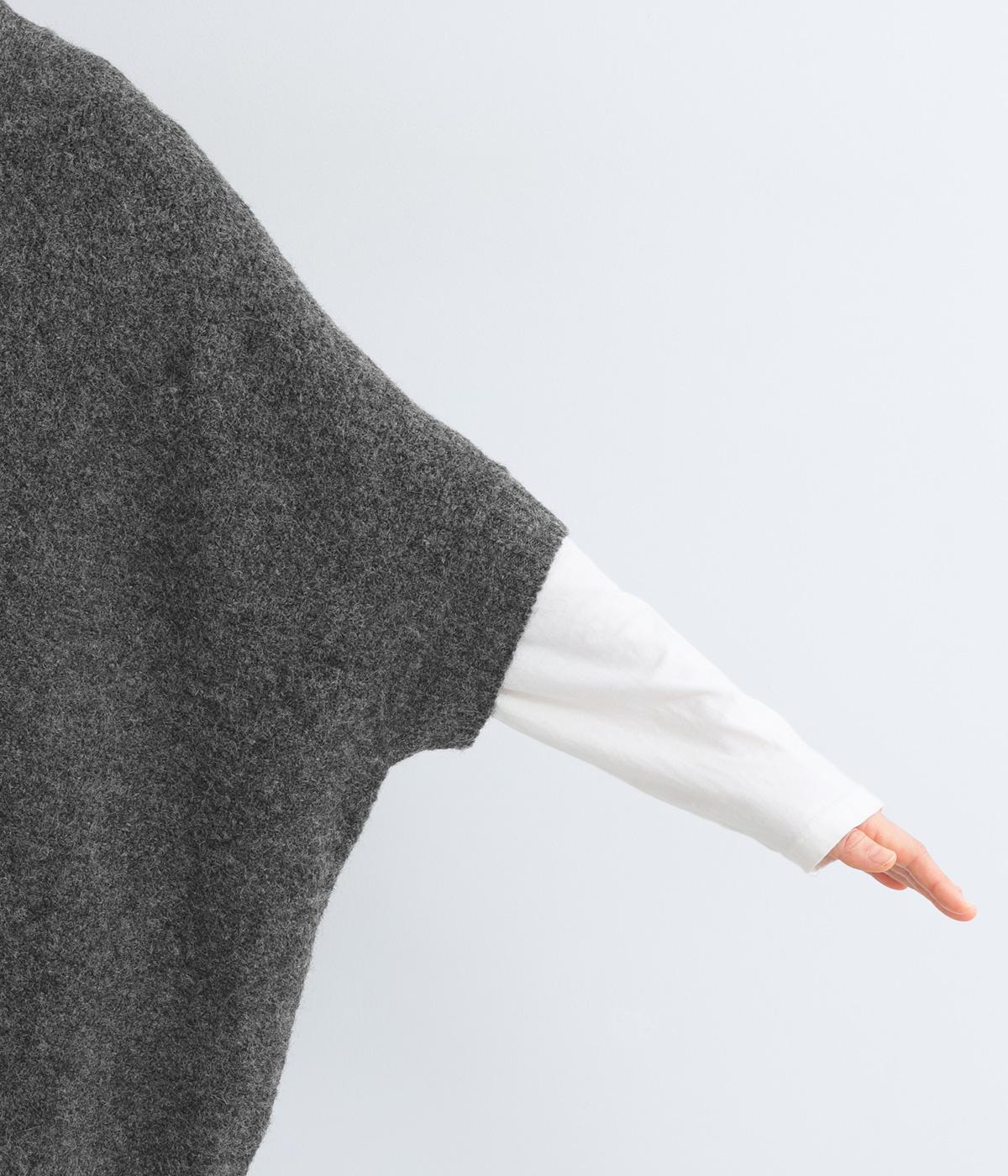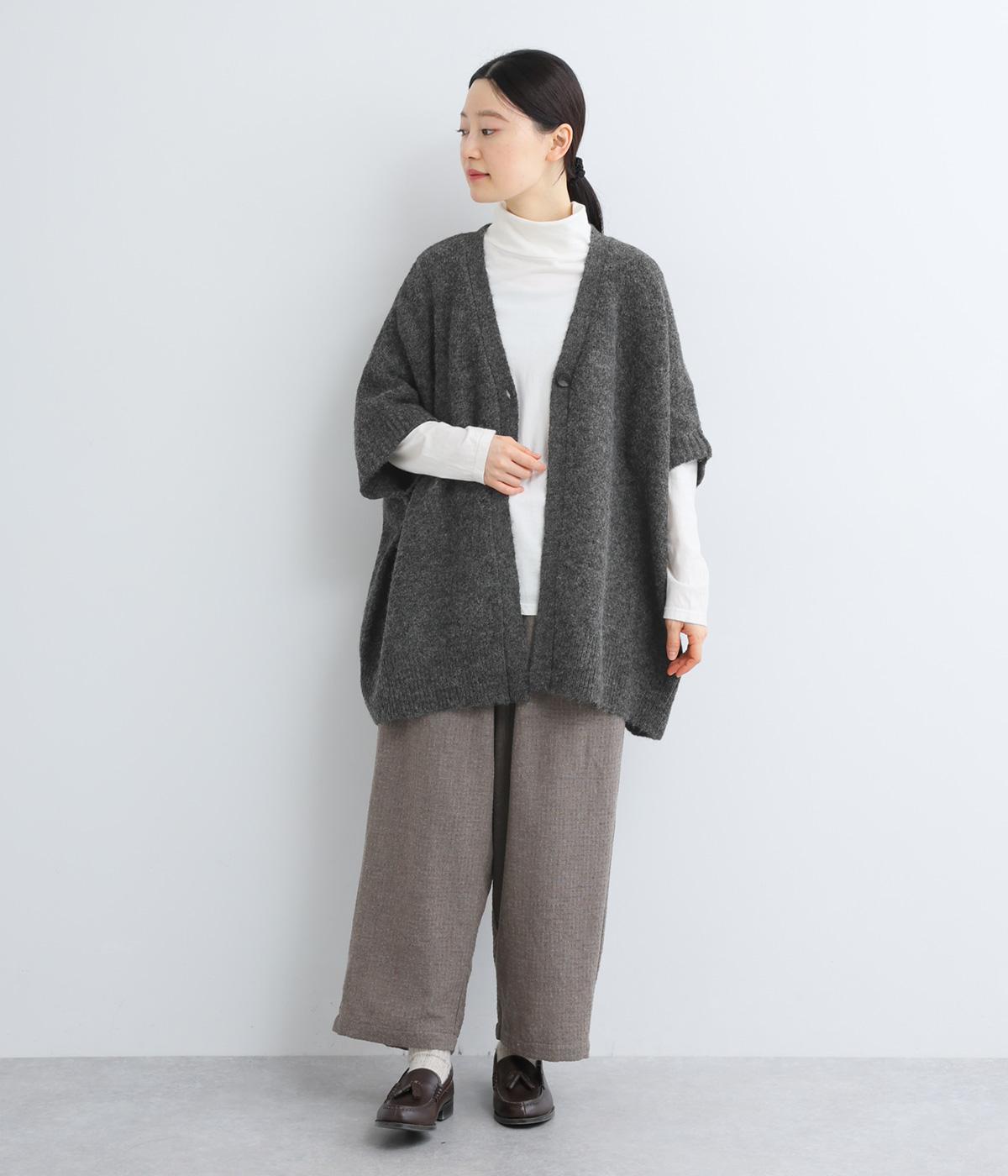 立体的な表面感と杢調のニュアンスのある色味が味わい深い表情の混紡生地です。存在感がありながらも重すぎず、伸縮性があって優しく体を包み込んでくれる素材感です。