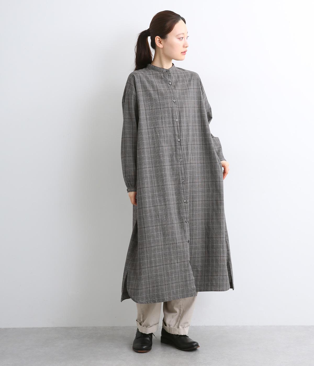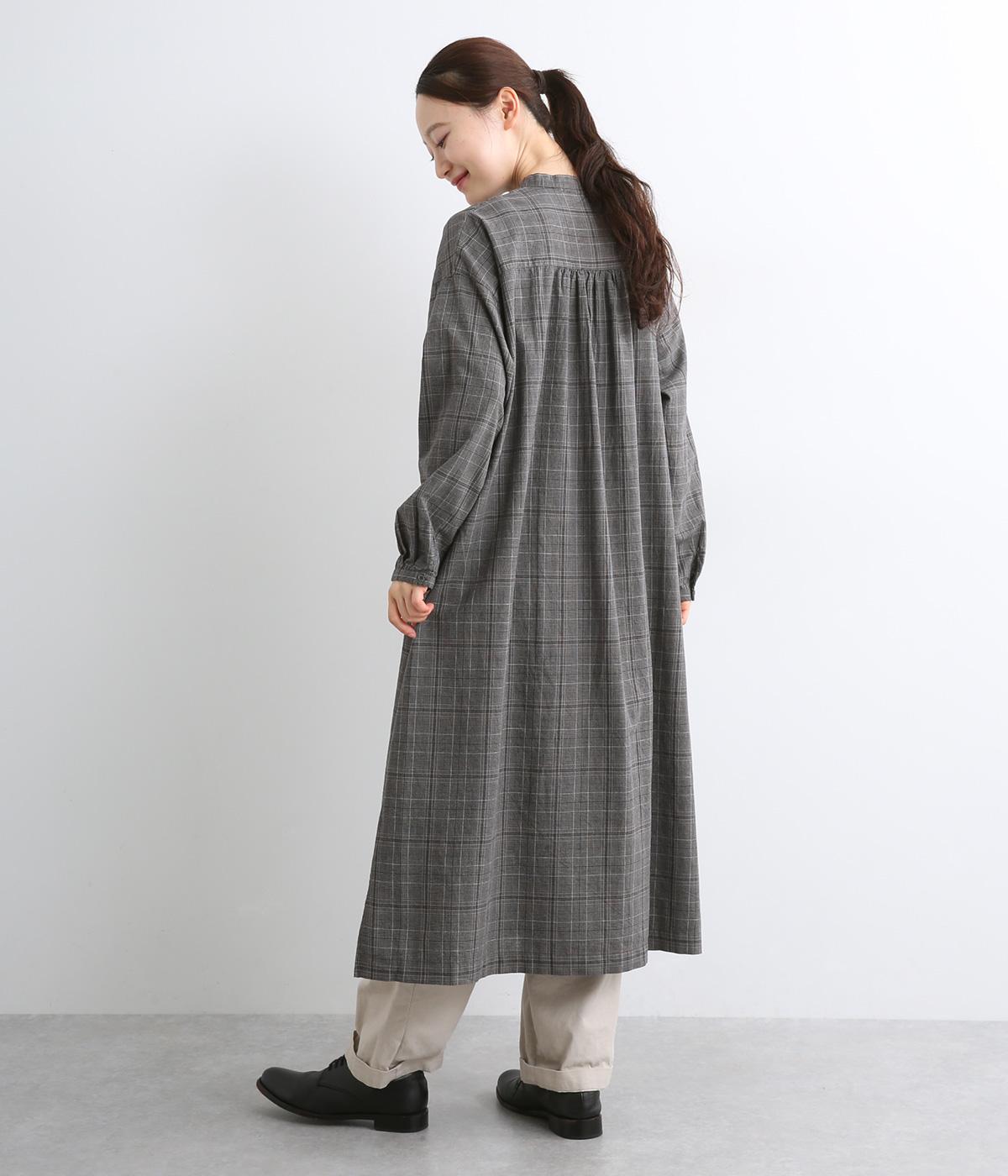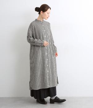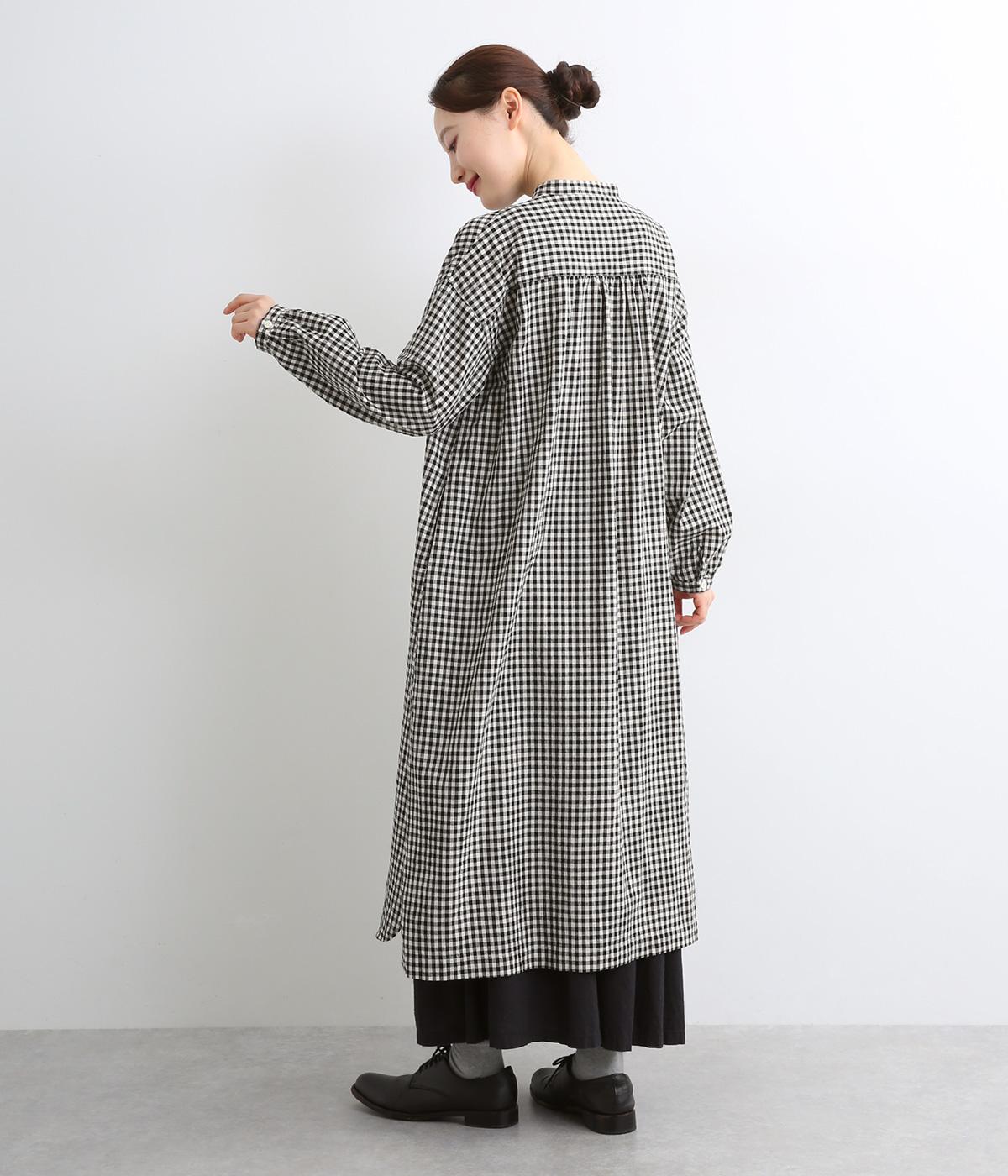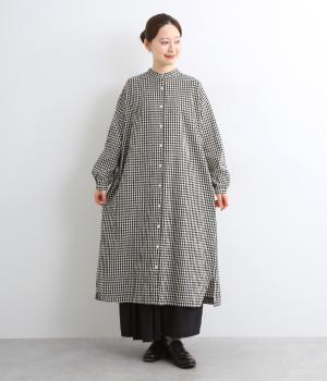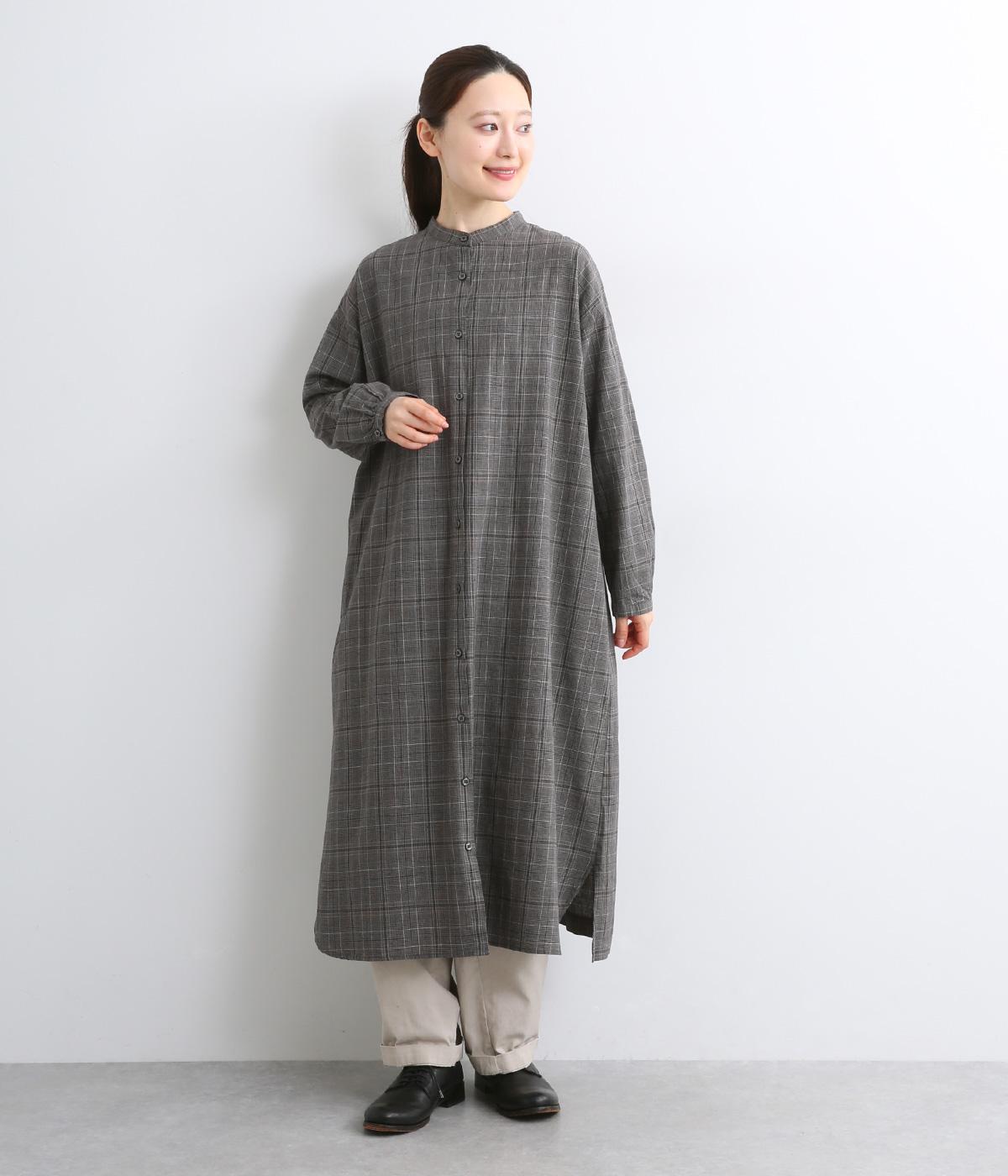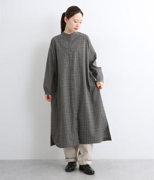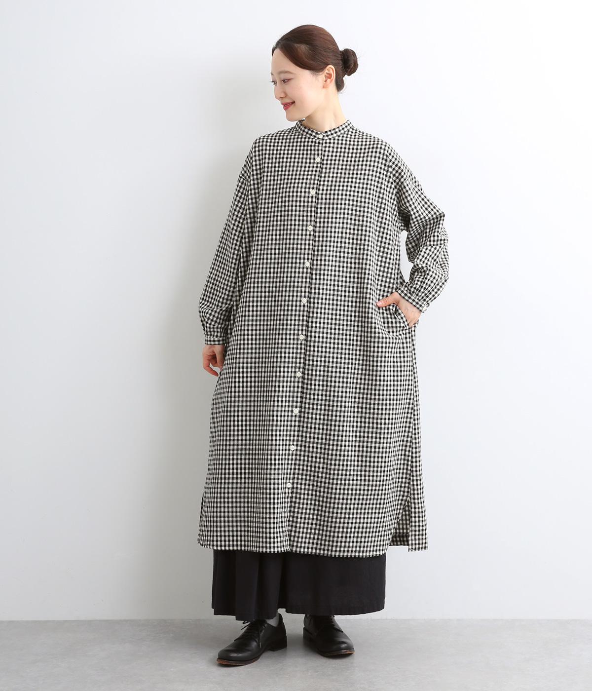 ゆったりした身幅でリラックス感のあるワンピースです。首元はスタンドカラーですっきりと仕上げました。スカートやパンツと重ね着したり、前を開けてサッと羽織ったり、さまざまな着こなしを楽しめます。