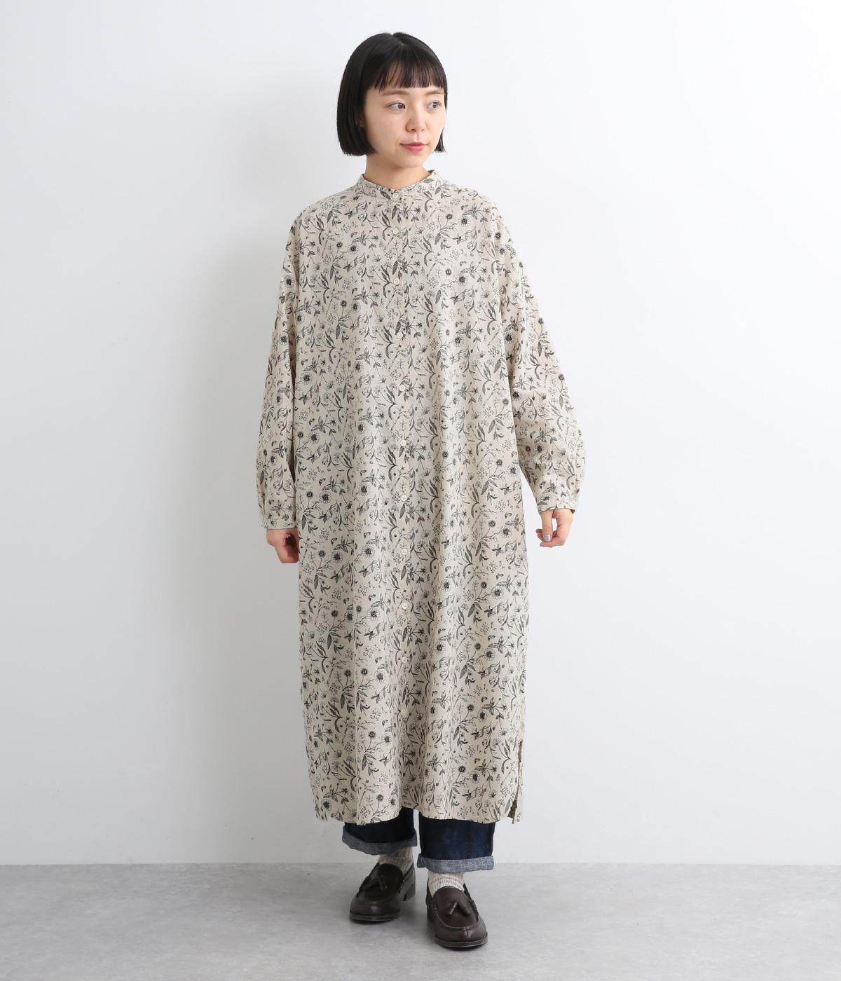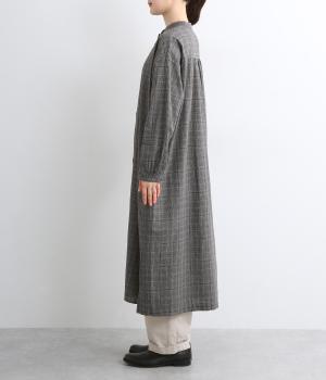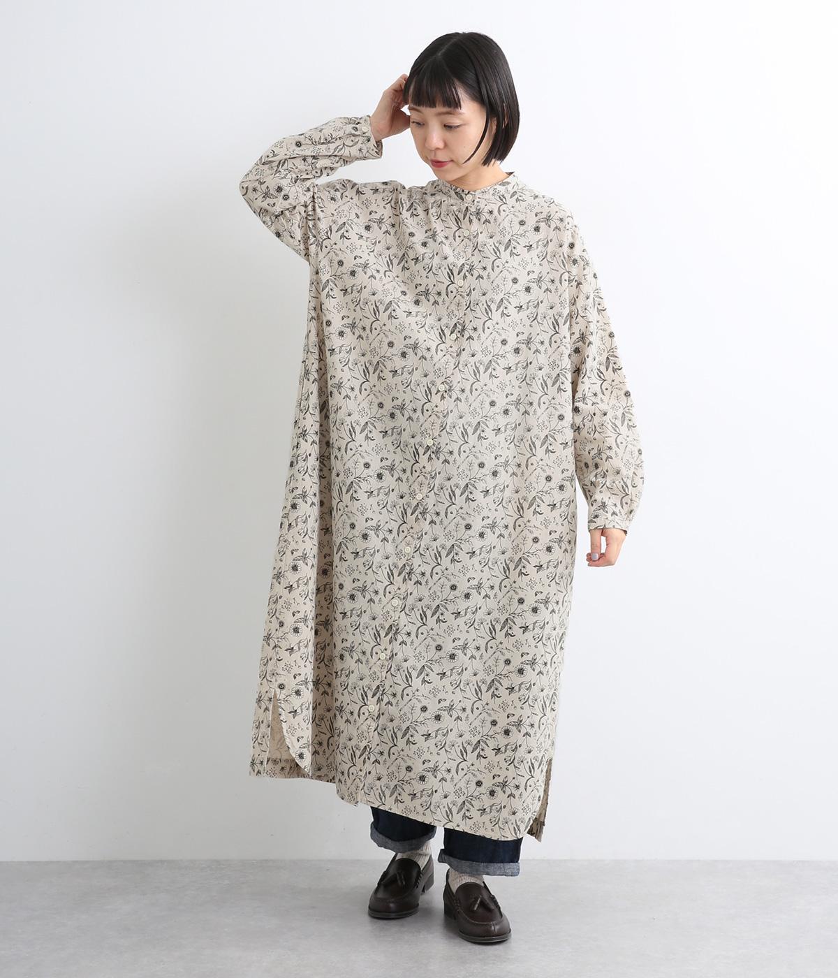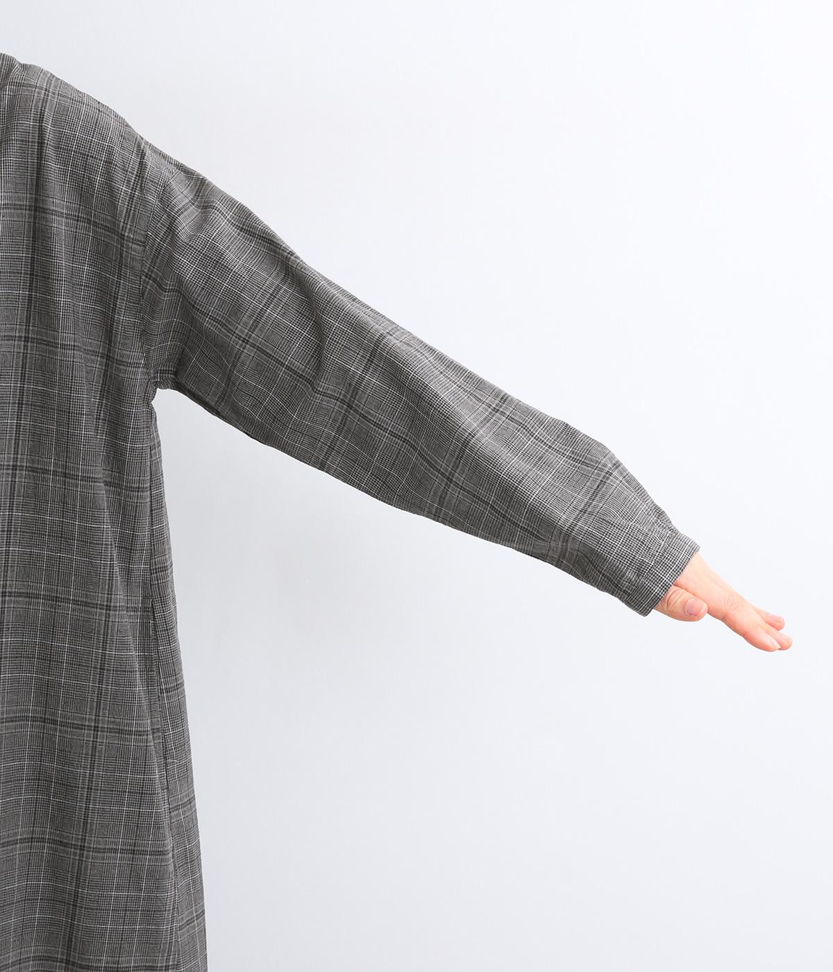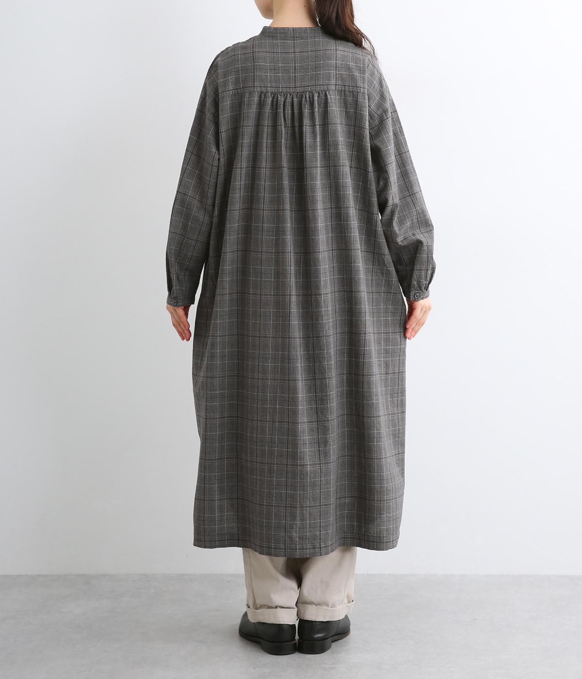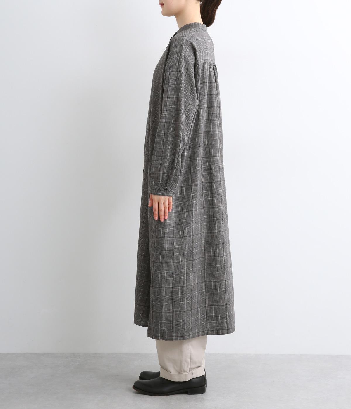 ゆったりした身幅でリラックス感のあるワンピースです。首元はスタンドカラーですっきりと仕上げました。スカートやパンツと重ね着したり、前を開けてサッと羽織ったり、さまざまな着こなしを楽しめます。