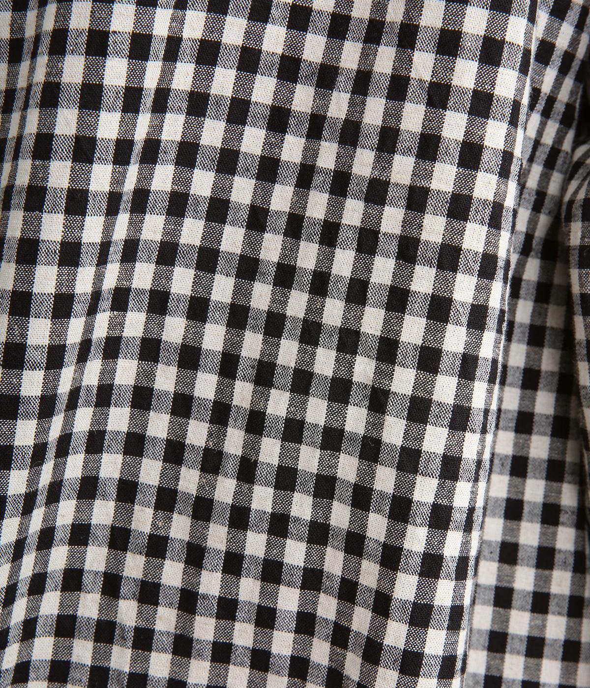 さらりと軽やかな着心地のコットンリネン平織生地を使用しました。自然な風合いで肌になじむのが特徴で、快適に着られます。ロングシーズン着用できる素材感です。