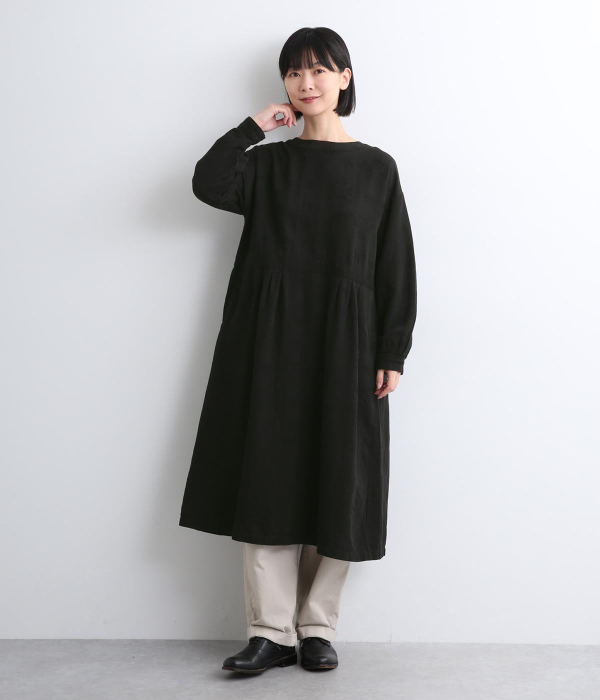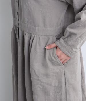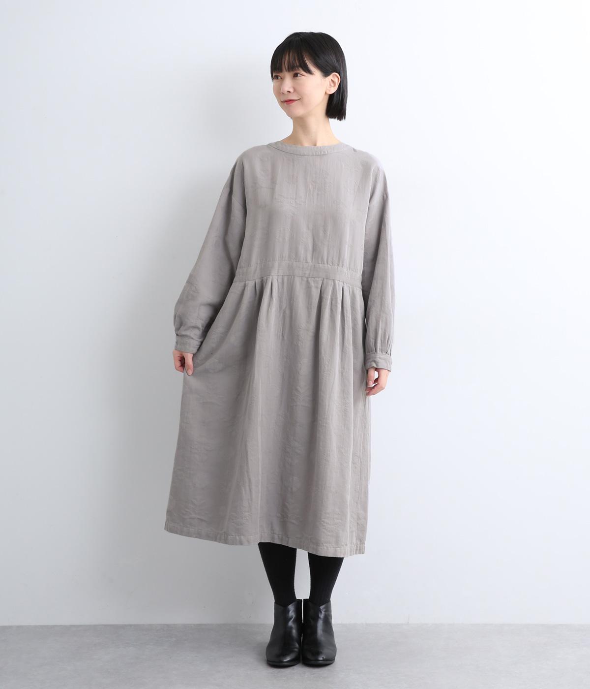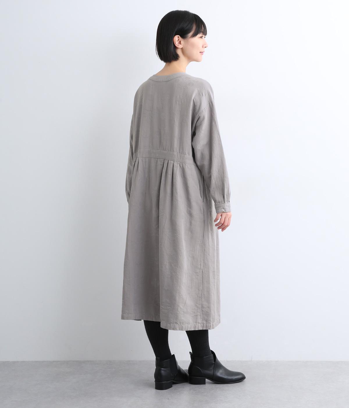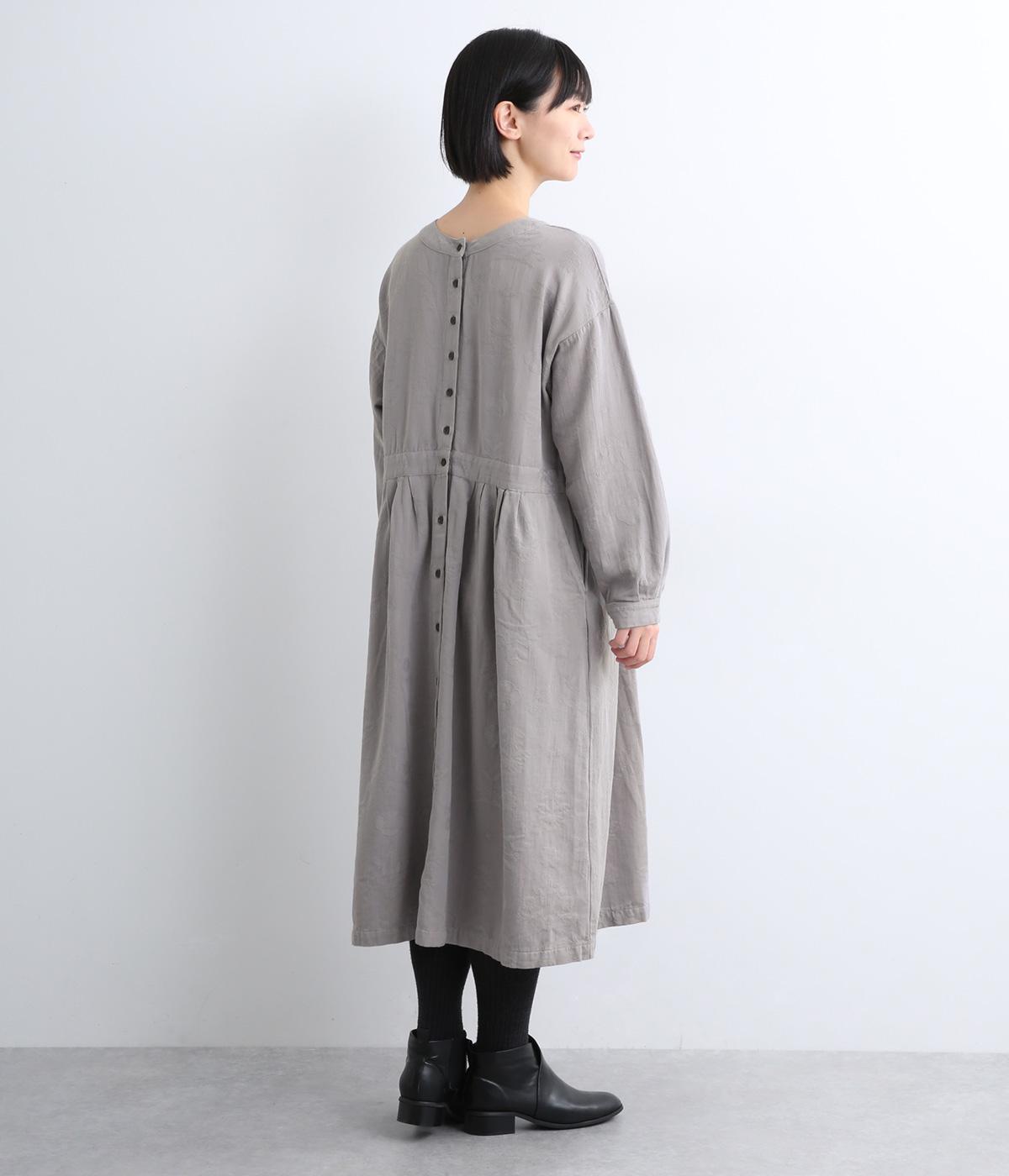 クラシカルな雰囲気を醸すジャカードワンピースは、前後どちらでもたのしめる2wayデザインにしました。ウエストラインにタックを入れてゆったりと着心地よく、前あきの羽織りスタイルもおすすめです。