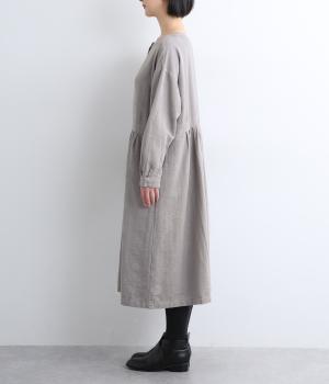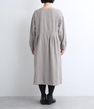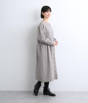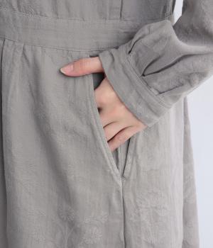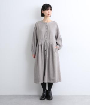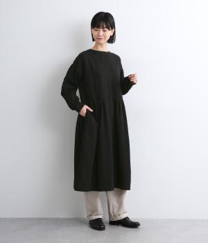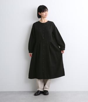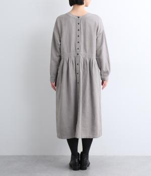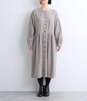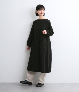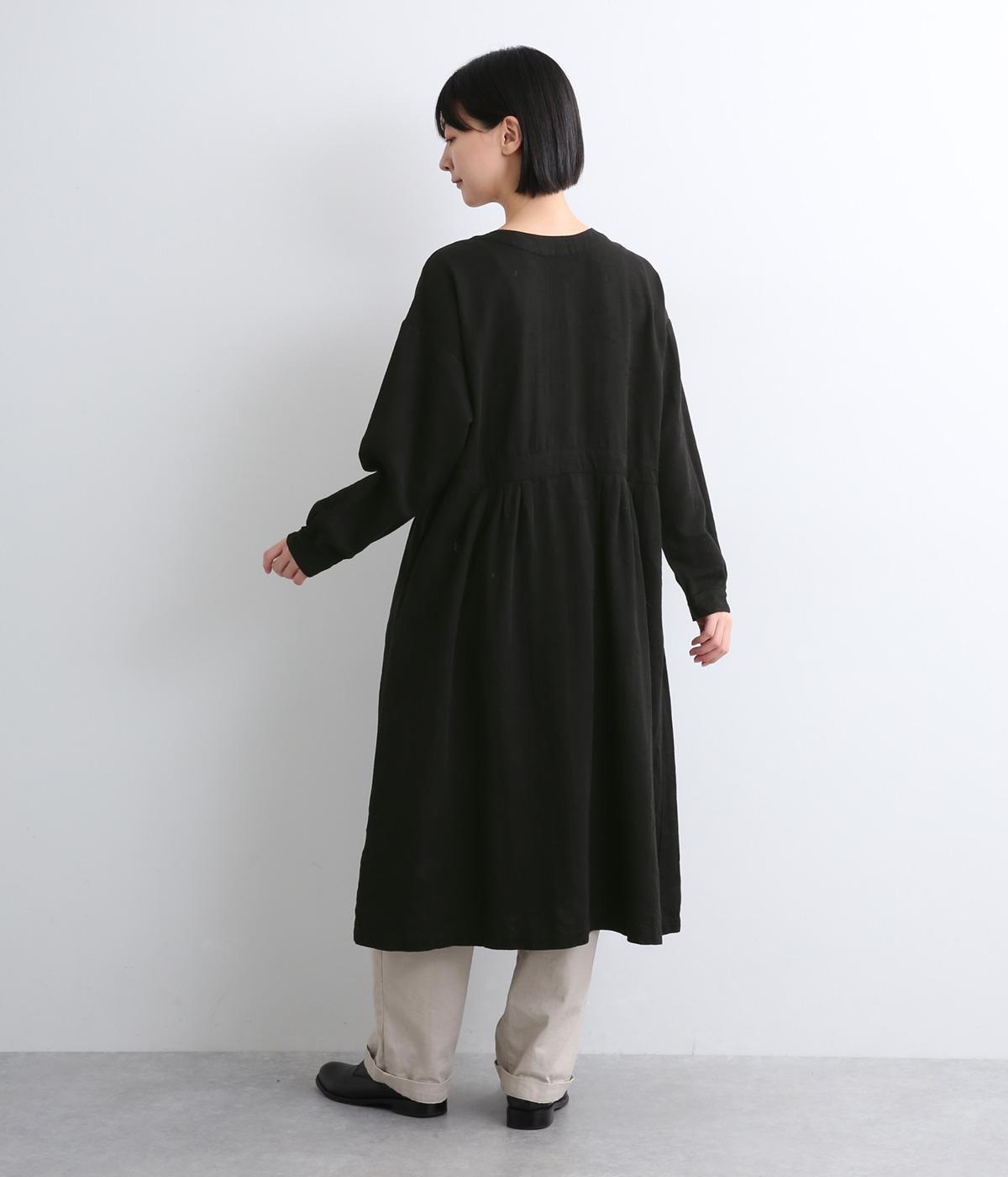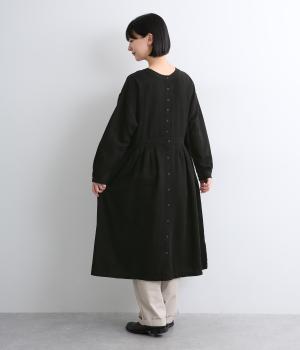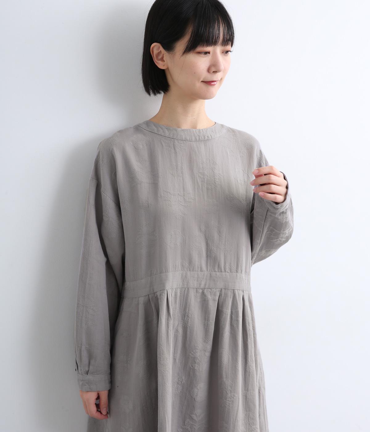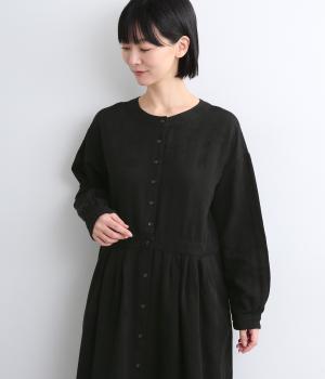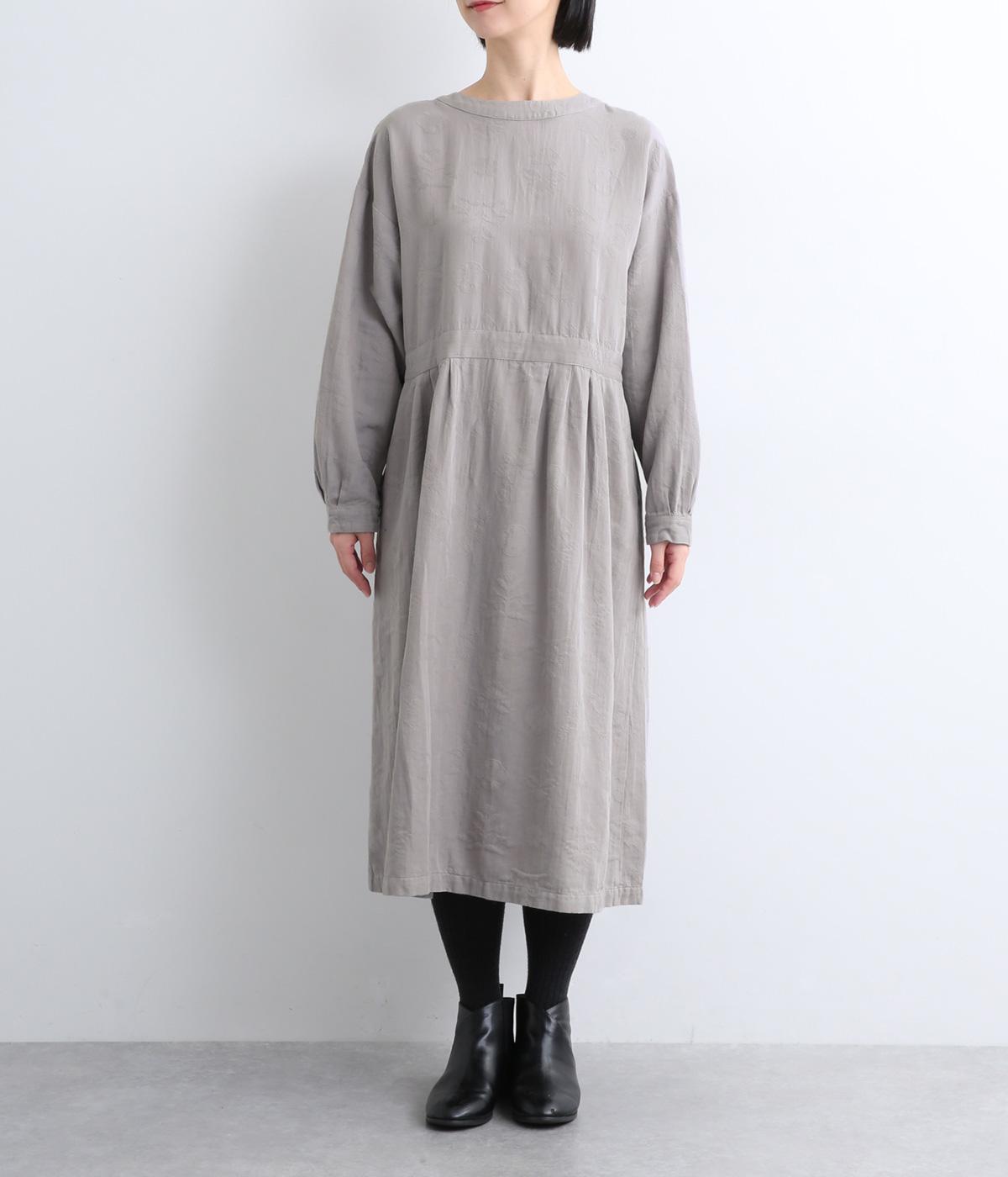 クラシカルな雰囲気を醸すジャカードワンピースは、前後どちらでもたのしめる2wayデザインにしました。ウエストラインにタックを入れてゆったりと着心地よく、前あきの羽織りスタイルもおすすめです。