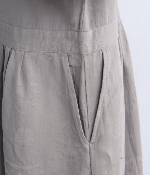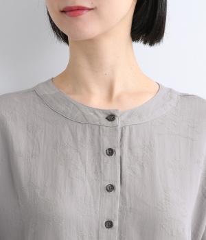 さり気なく花柄を描いたコットンジャカード生地を採用。落ち着きのある風合いにさらりとした肌触りが特徴で、肉厚すぎずデイリー使いしやすい生地感です。