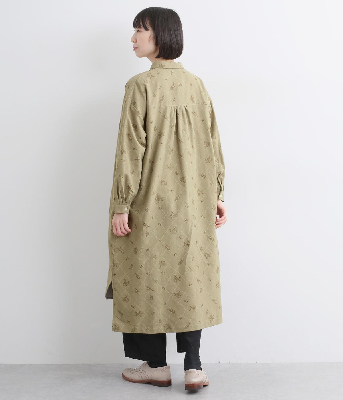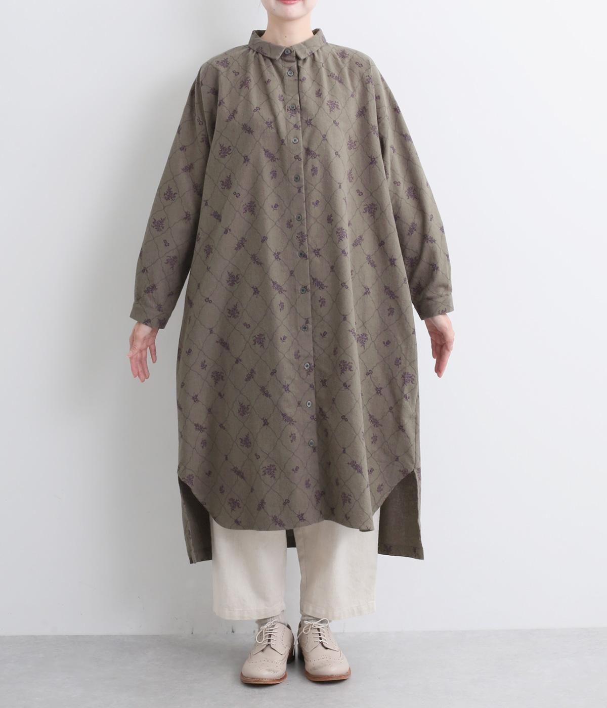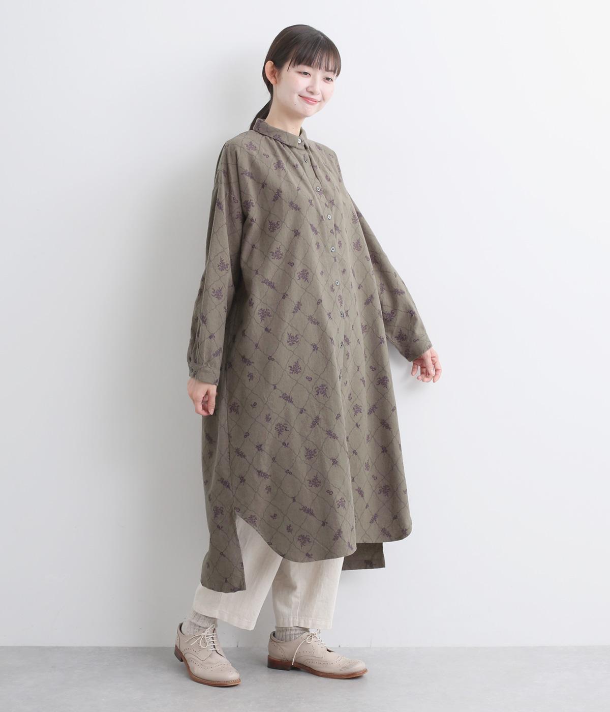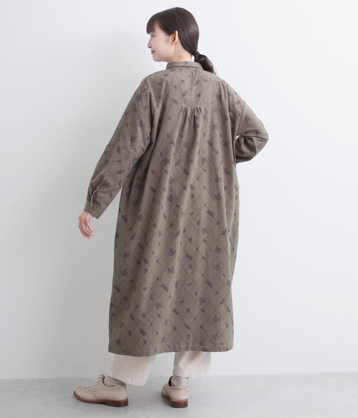 レトロな雰囲気の総柄プリントが落ち着いた表情のシャツワンピース。前後身頃や袖にギャザーをほどこし、ふんわりとしたシルエットが華やかさをプラスします。ゆったりした身幅でリラックスした着心地を叶え、レイヤードスタイルにもおすすめです。