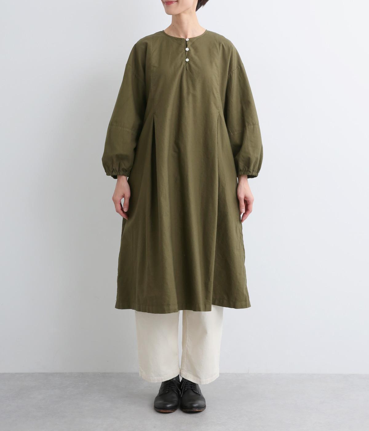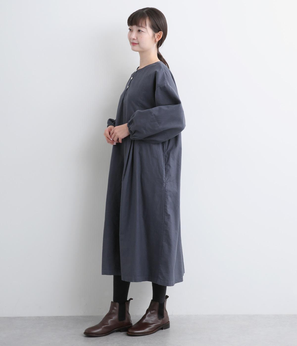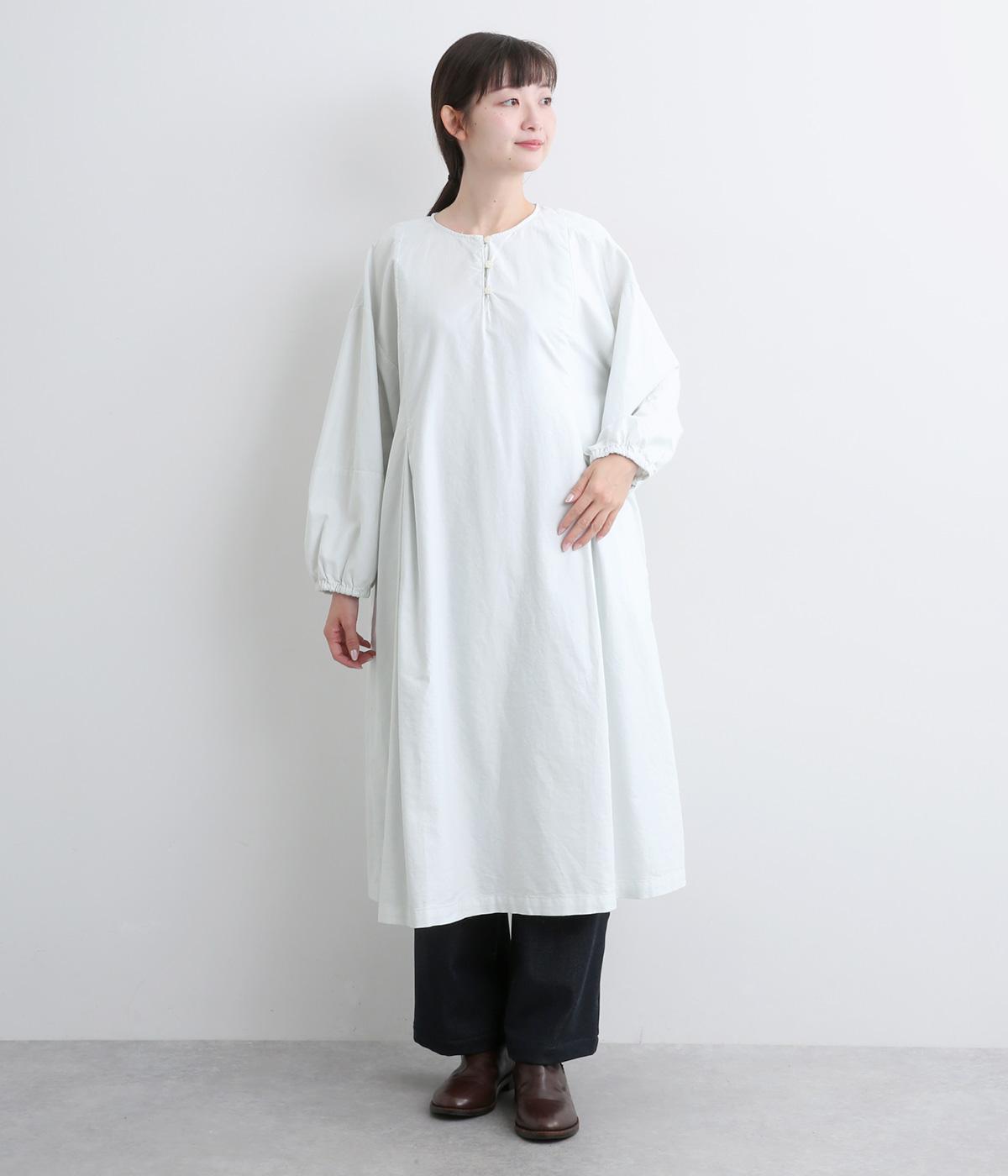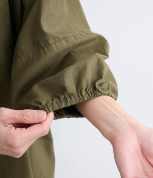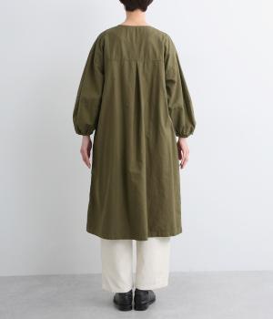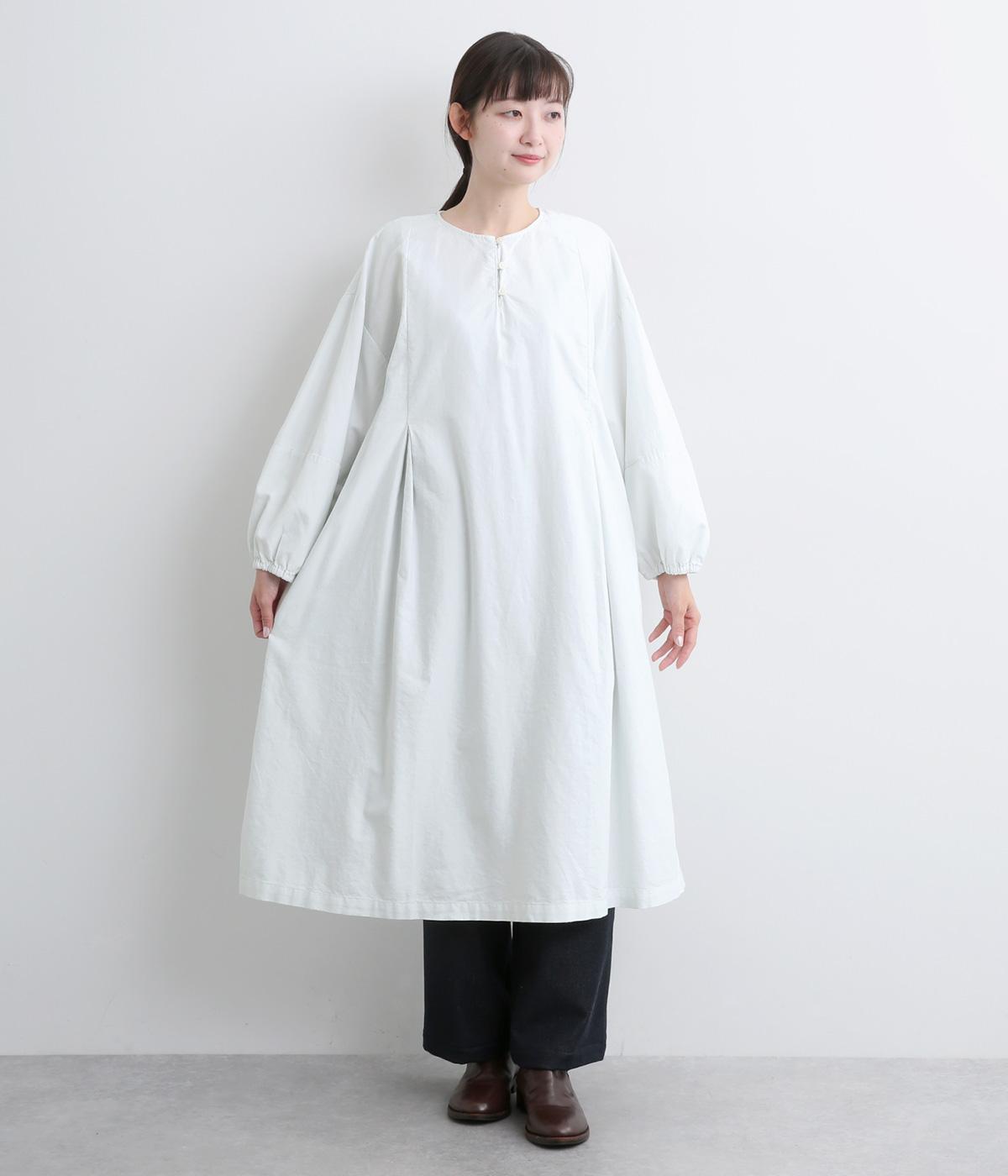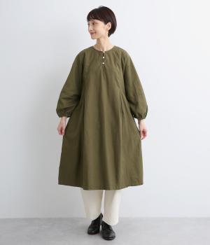 前後にタックをいれたフレアシルエットのワンピース。袖口にゴムを通して切り替えを施した、立体的なコクーン袖が女性らしさを惹きたてます。パンツやスカートとのレイヤードもお洒落にきまる、ふくらはぎが隠れるミモレ丈もグッドです。