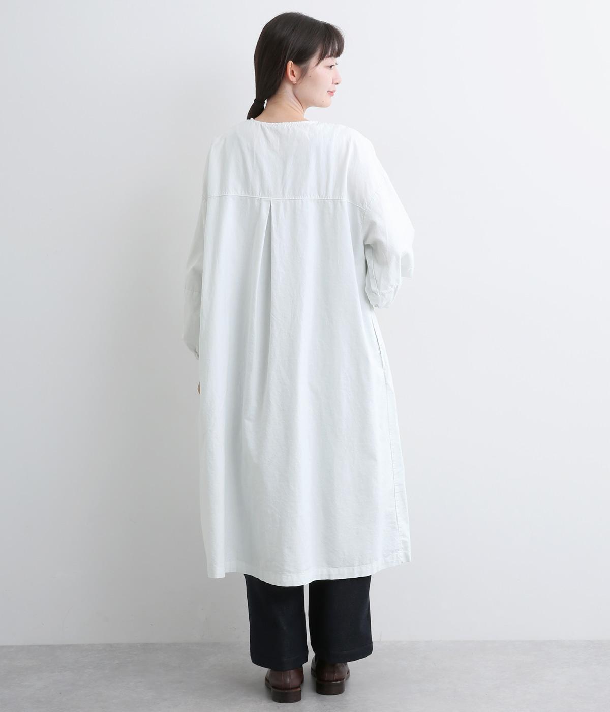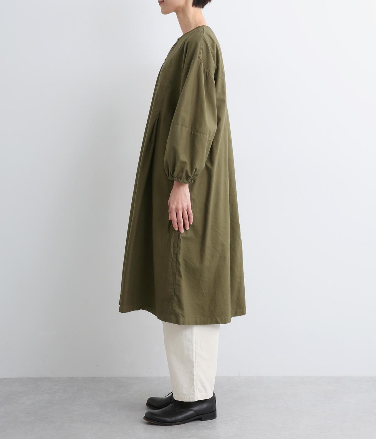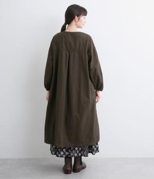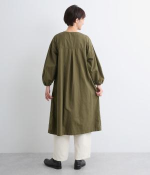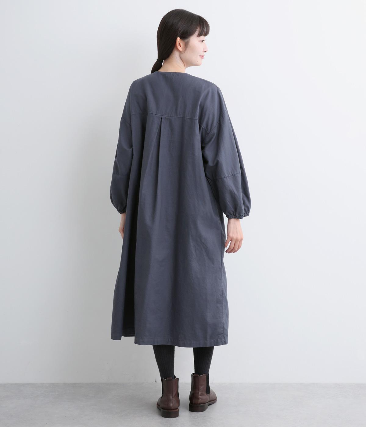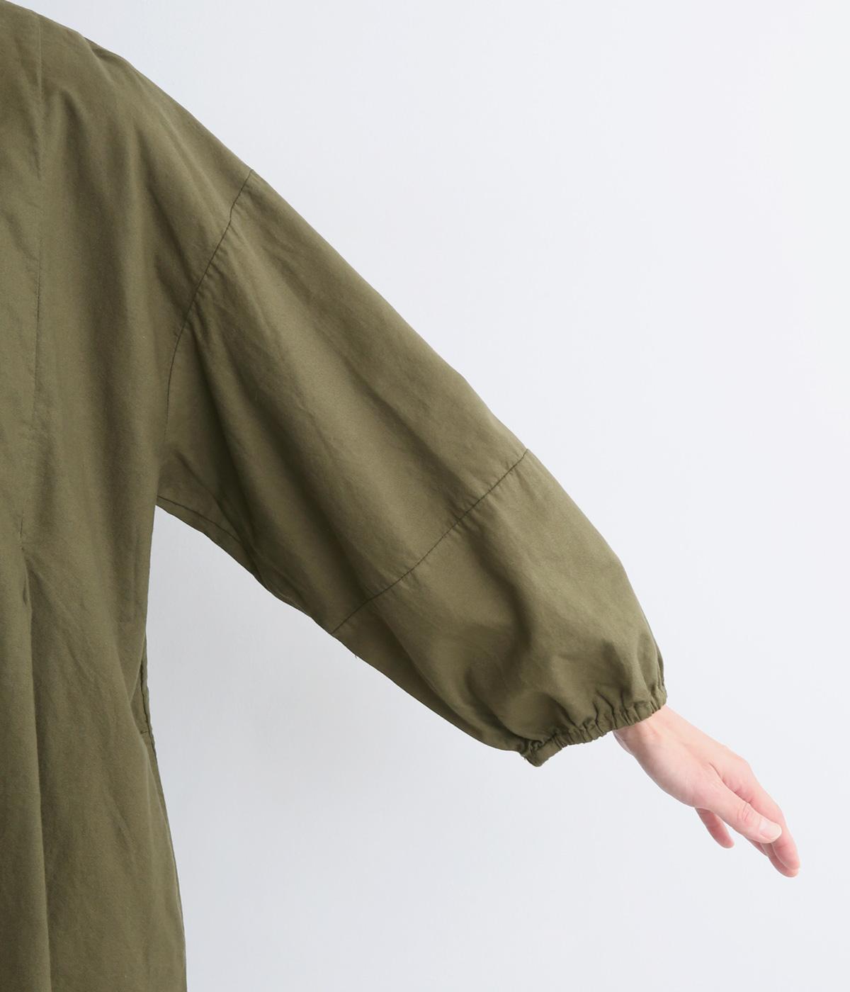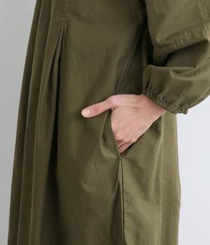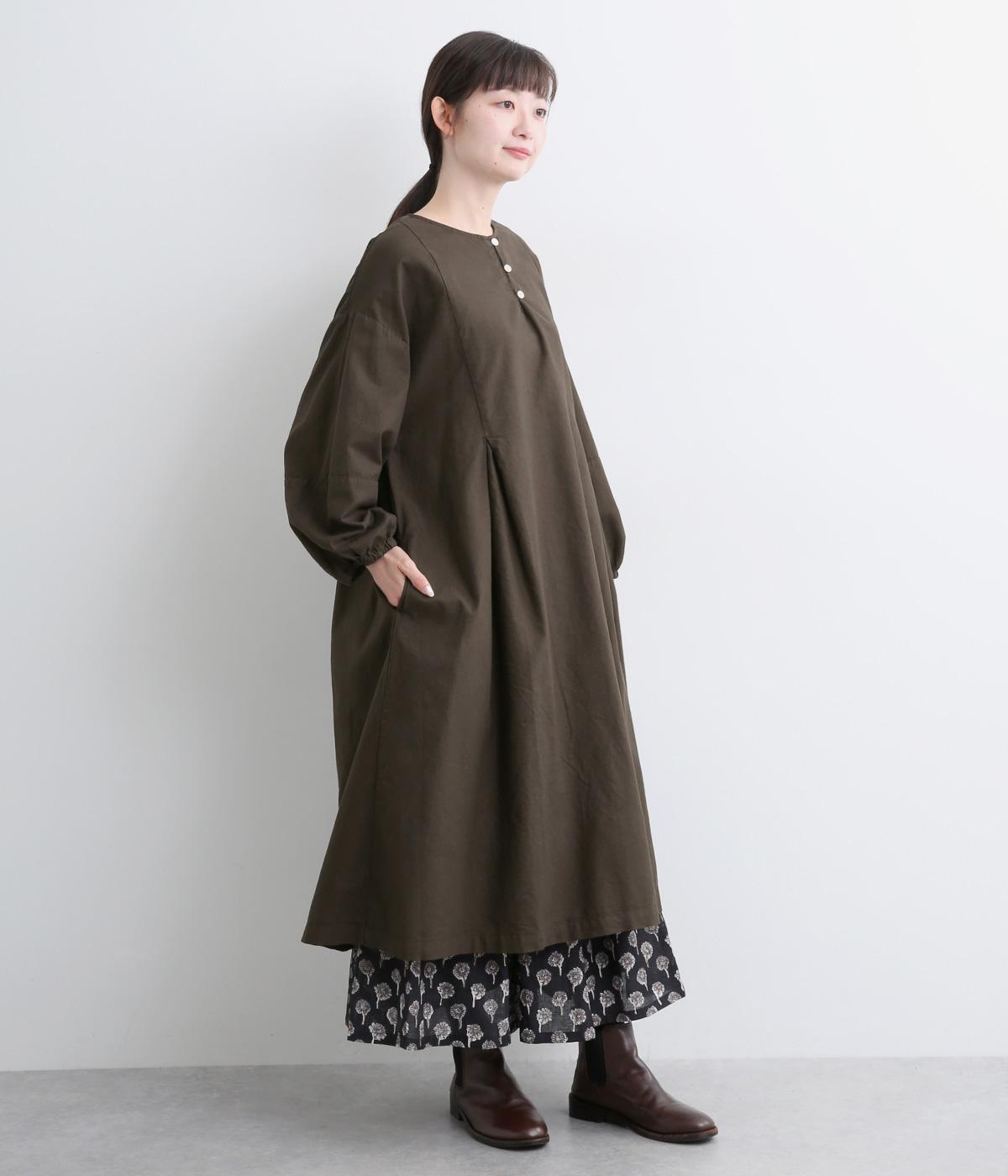 前後にタックをいれたフレアシルエットのワンピース。袖口にゴムを通して切り替えを施した、立体的なコクーン袖が女性らしさを惹きたてます。パンツやスカートとのレイヤードもお洒落にきまる、ふくらはぎが隠れるミモレ丈もグッドです。