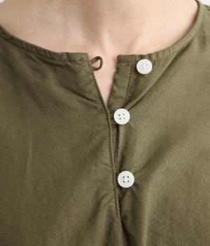ロングシーズン活躍するやや薄手のコットンオックス生地を使用。日本の職人さんによる製品染めで仕上げられており、独特な柔らかさと自然な風合いをたのしめます。