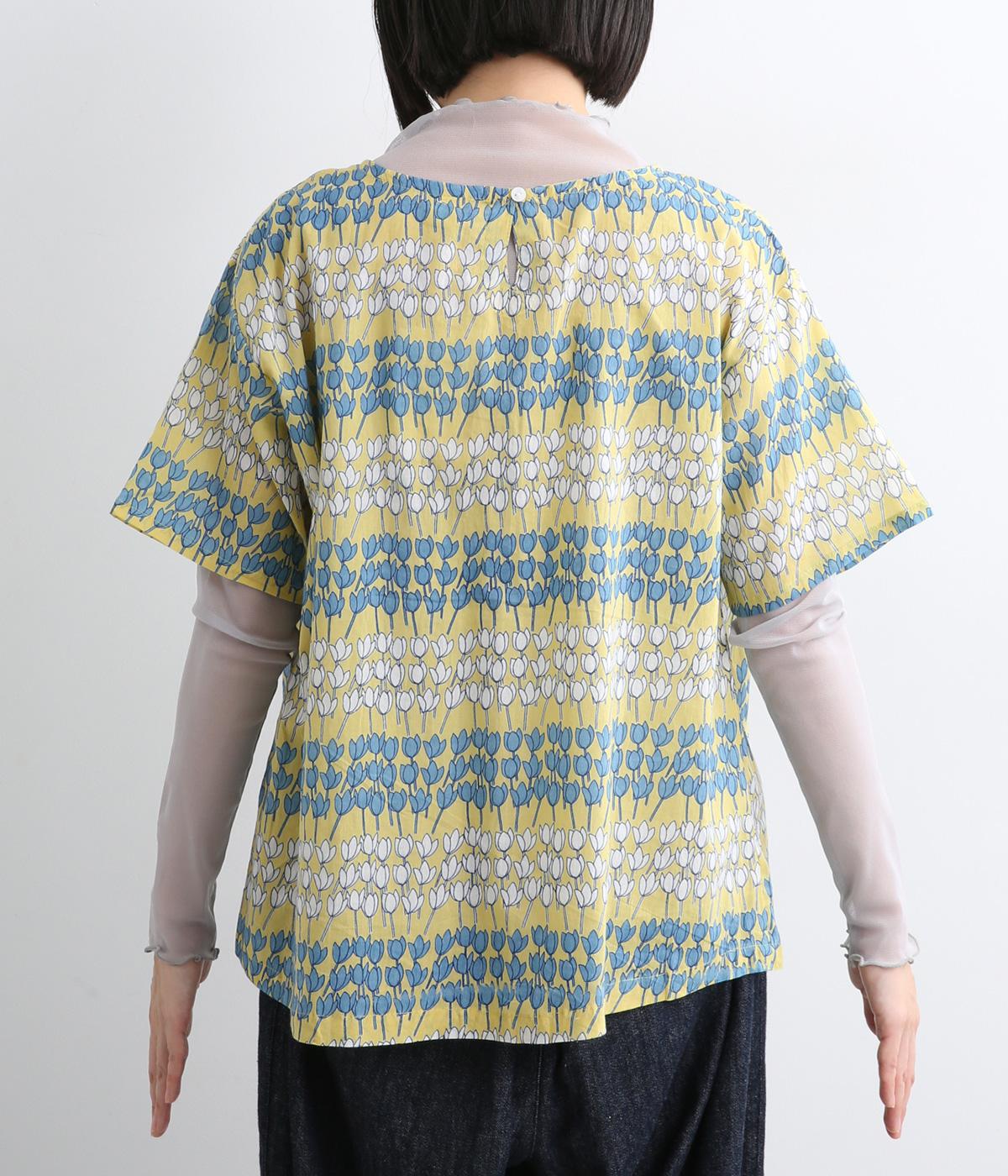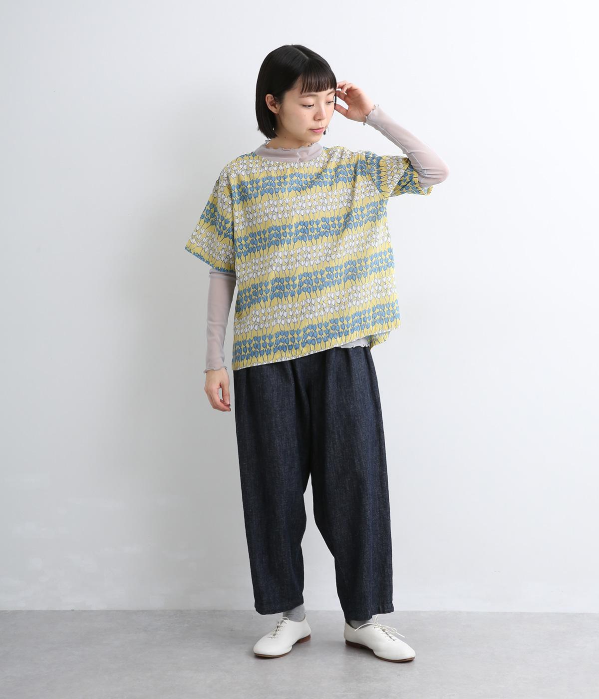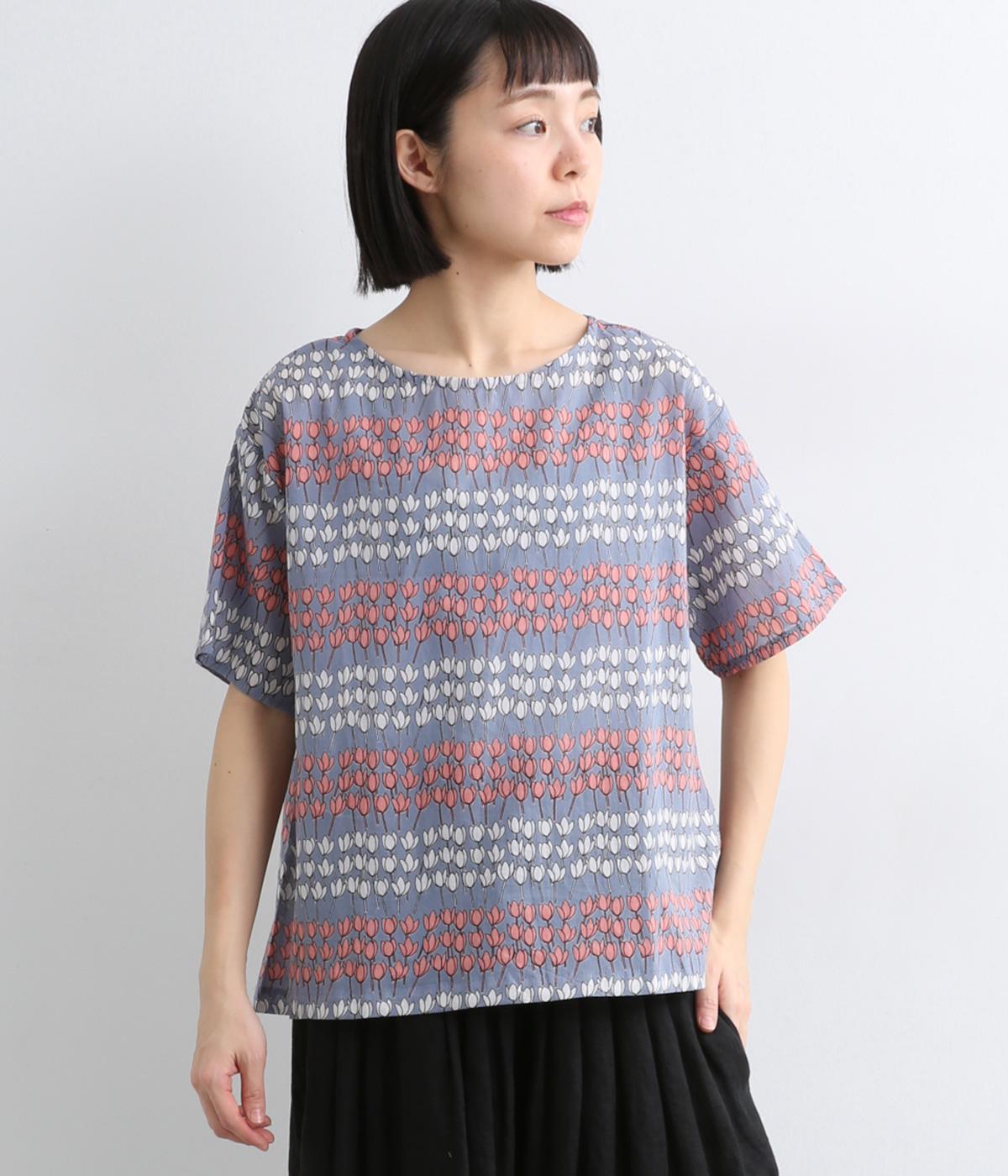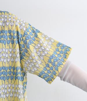 チューリップがところ狭しと並んだ総柄プルオーバー。配色によってボーダーのように見え、可愛らしさとカジュアル感のバランスが◎。ベーシックなボックス型で一枚着もレイヤードもおすすめ。