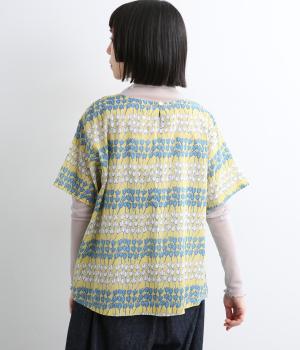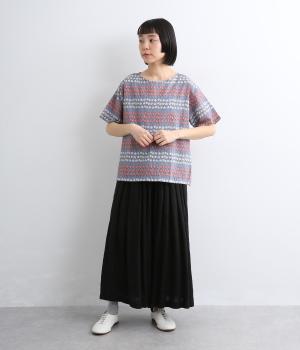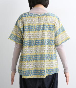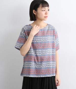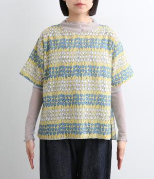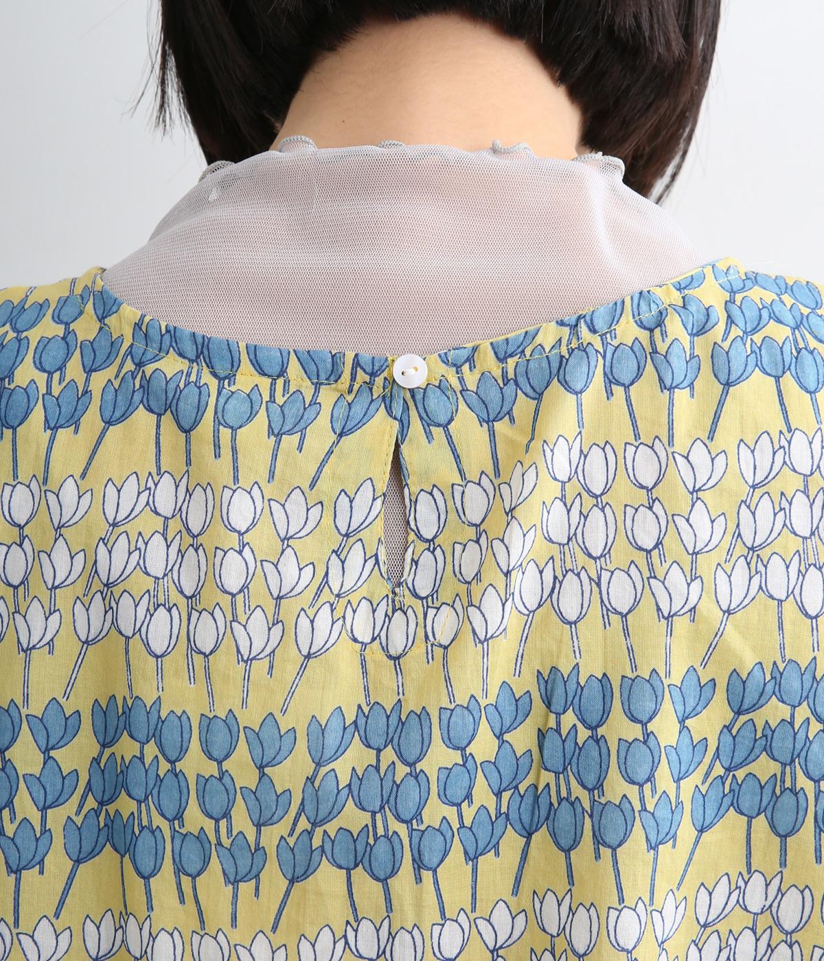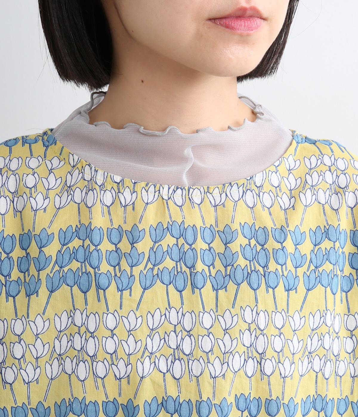チューリップがところ狭しと並んだ総柄プルオーバー。配色によってボーダーのように見え、可愛らしさとカジュアル感のバランスが◎。ベーシックなボックス型で一枚着もレイヤードもおすすめ。