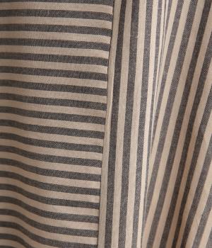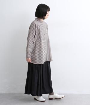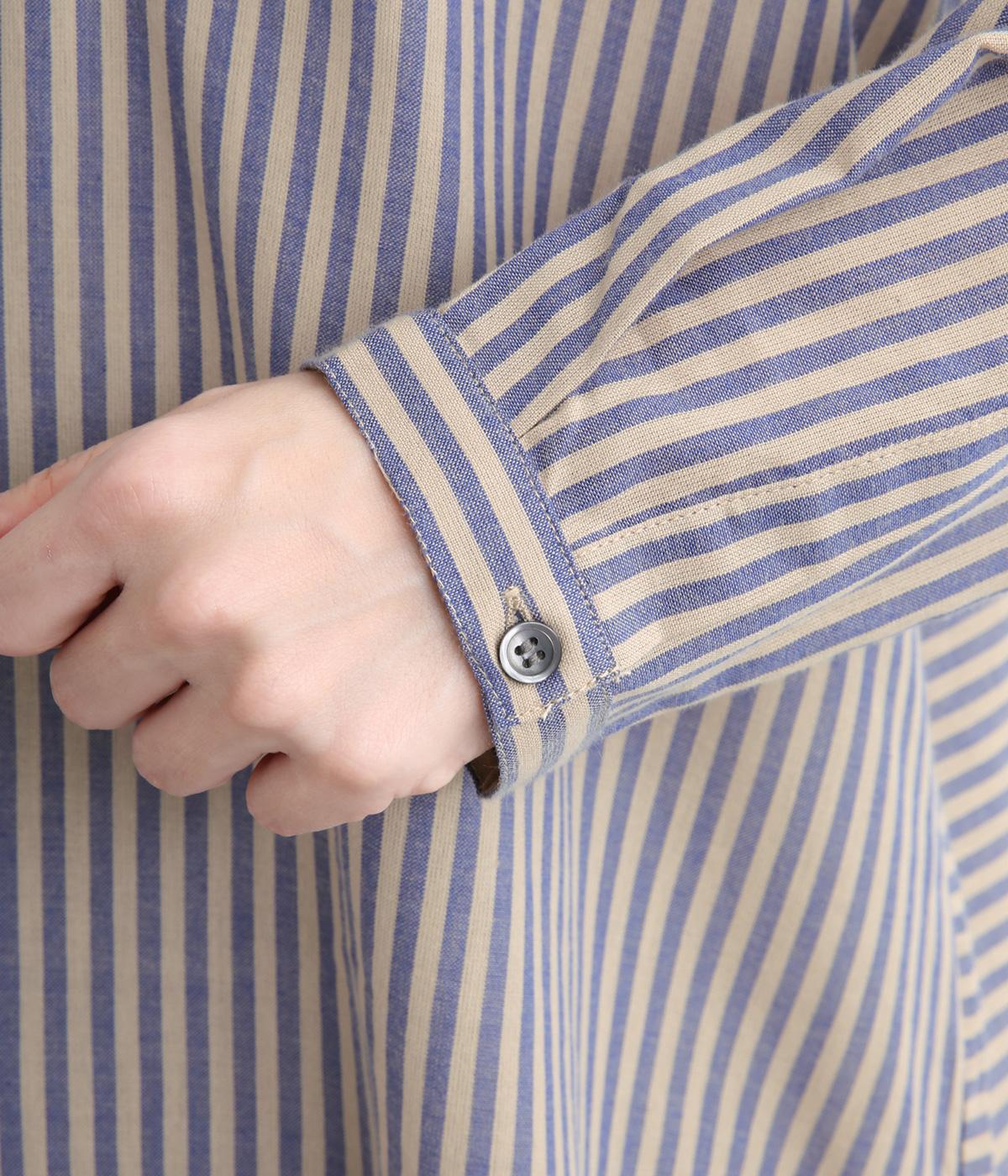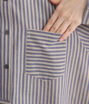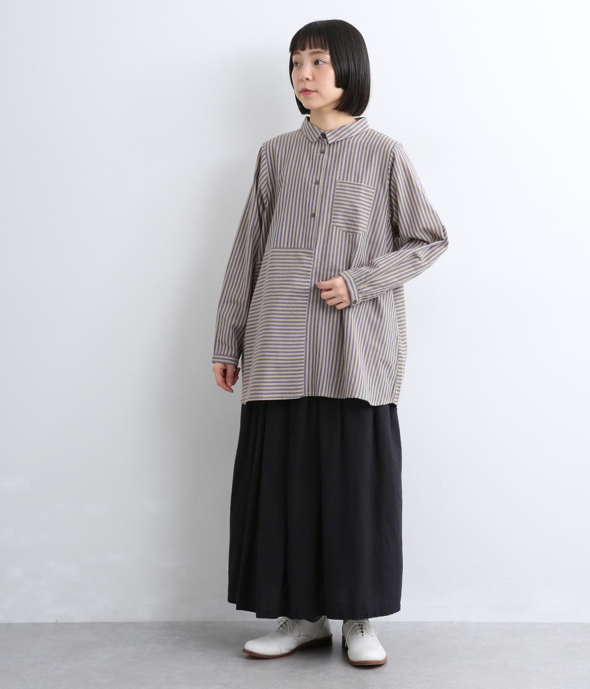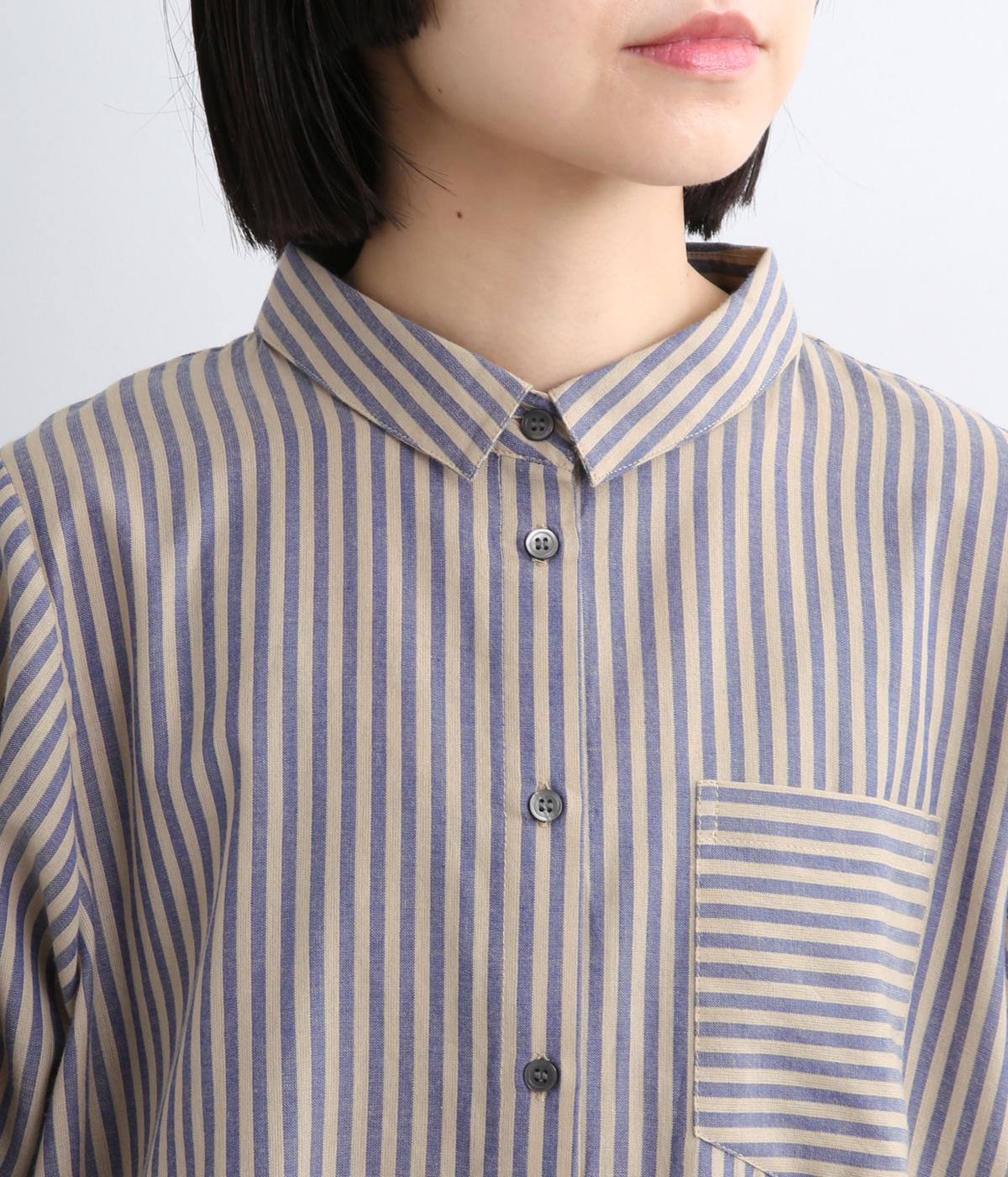 手織り風のストライプ柄がナチュラルな表情を引き立てます。ストライプの向きに変化をつけ、メリハリのある印象に。襟付きのヘンリーネックがさりげない個性を添え、ひとひねり効いた大人のカジュアルアイテムに仕上げました。