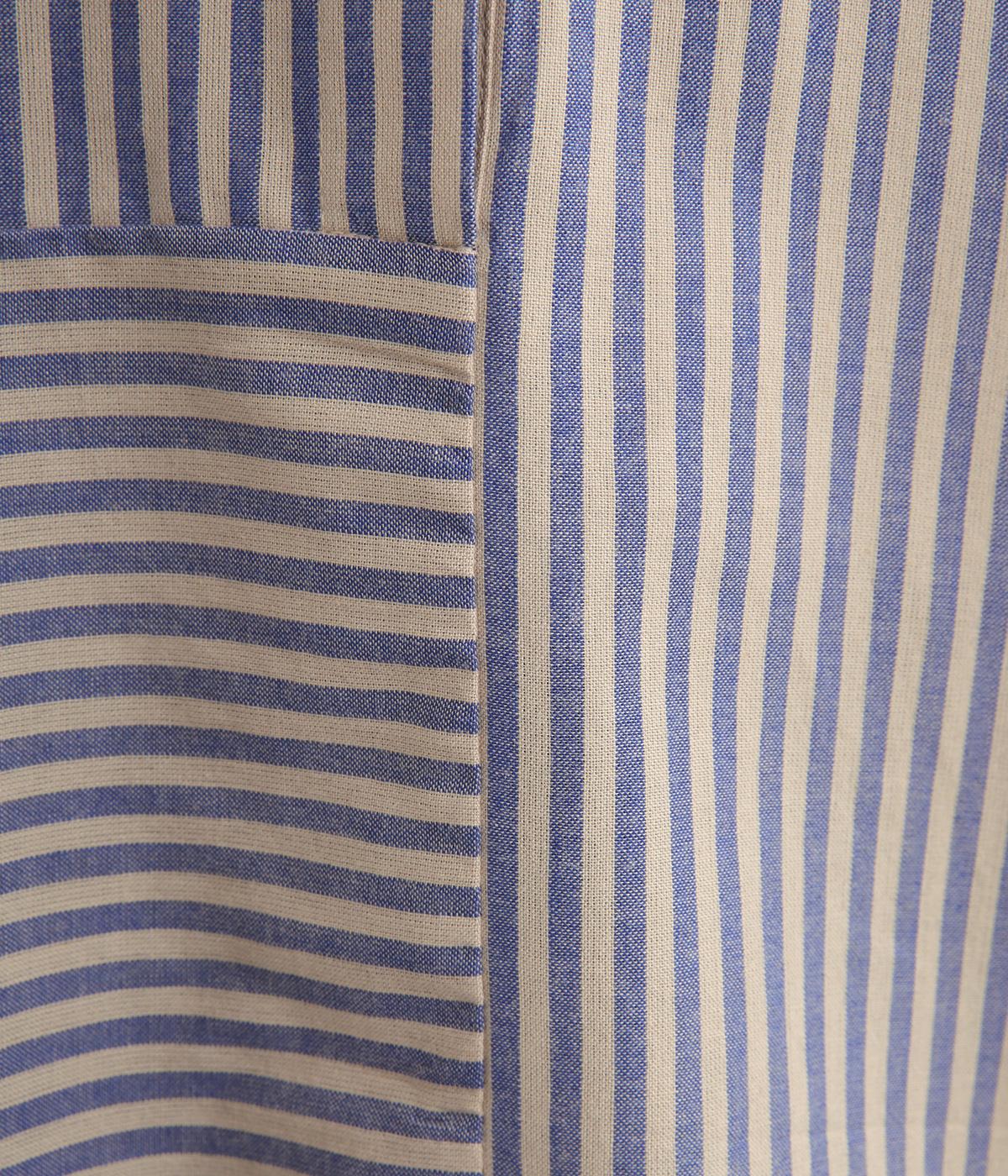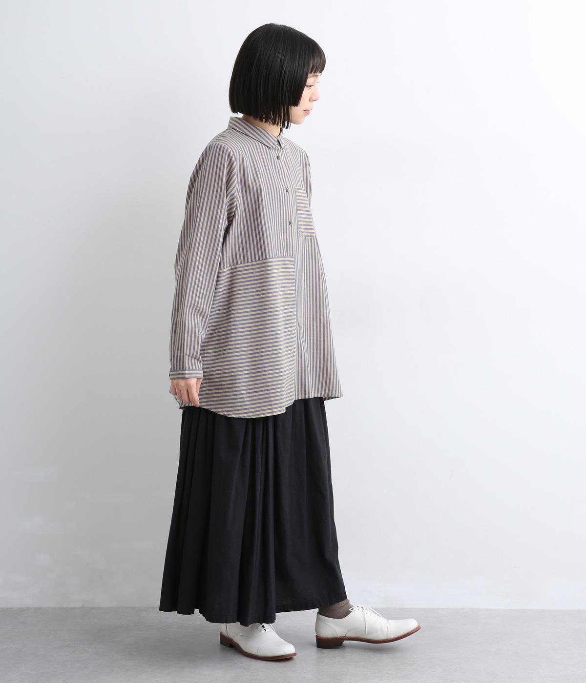 しなやかなハリ感のあるコットン生地を使用しています。さらりとして肌ばなれよく、心地よい着心地です。ハンドメイドの温かみを感じるナチュラルな素材感です。