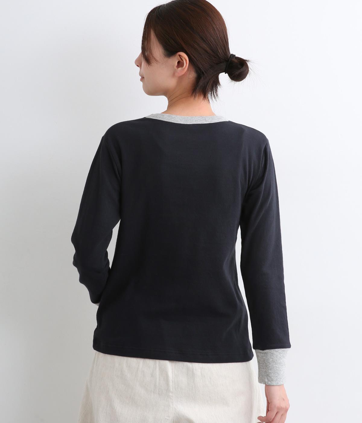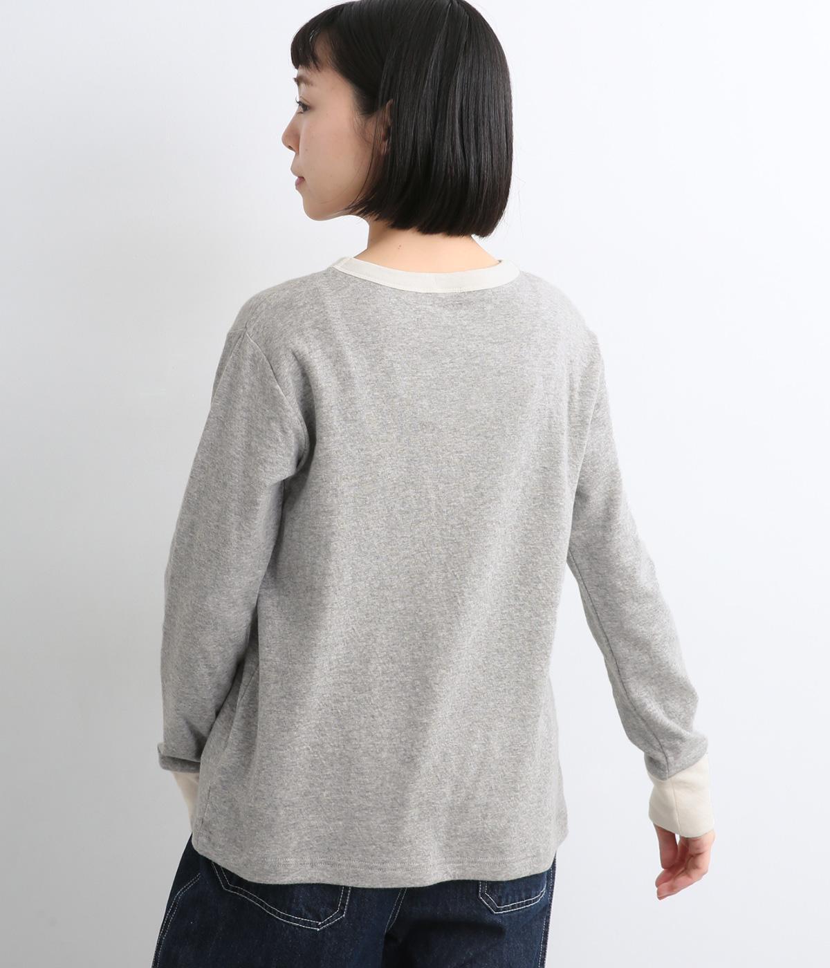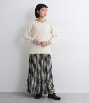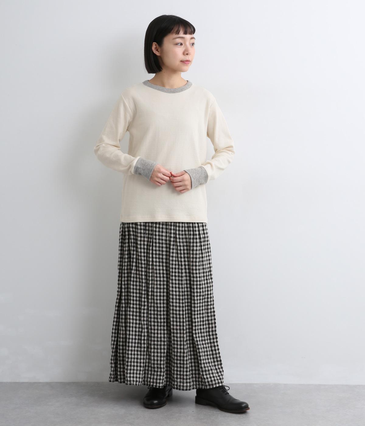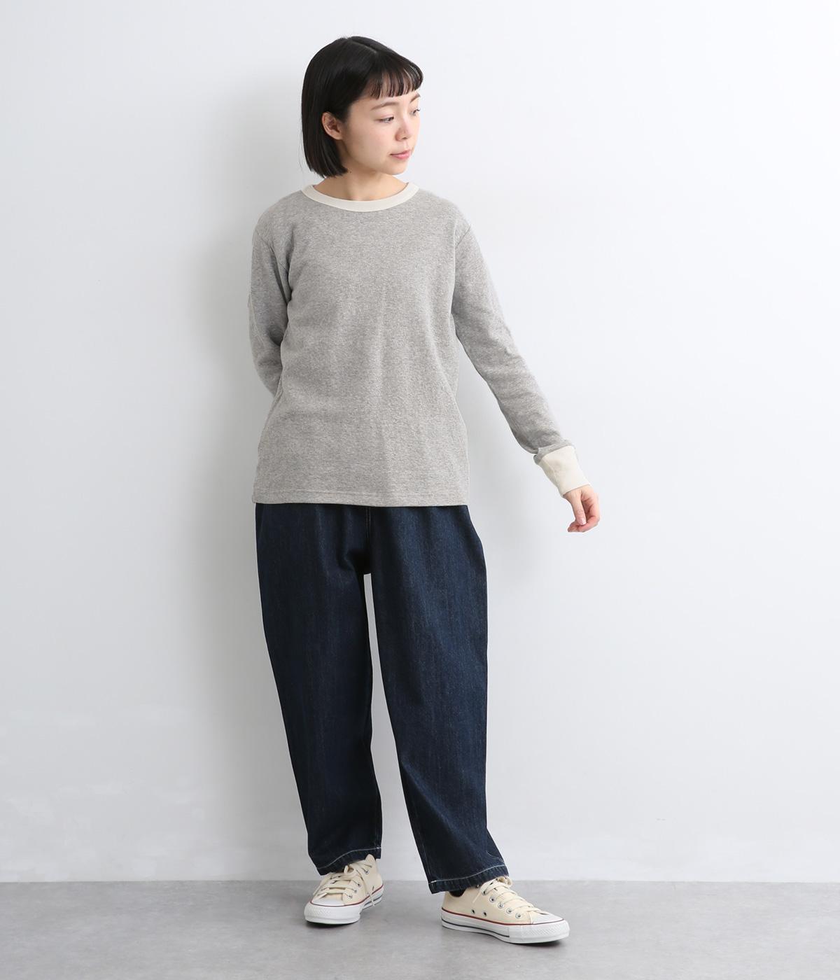 襟ぐりと袖口のバイカラーがカジュアルアイテムながらも洗練された印象を与えます。ゆるすぎずフィットしすぎない絶妙なシルエットもポイントで、一枚着でも手抜きに見えずデイリースタイルの定番になりそう。