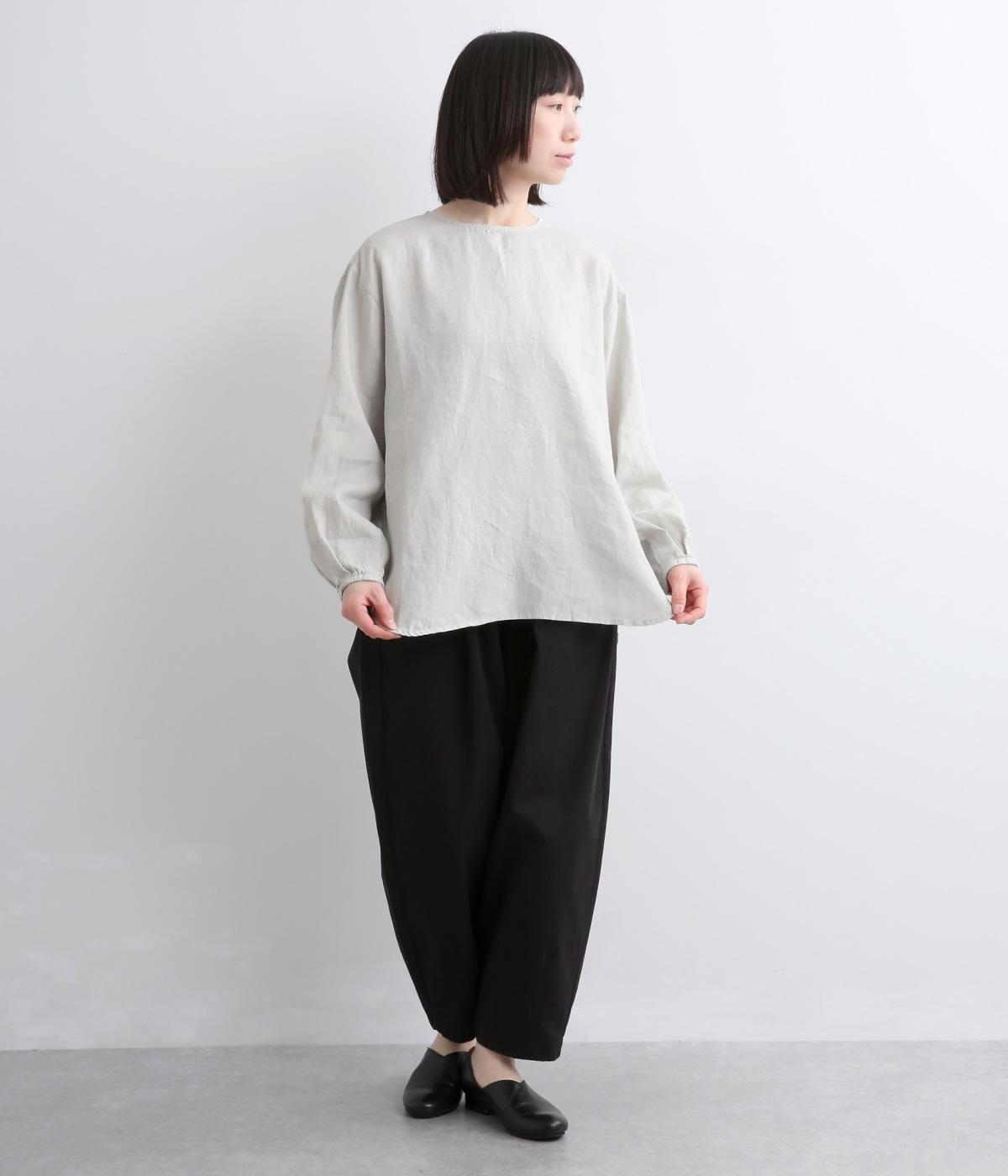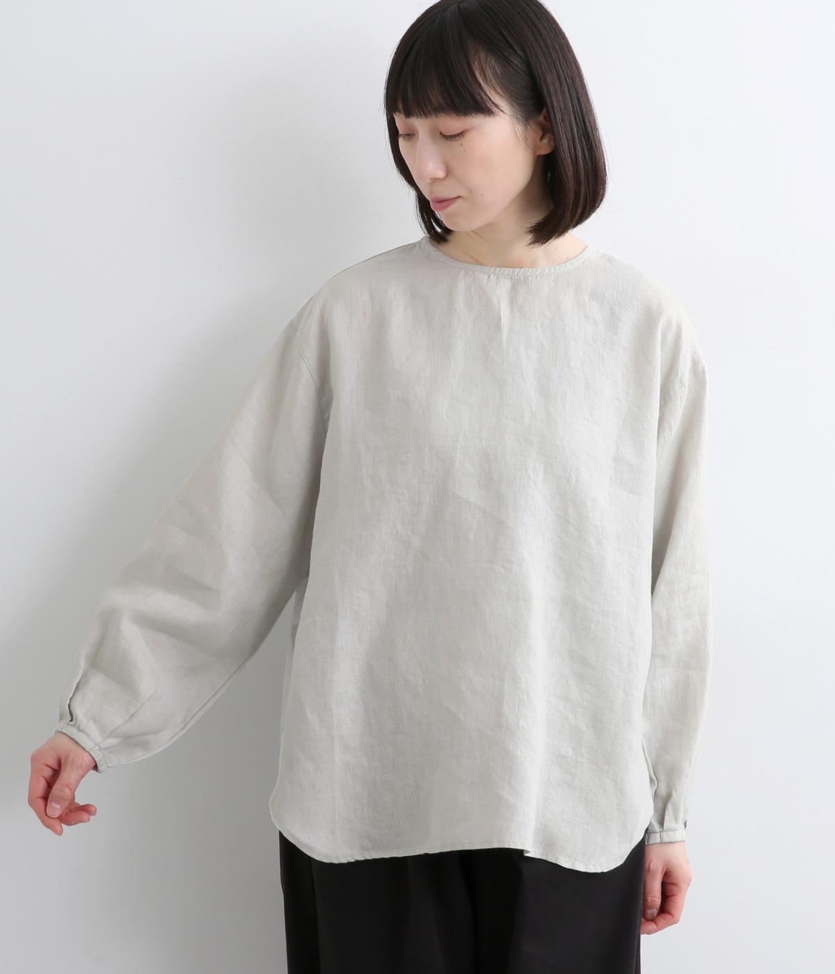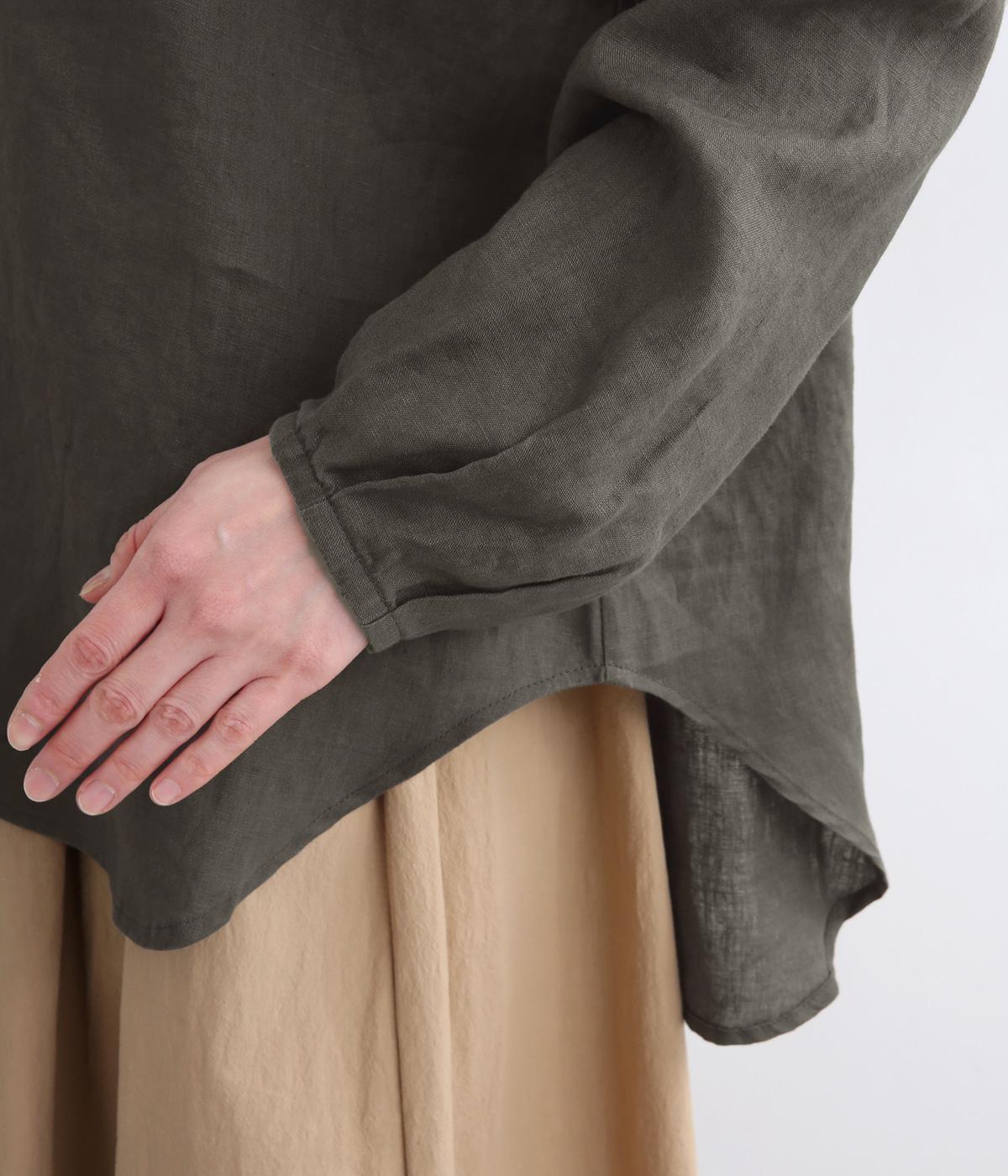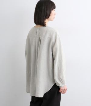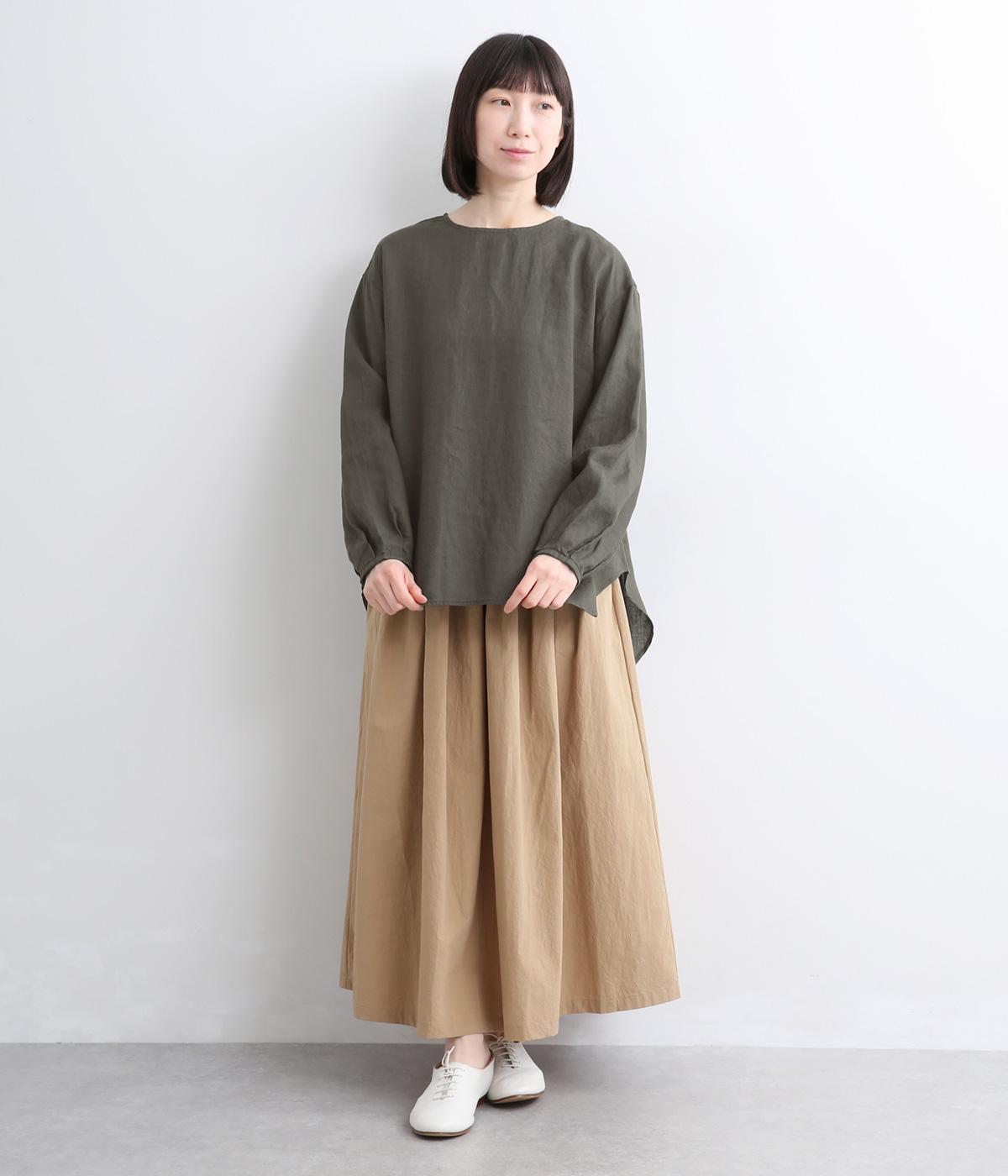 後ろタックでゆったりとしたフレアシルエットを描くプルオーバー。リネンならではの質感が自然なドレープを描き、ナチュラルな中にも優雅な印象が漂います。トップスアウトもお洒落にきまる着丈に前後差をつけたラウンドヘム仕様です。
