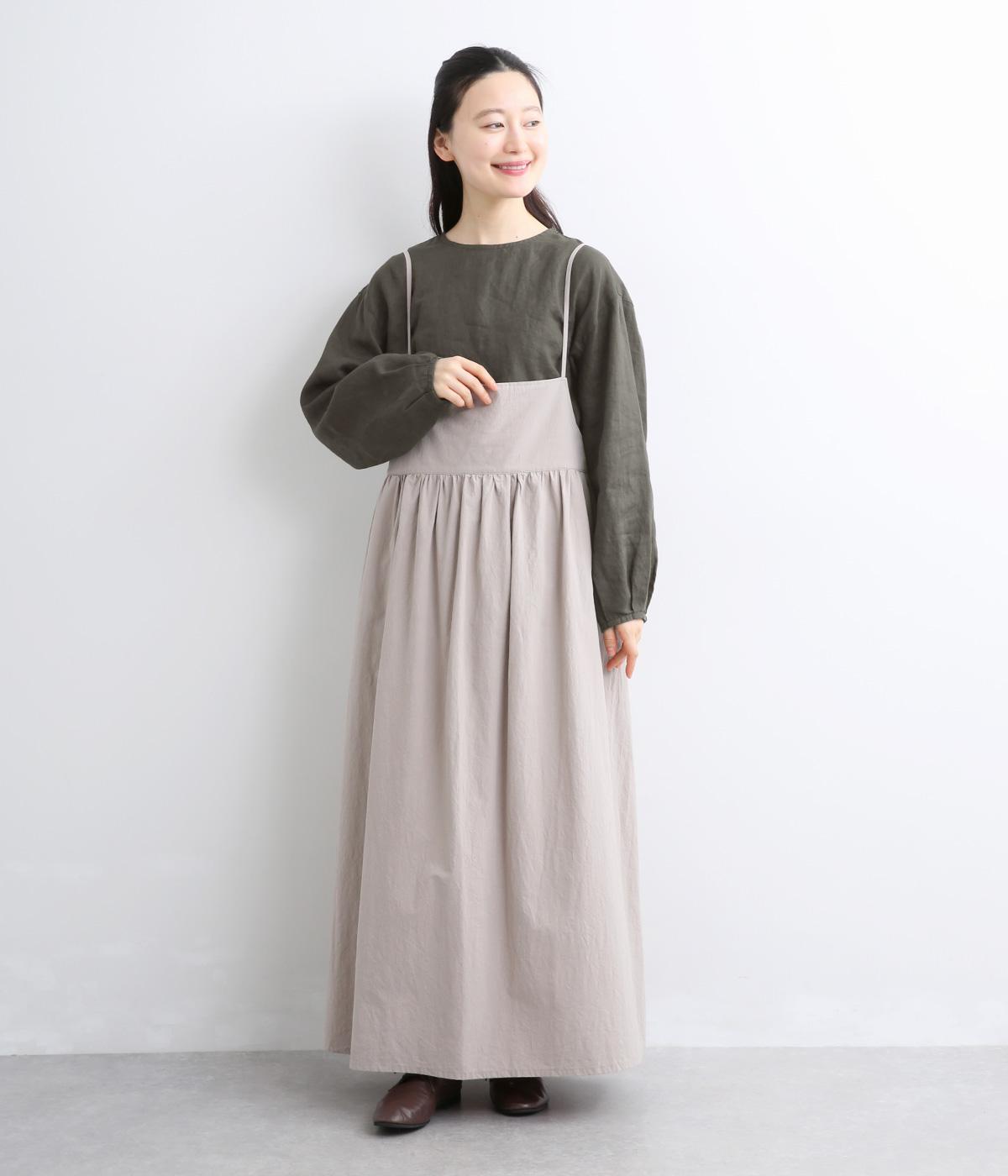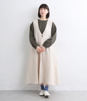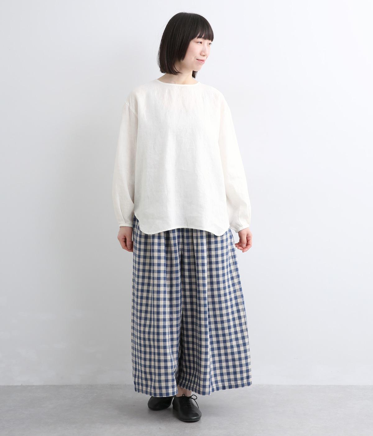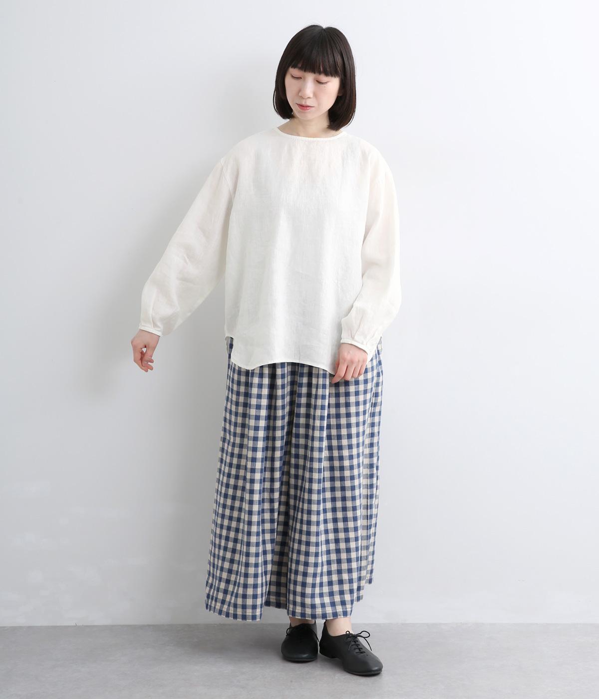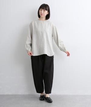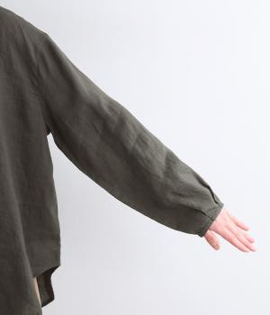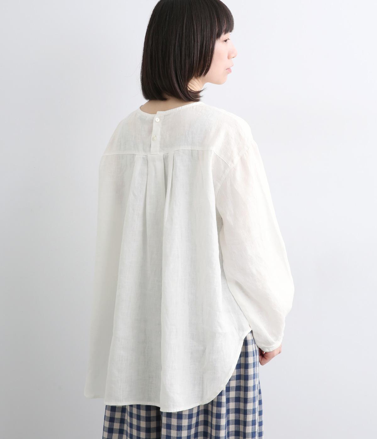 後ろタックでゆったりとしたフレアシルエットを描くプルオーバー。リネンならではの質感が自然なドレープを描き、ナチュラルな中にも優雅な印象が漂います。トップスアウトもお洒落にきまる着丈に前後差をつけたラウンドヘム仕様です。