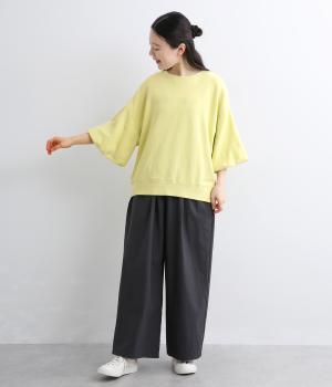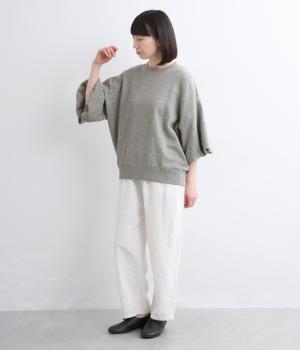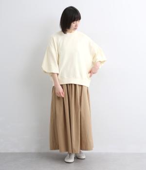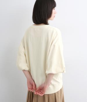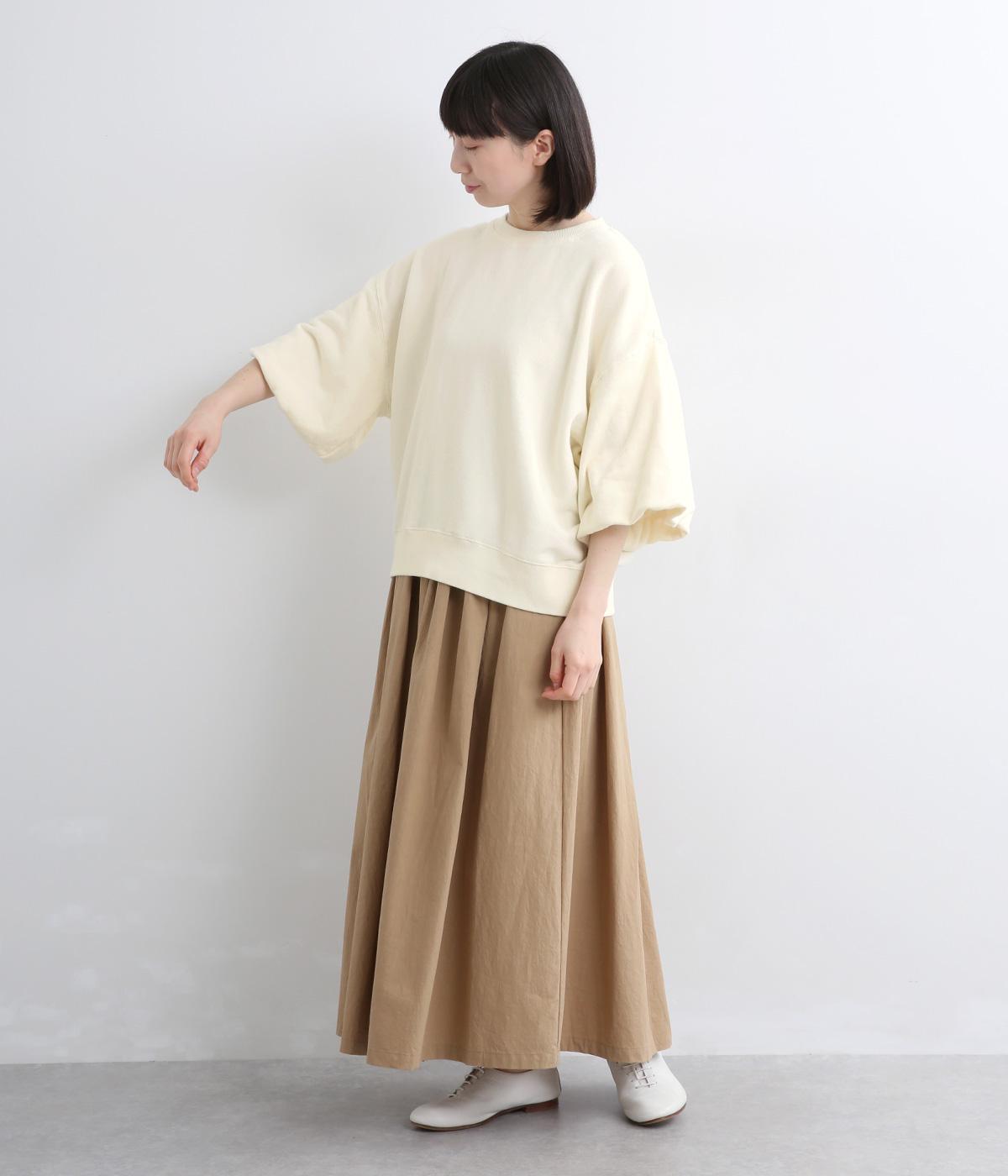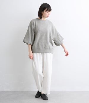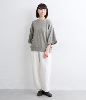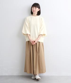 裏布をつけてバルーンシルエットに仕立てた袖デザインがアイキャッチになった一枚。ゆとりのあるシルエットでスウェットらしいリラックスムードも健在。カジュアルすぎないディテールで大人の女性のまいにちに寄り添います。