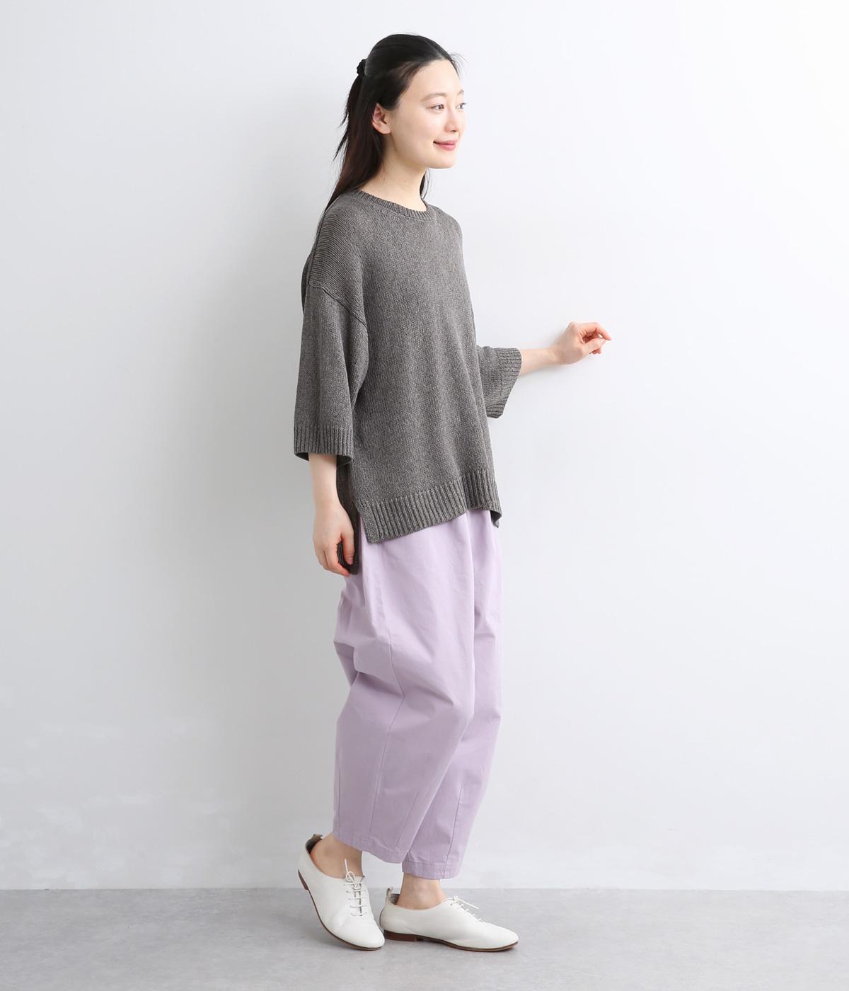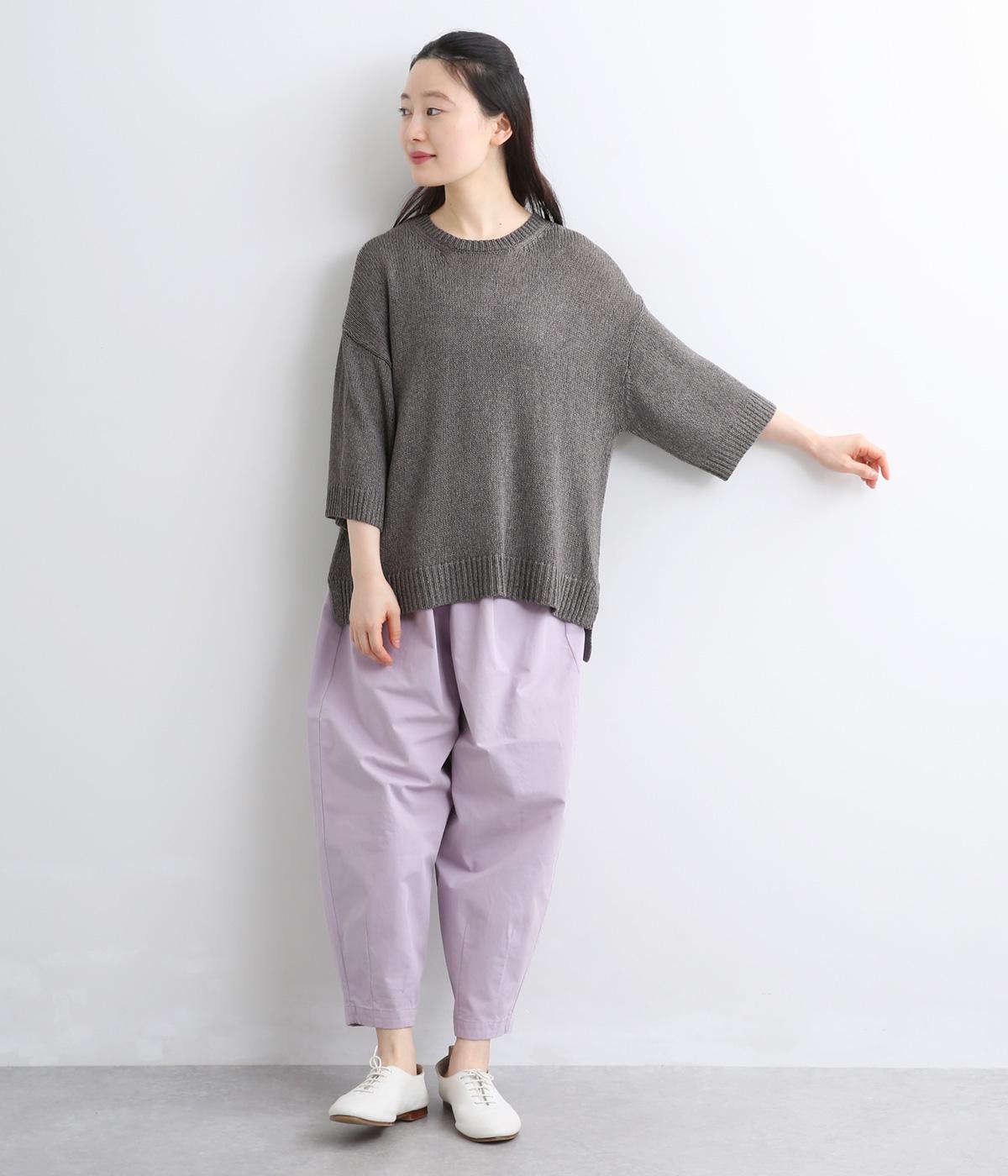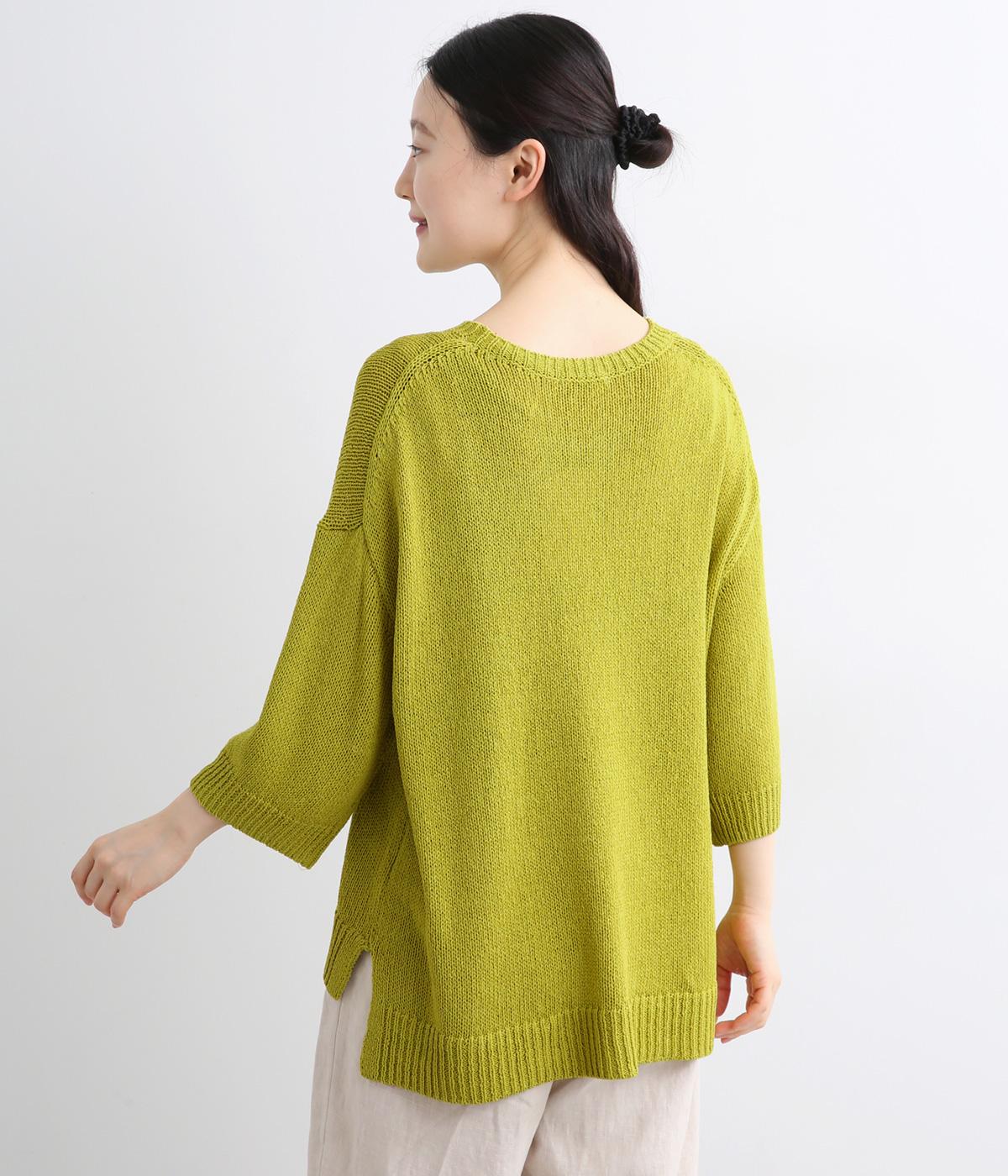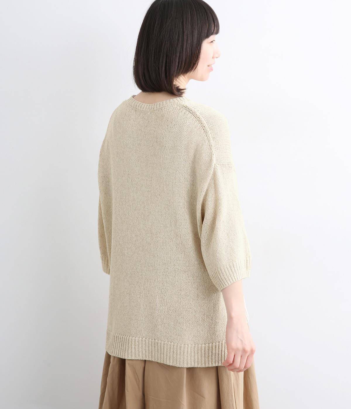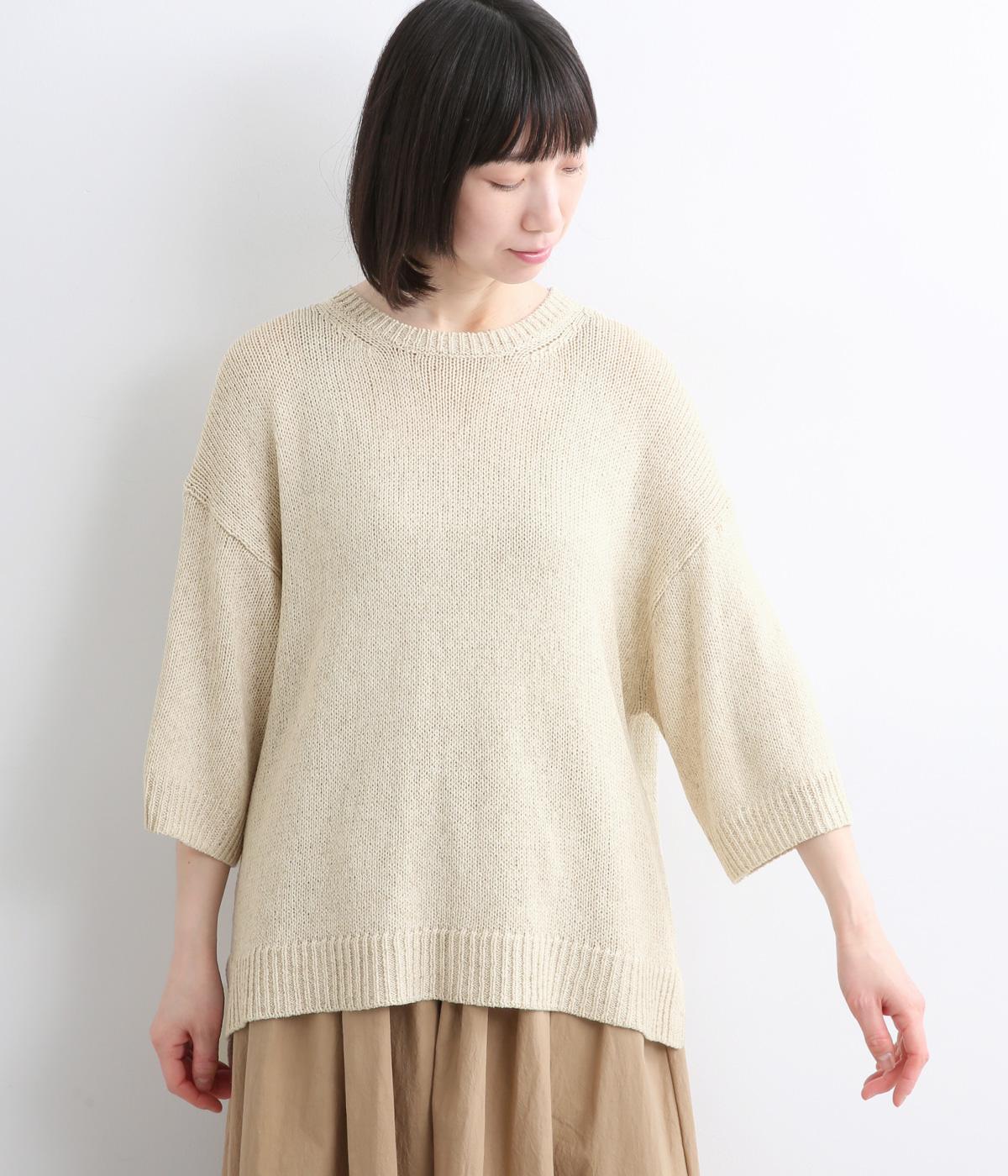 ほんのり透けるざっくりと編んだ、気負いのないこなれ感が魅力の一枚。肩のラインをやわらかく見せるドロップショルダーに、スリットを入れてゆったりさせた身頃が着心地の良さを運びます。ひじが隠れる七分袖でロングシーズン活躍。