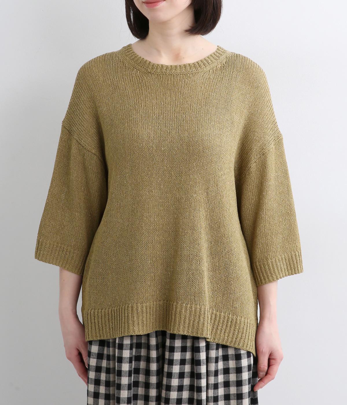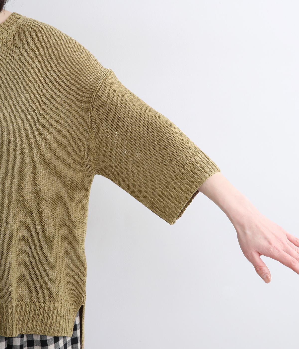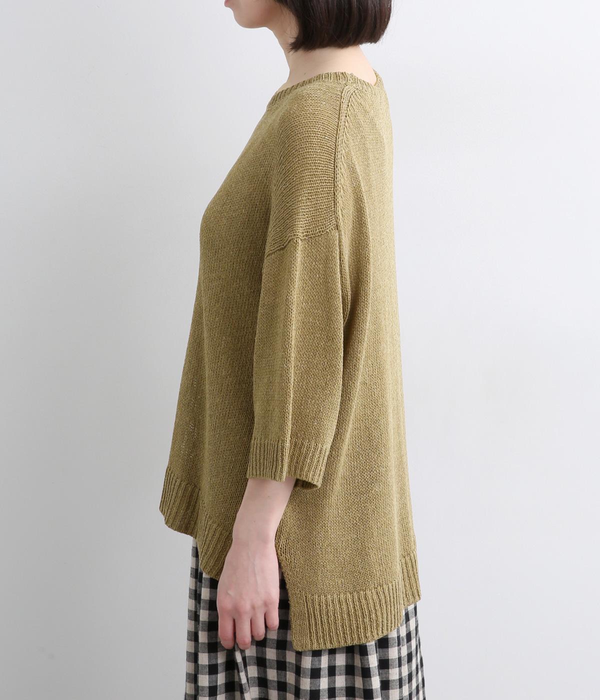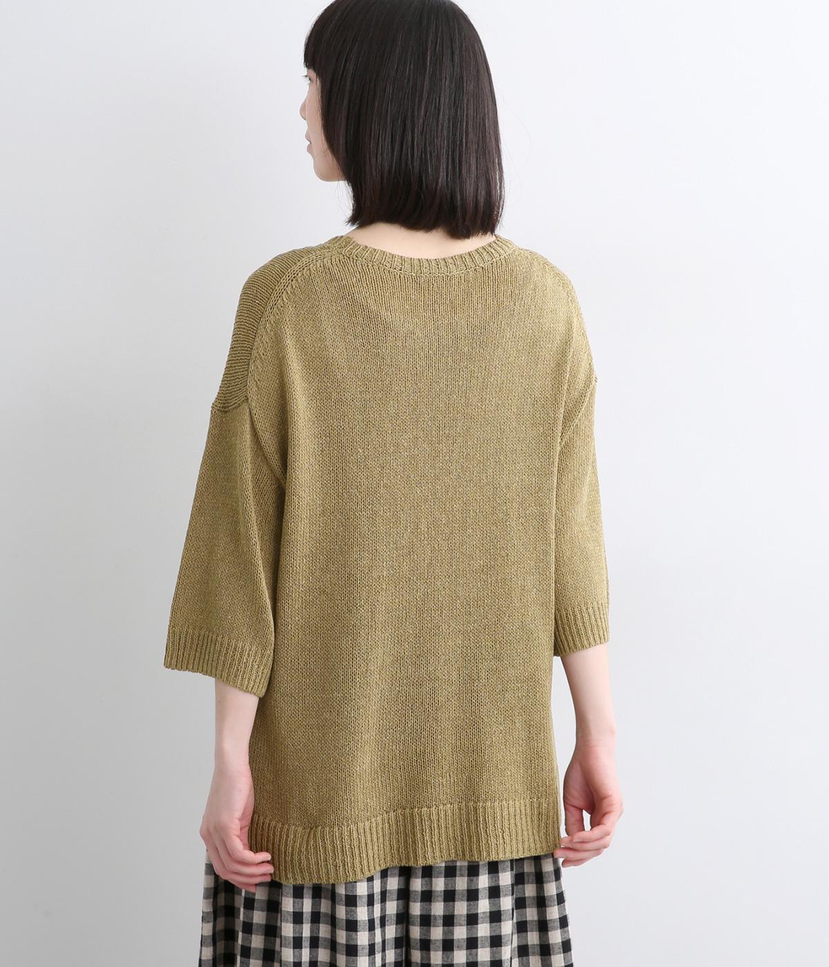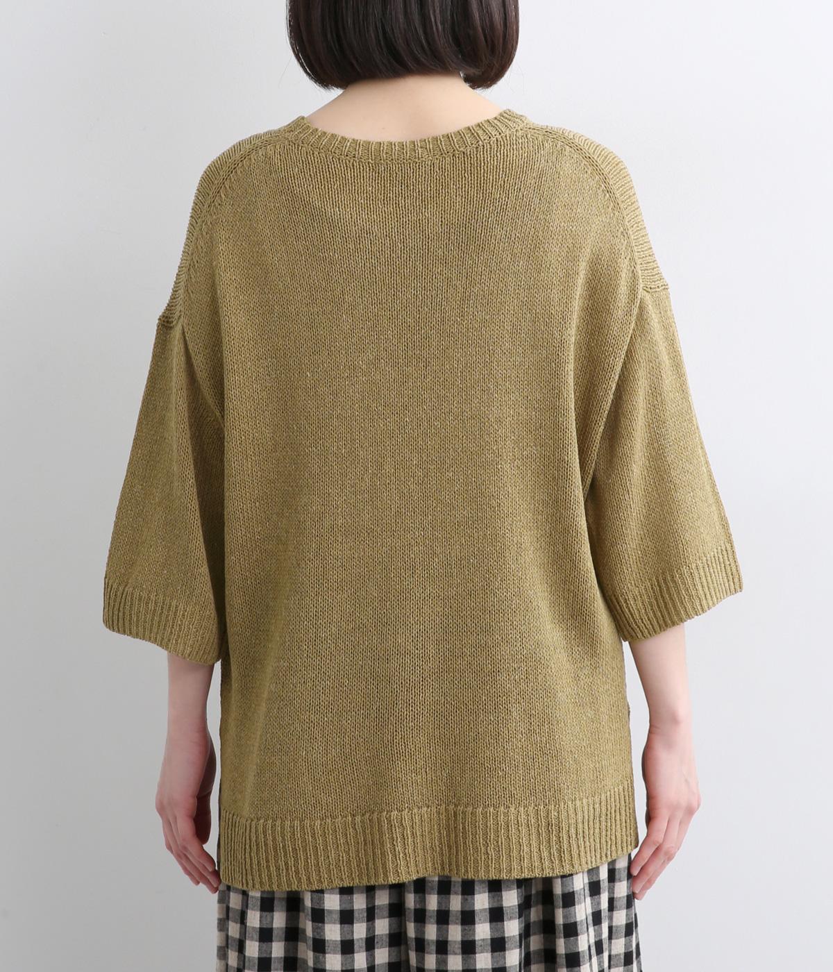 ほんのり透けるざっくりと編んだ、気負いのないこなれ感が魅力の一枚。肩のラインをやわらかく見せるドロップショルダーに、スリットを入れてゆったりさせた身頃が着心地の良さを運びます。ひじが隠れる七分袖でロングシーズン活躍。