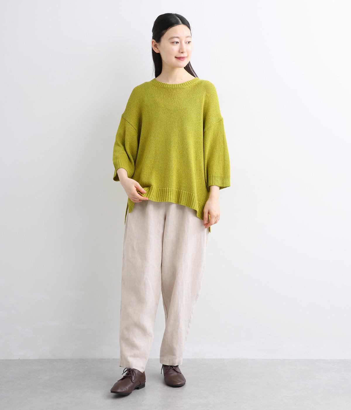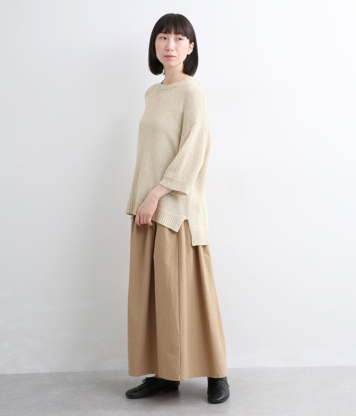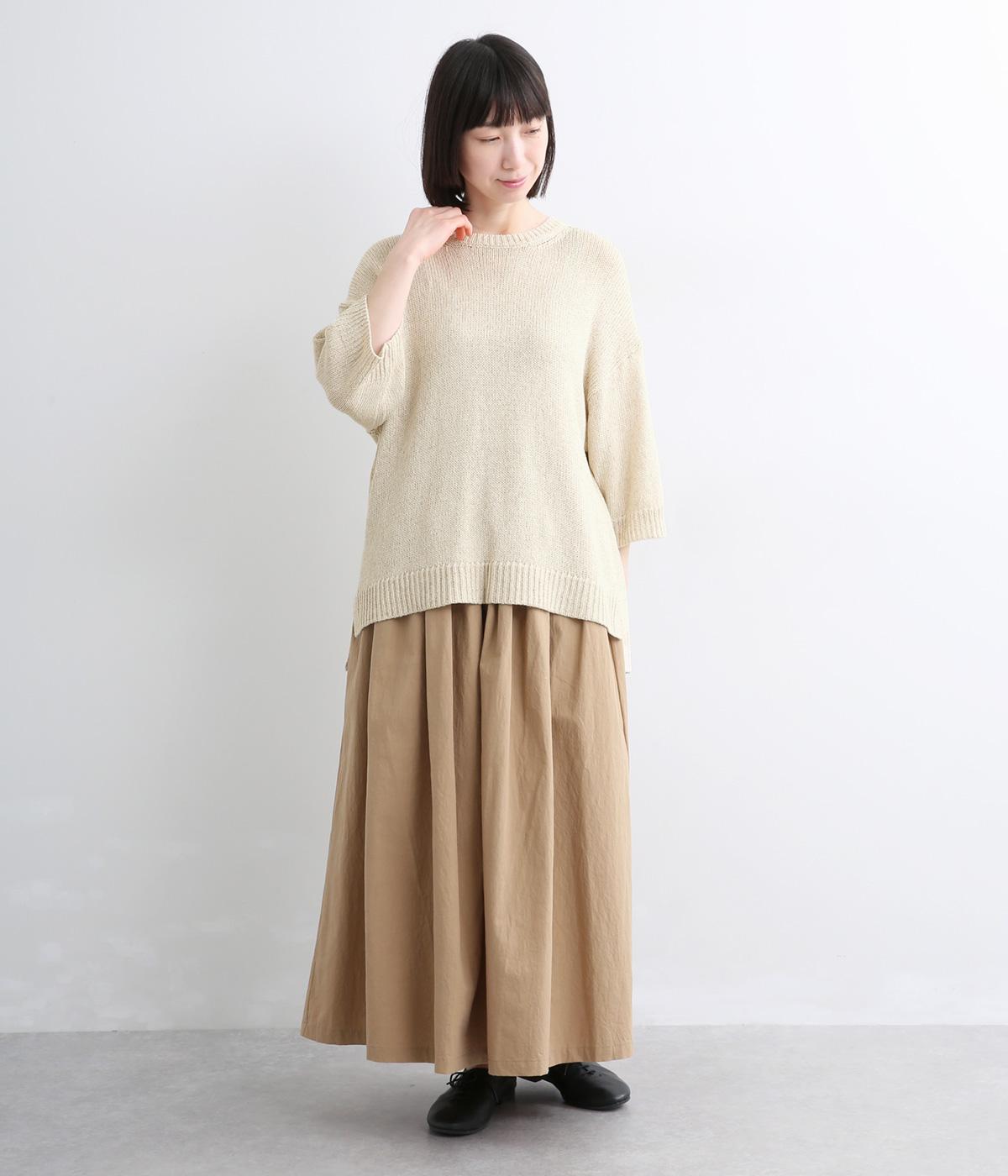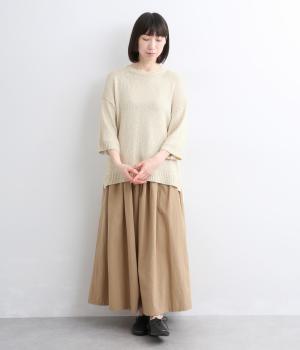 リネンやレーヨンをミックスさせて雰囲気よく編み上げた混紡ニットを採用。アクリルをベースにしているのでさらりとした肌触りで軽やかに仕上がっています。