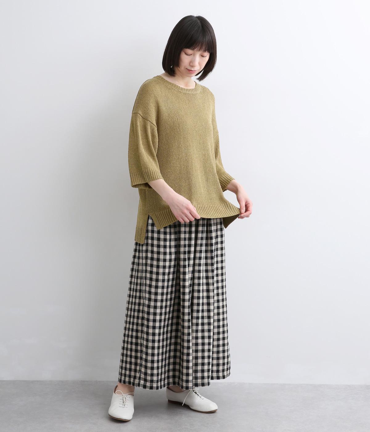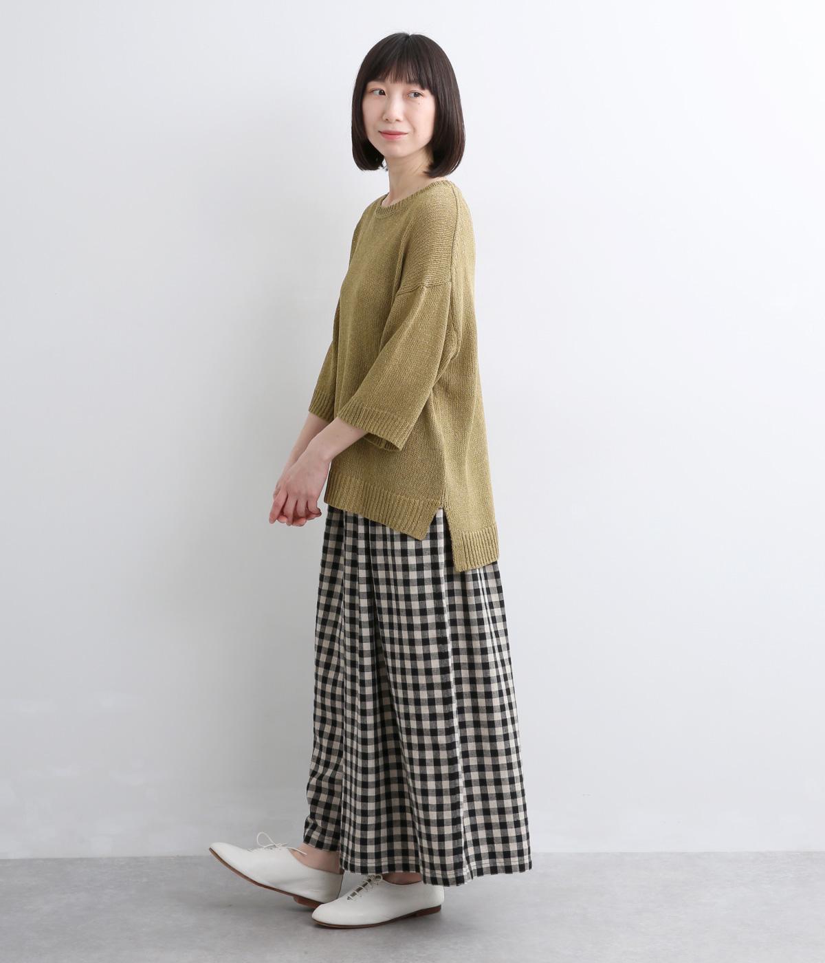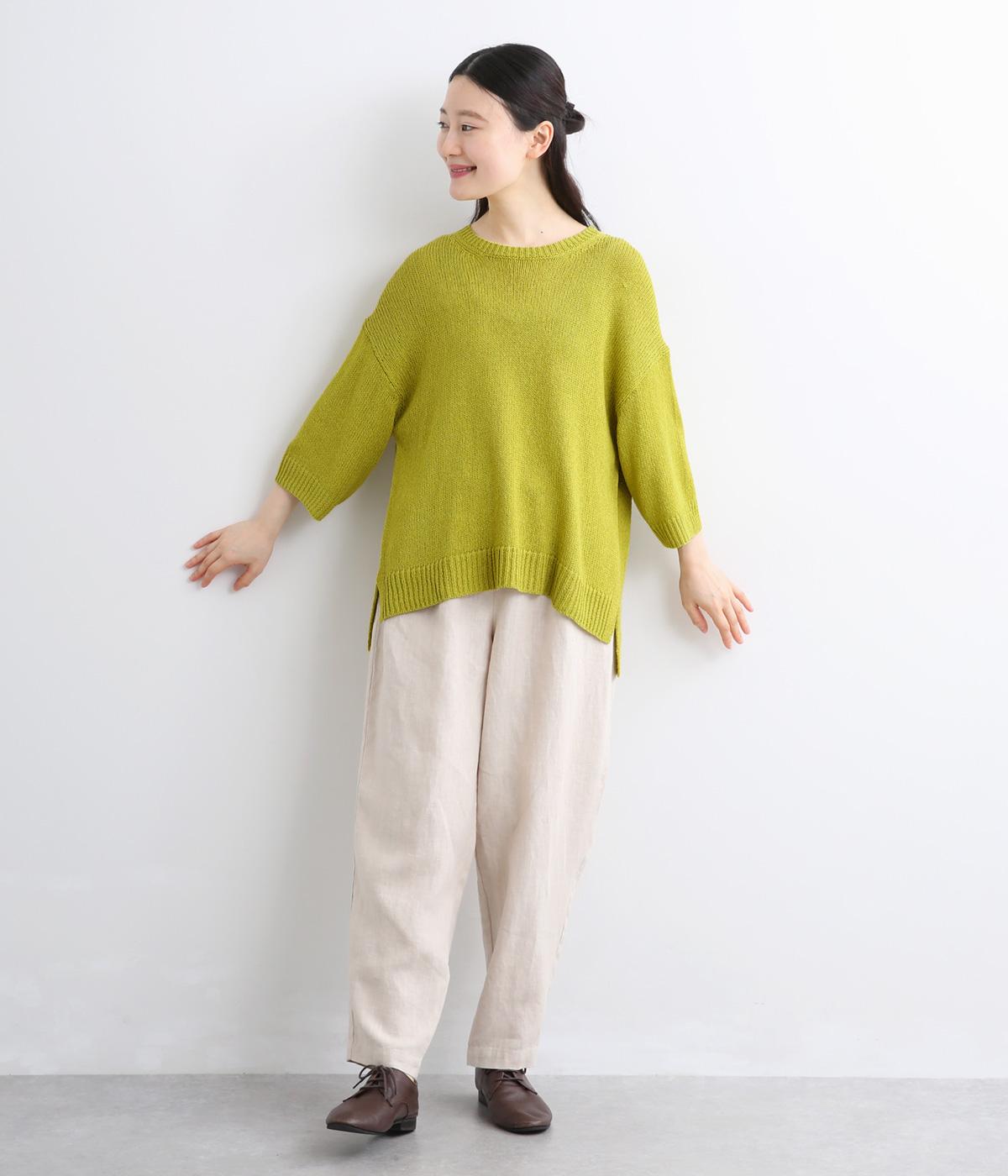 リネンやレーヨンをミックスさせて雰囲気よく編み上げた混紡ニットを採用。アクリルをベースにしているのでさらりとした肌触りで軽やかに仕上がっています。