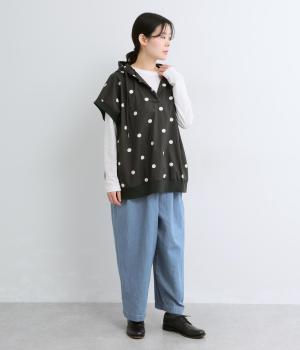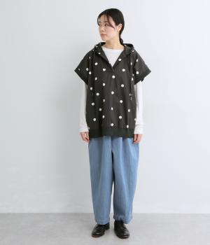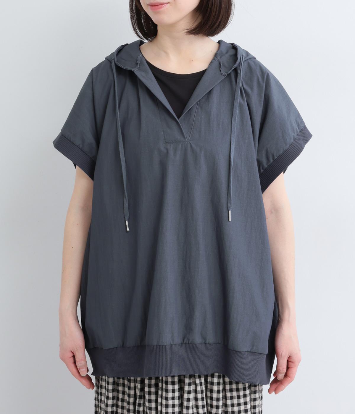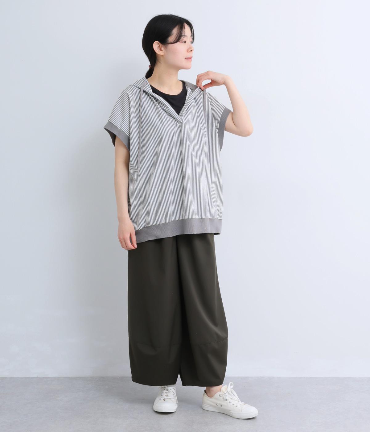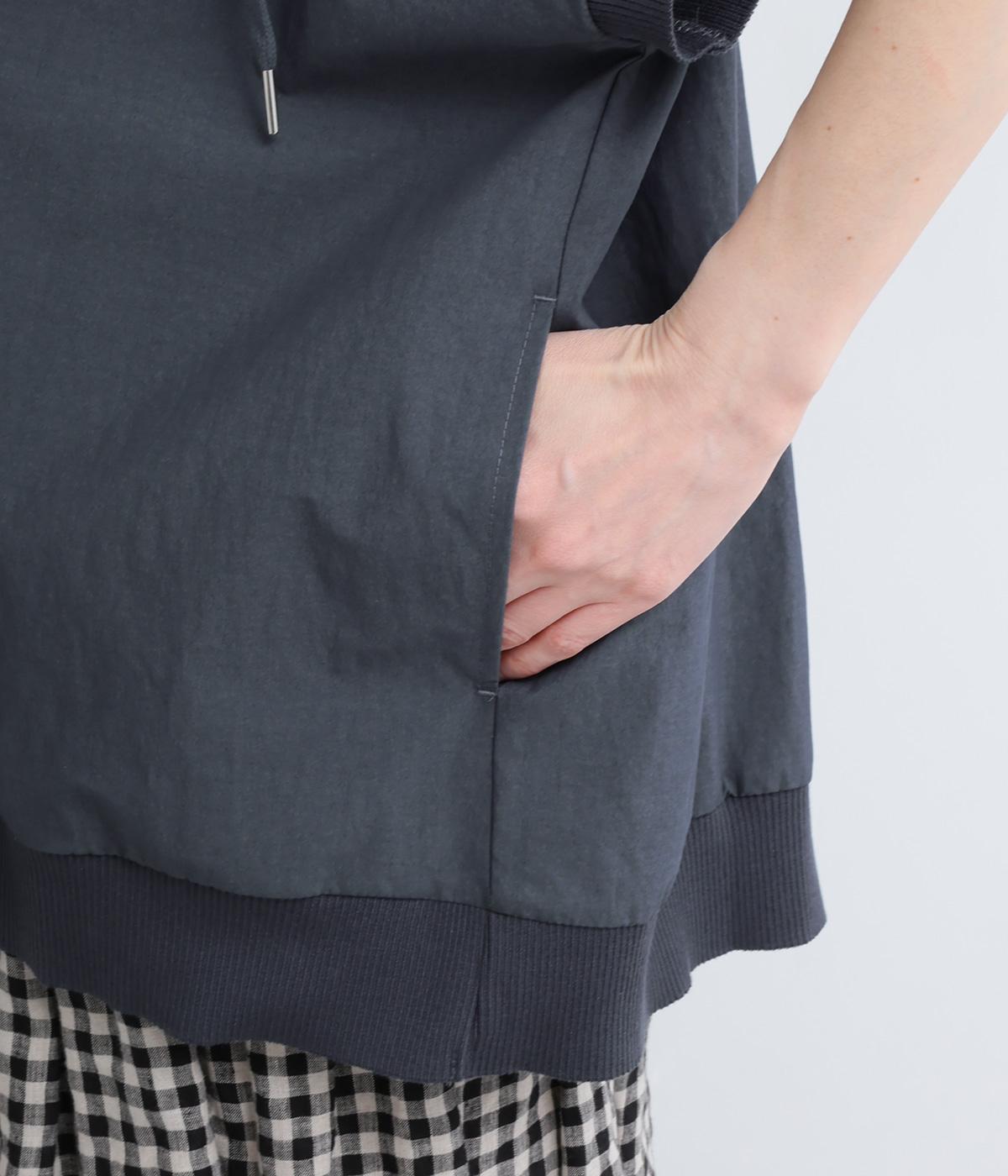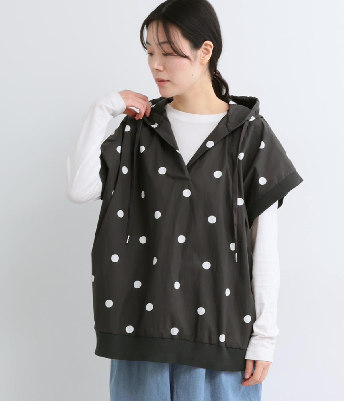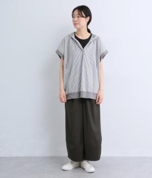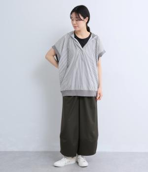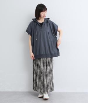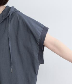 身幅をたっぷり取ったベスト感覚で着られるプルオーバー。フードつきでカジュアル感を高め、キーネックでバランスよく抜け感をプラス。リブトリミングでさり気なくメリハリをつけ、全体的にリラックス感のある仕上がりです。
