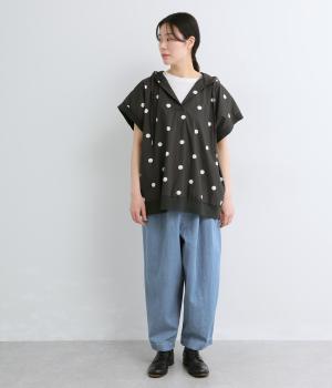 コットンにナイロンをまぜて速乾性良く、薄めの生地感で軽やかに仕立てました。細かなシワも表情の一部となったドライ&ナチュラルな質感が雰囲気よく仕上がっています。