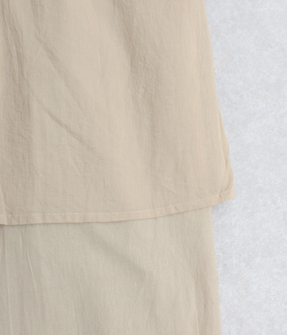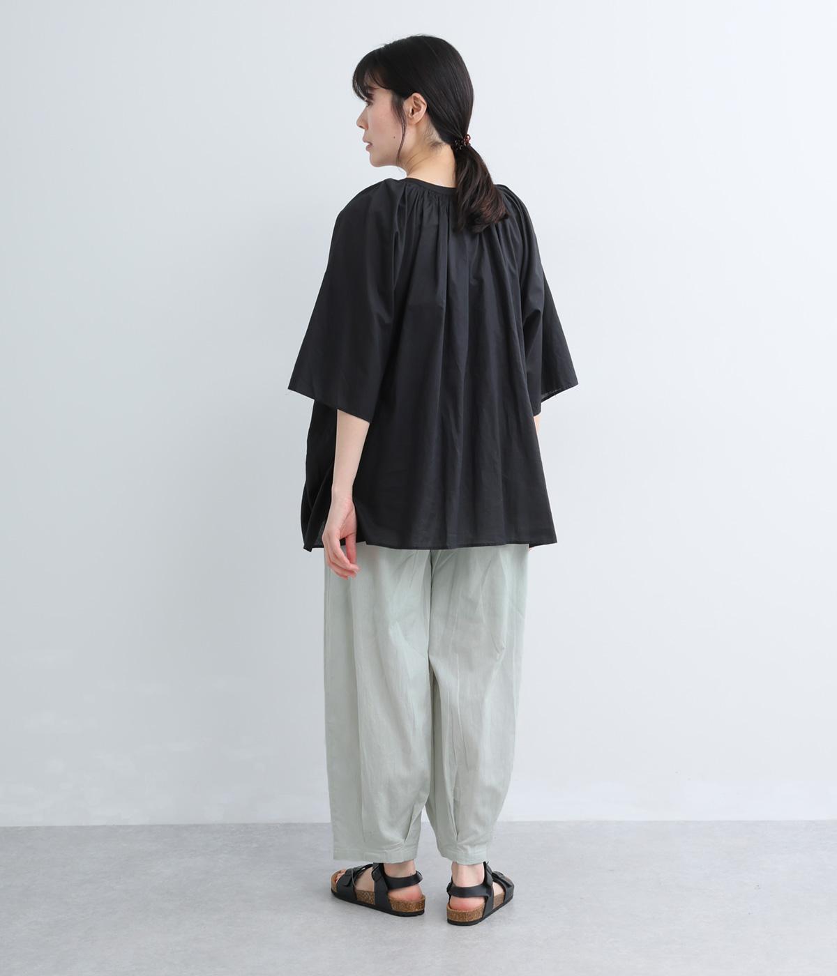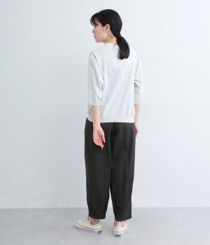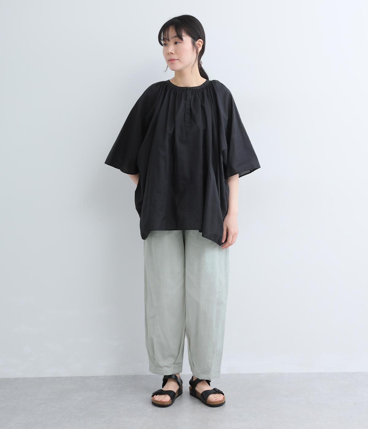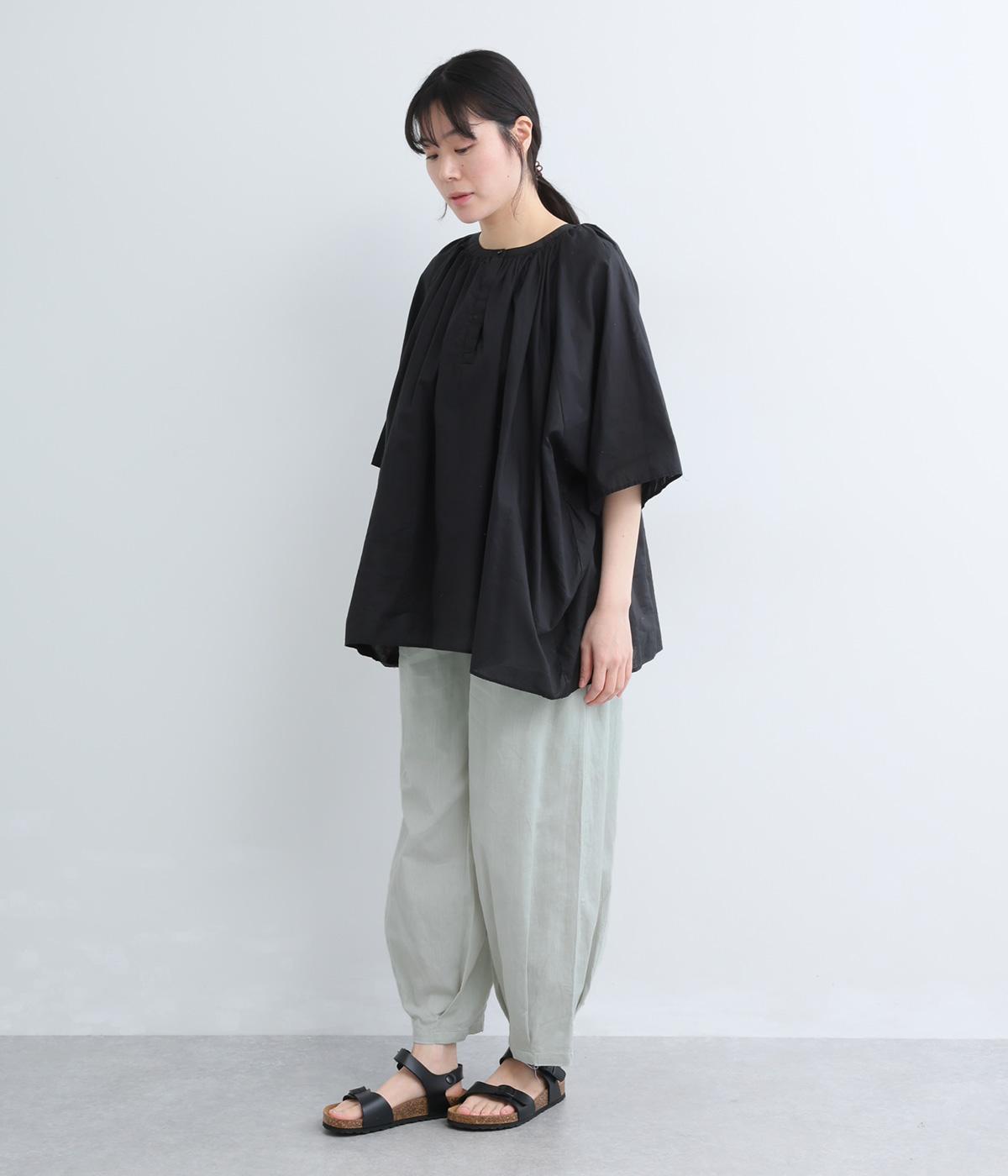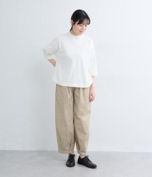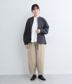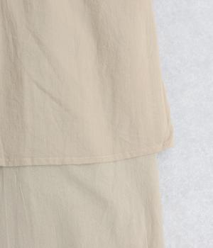 さらりと軽やかなコットンリネン生地です。麻を混紡することで、清涼感のあるドライな肌ざわりと通気性を備えました。空気を含んだような軽やかな質感が魅力です。
